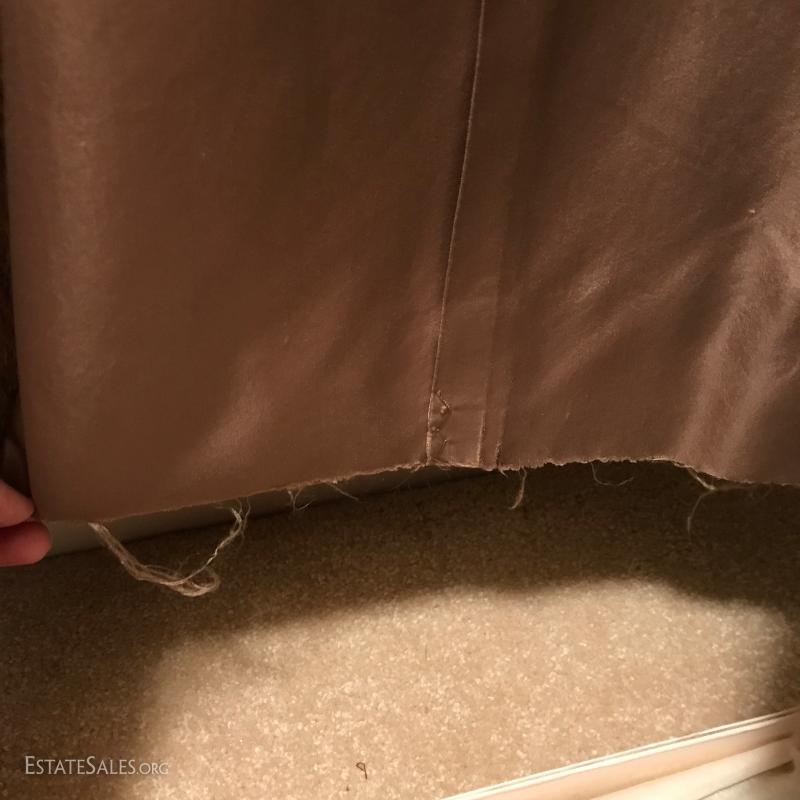 The coat was custom made. Our staff tried on and we would say it is likely a large based on our sizes. Bottom hem in inside bottom back is slightly frayed