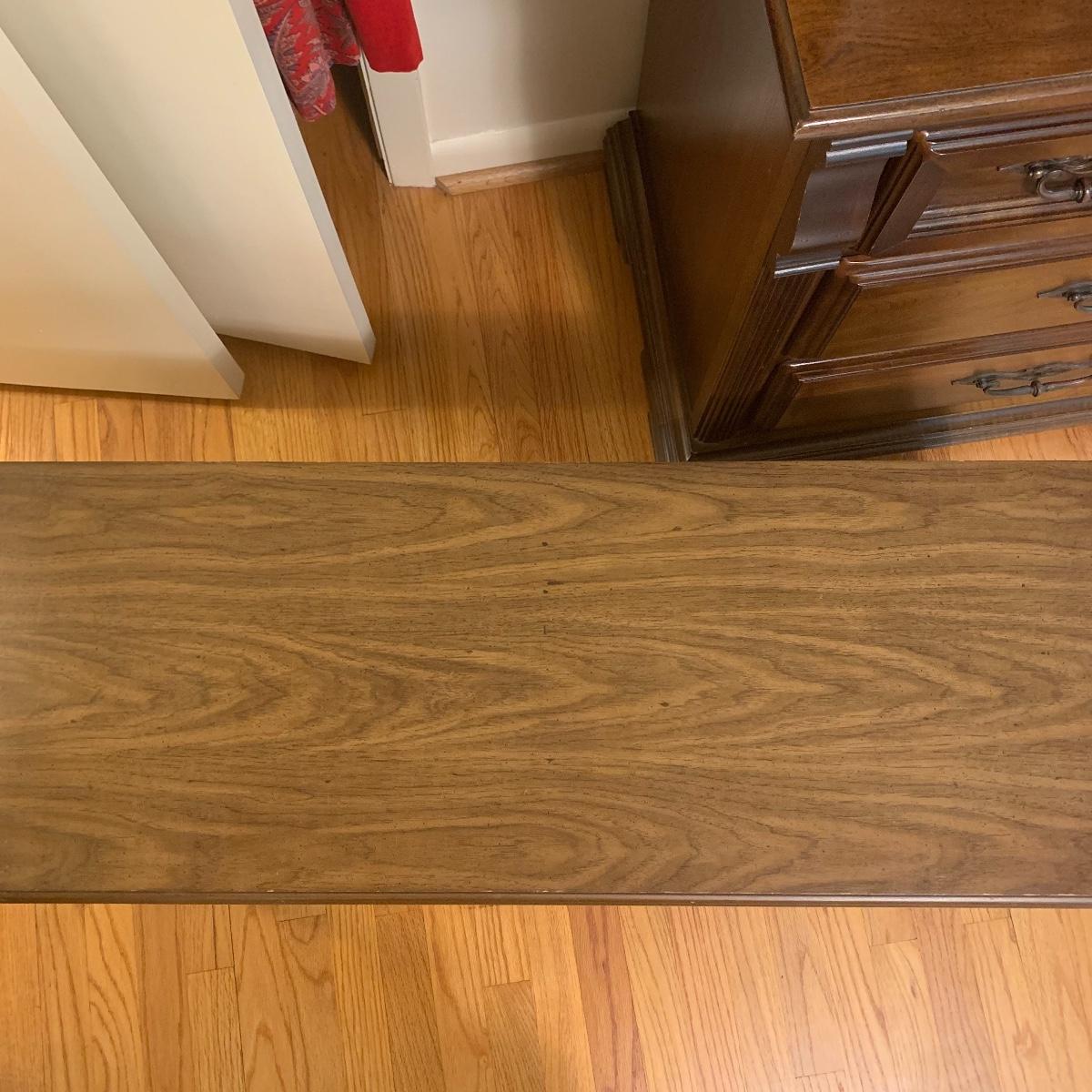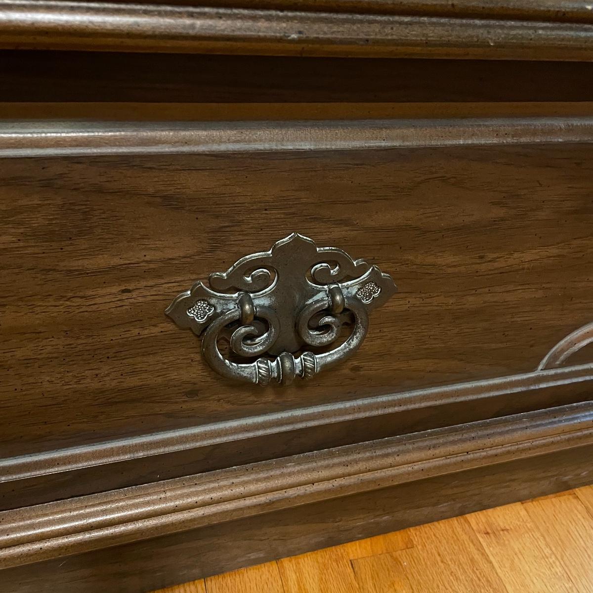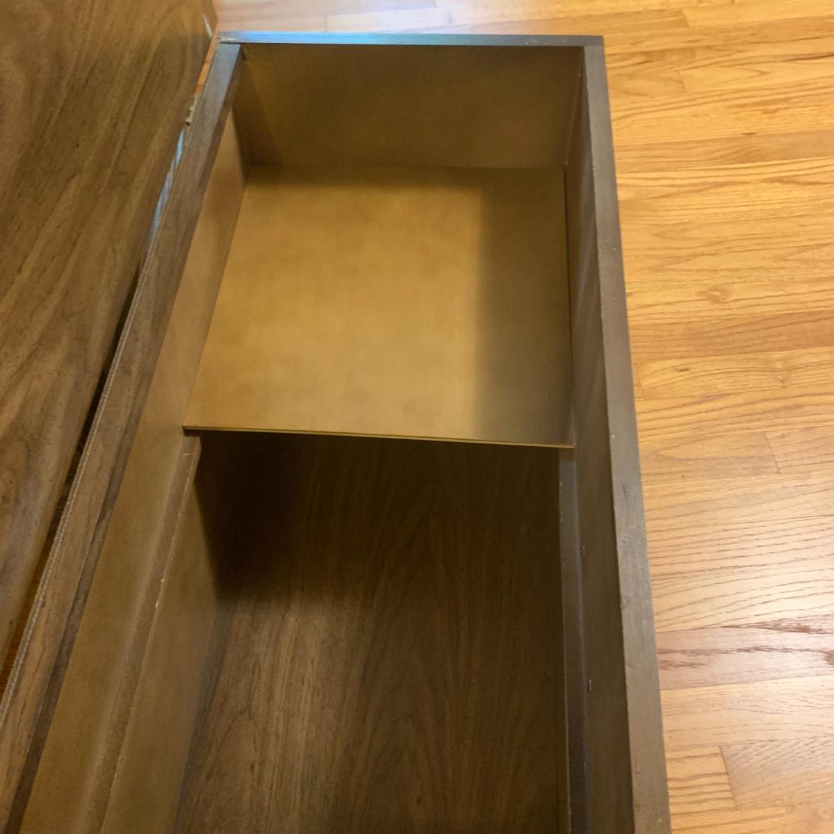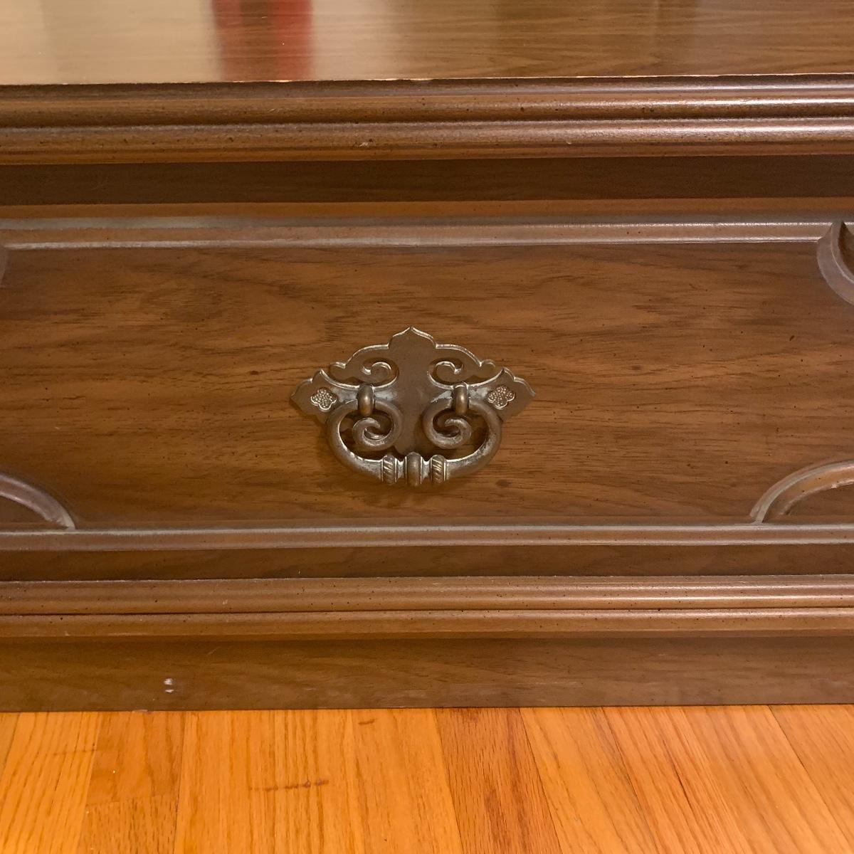 If you need a handy storage chest, this is it! This piece features dividers, a decorative metal handle, and elegantly routed trim. It’s sturdy wood construction will ensure that this chest is in service for years to come. Measurements are 41” wide X 16” tall X 15” deep. Other then a few minor scratches this piece is in good condition. Local pickup only
