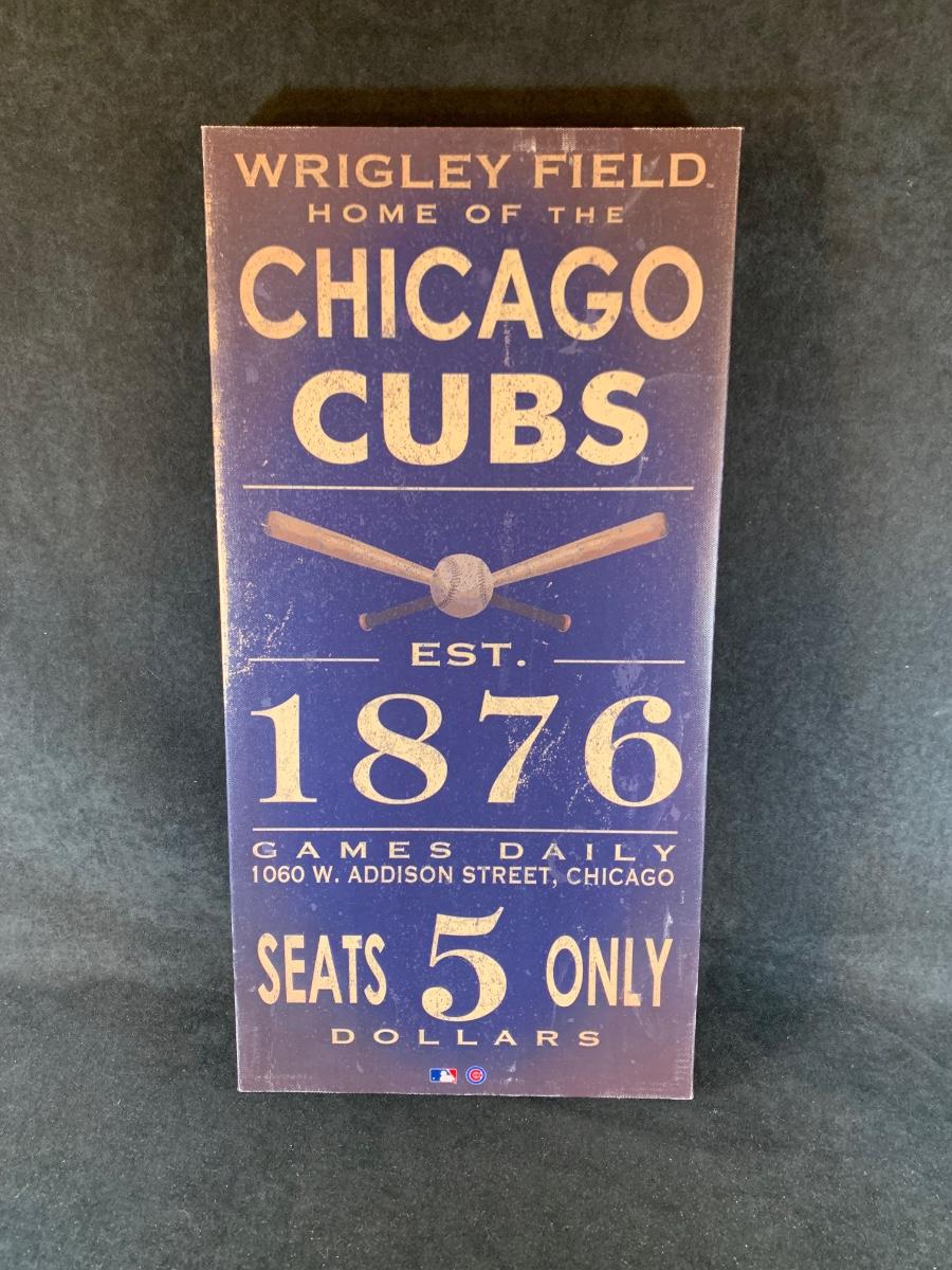 Chicago Cubs wall hanging measures 10" x 20" Canvas over wood frame