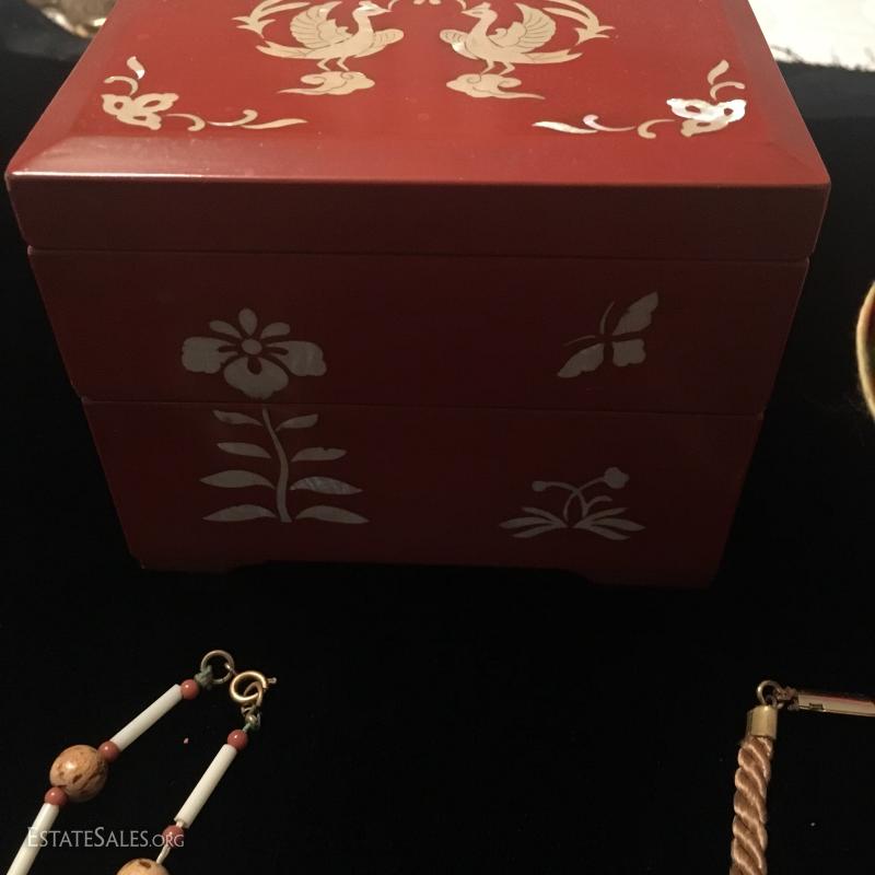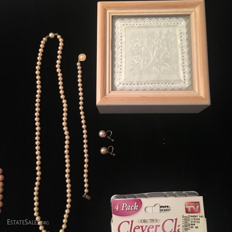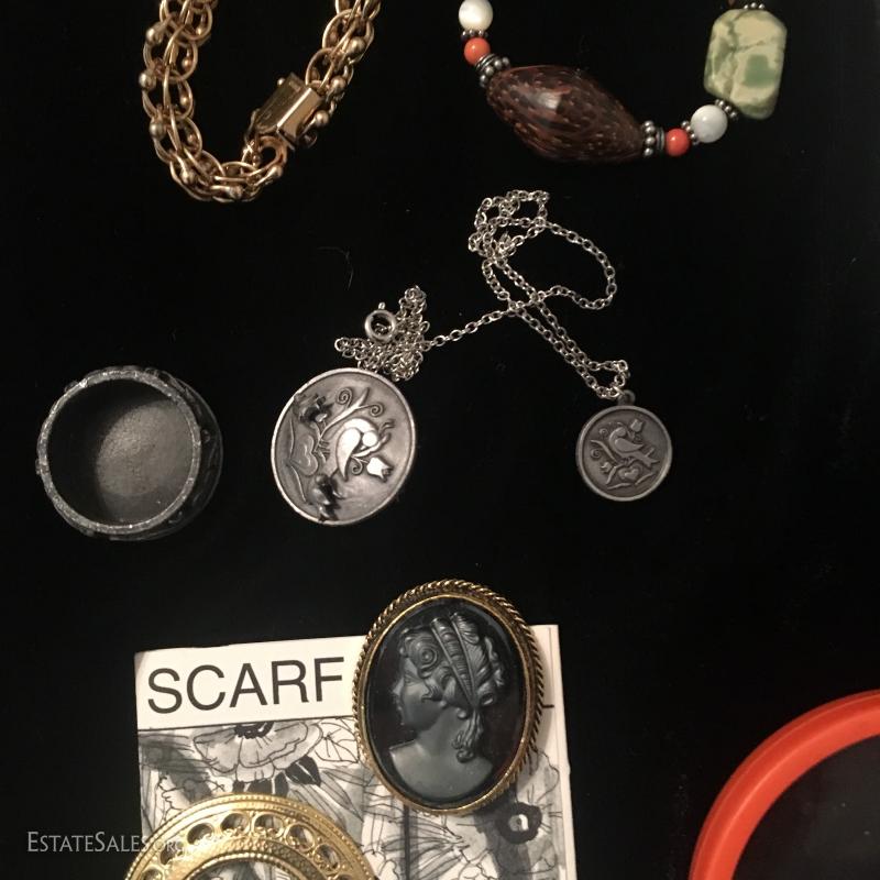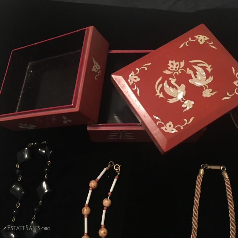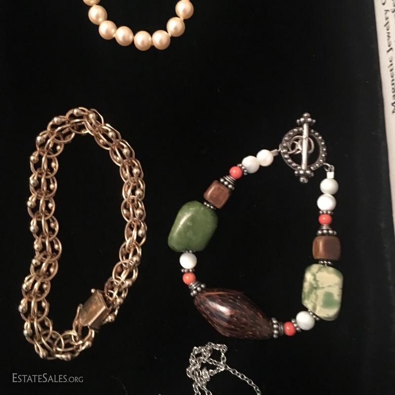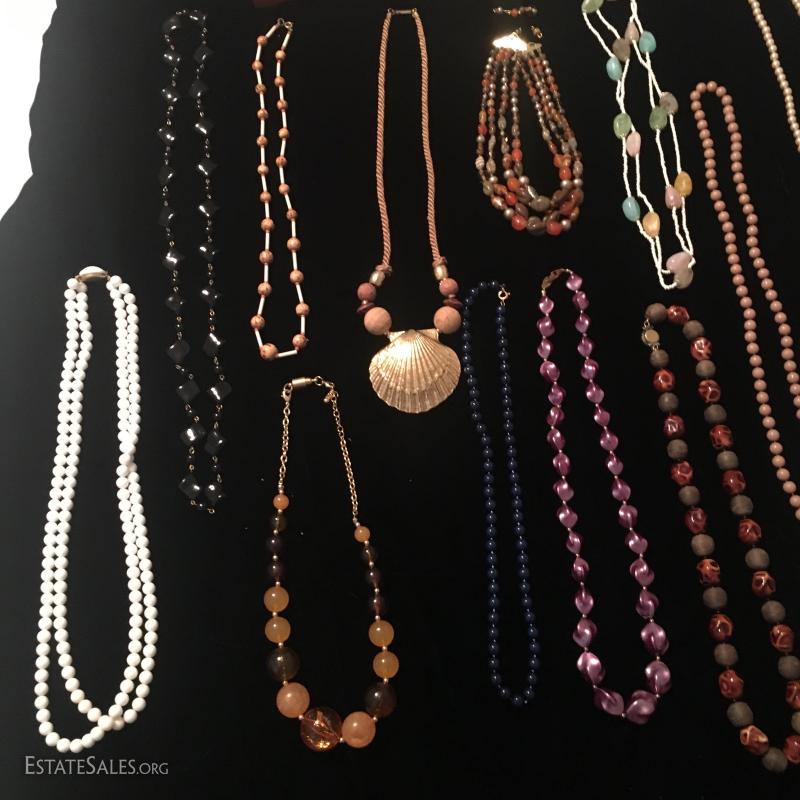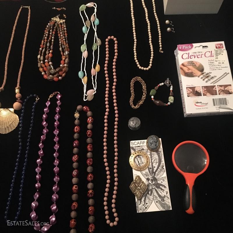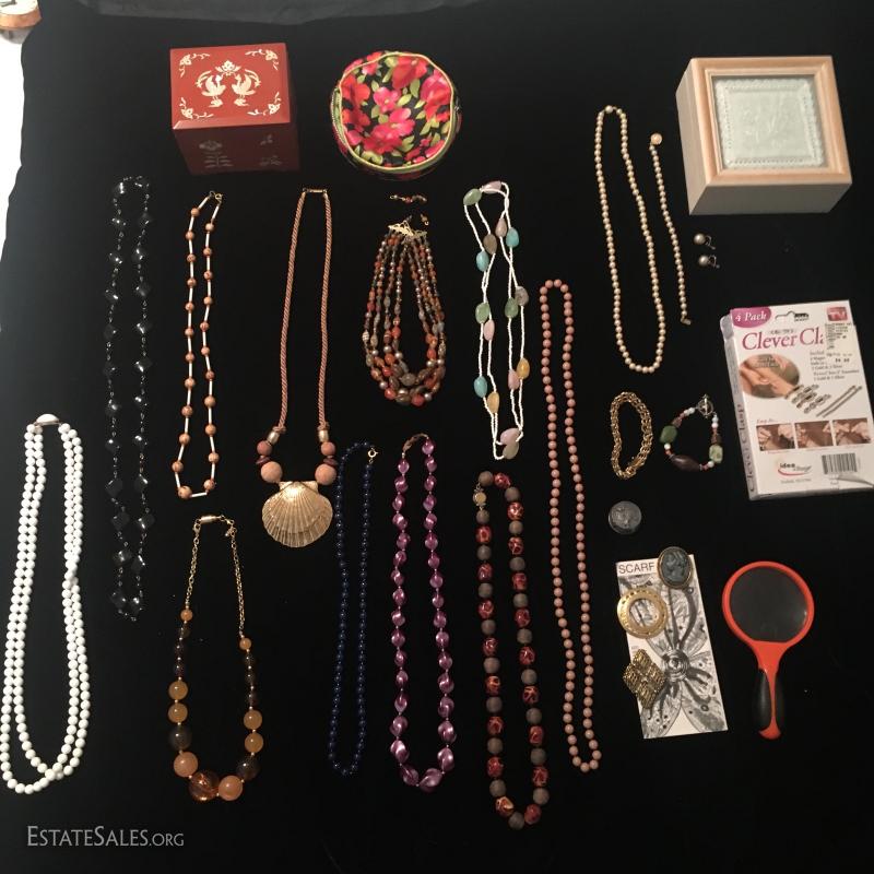 Lot of misc. beaded necklaces, scarf slides, storage containers, cleaver clasps and more. This lot is available for shipping or local pick up in Asheville, NC.