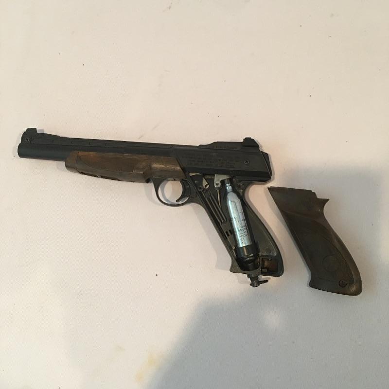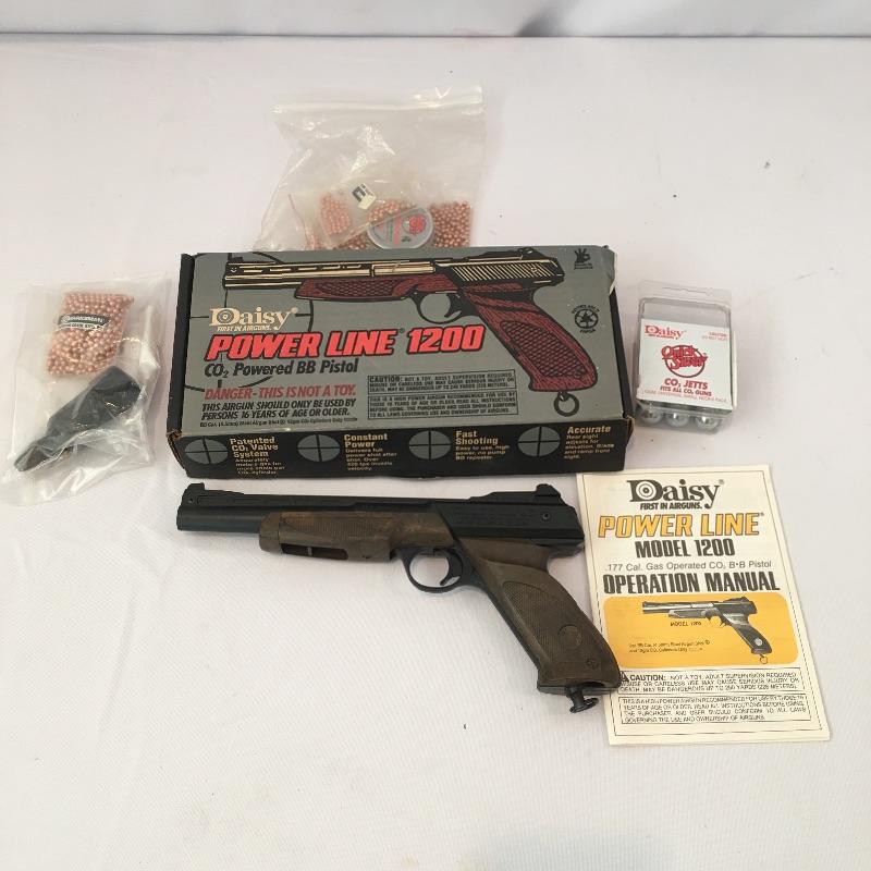 Daisy Power Line 1200 CO2 powered BB pistol with three CO2 cartridges, BBs and pellets.