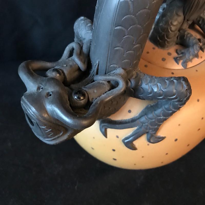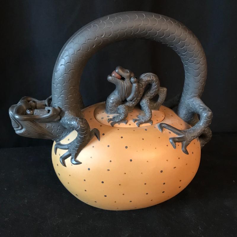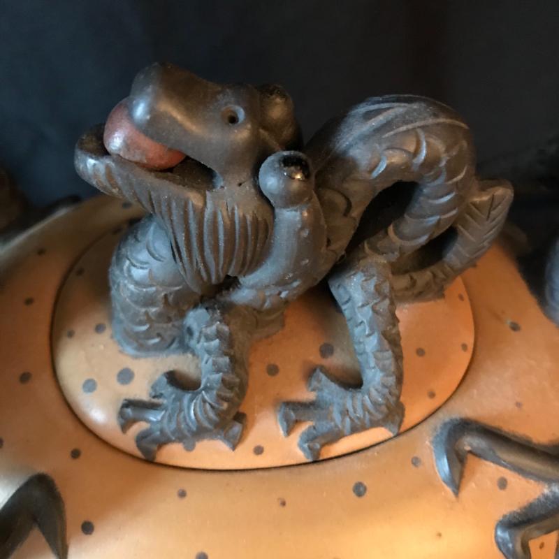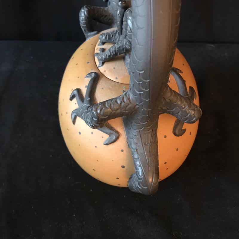 This beautiful handmade dragon teapot is part of the CCCI Yixing Collection from Yixing, China. Mustard colored egg with matte black dragons, this piece will add mystery and charm to any collection. Appears that it was never used. $146 new. Shipping available.