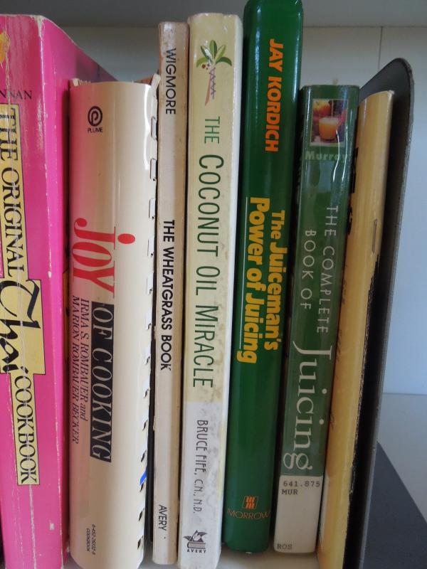 Eleven paperback and seven hardback cookbooks on juicing, breadmaking, and other classics.