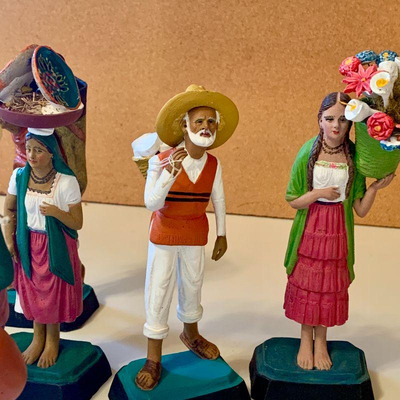 LOT 102 GROUP OF PAINTED CLAY FIGURES FROM TLAQUEPAQUE MEXICO FOLK ART