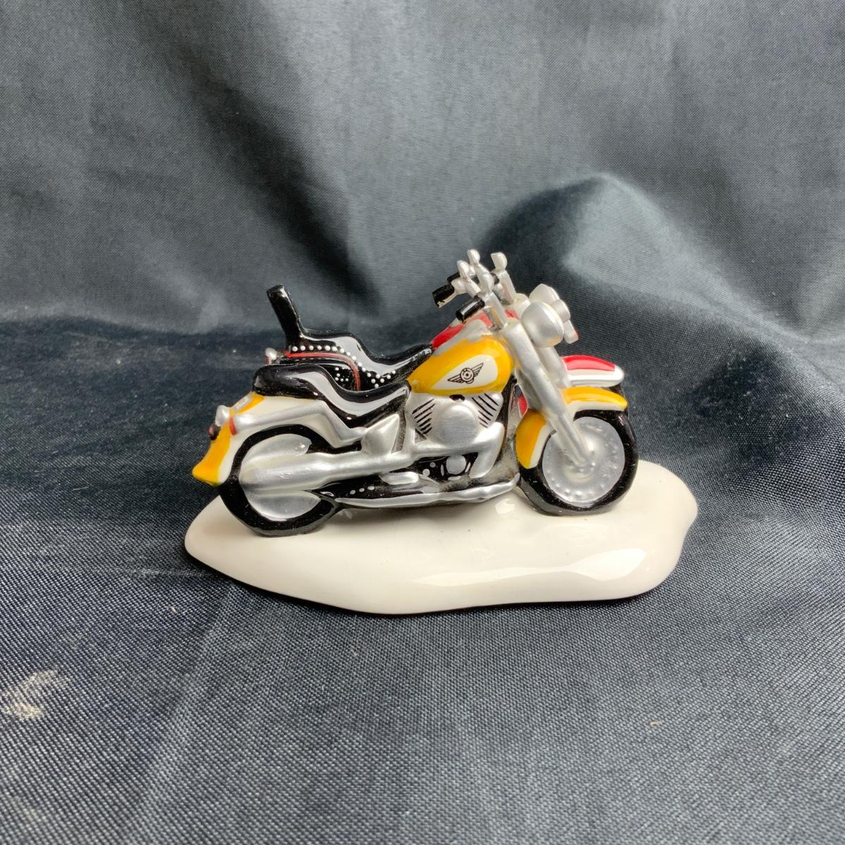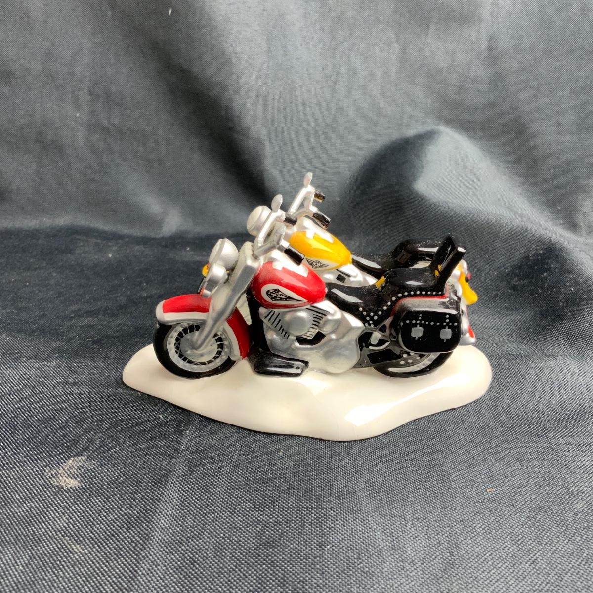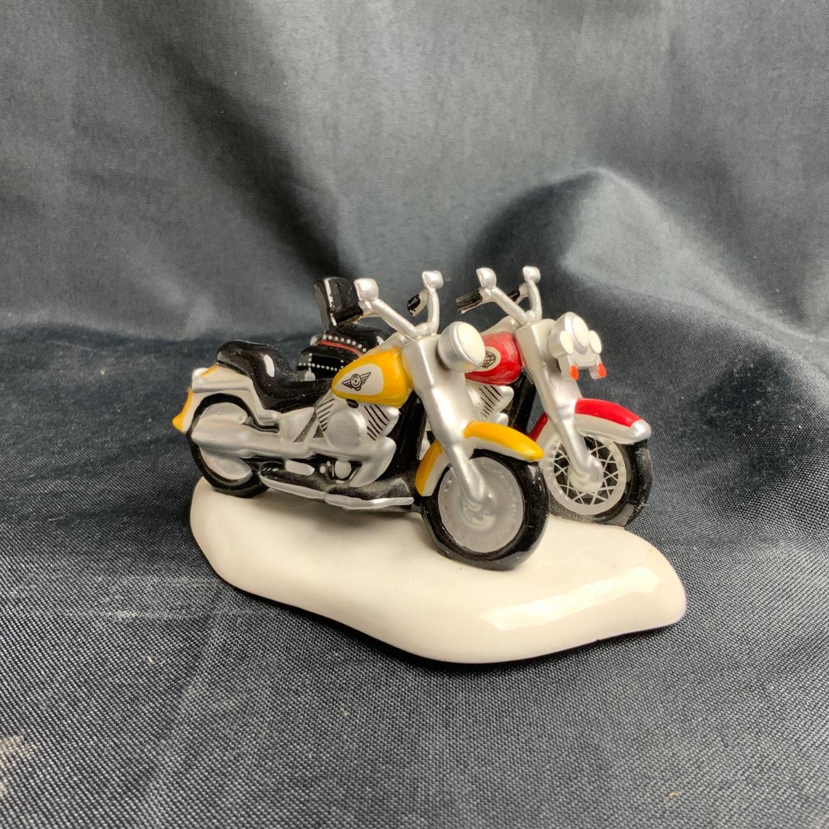 A real couple of classic Motorcycles right here. The Venn Diagram of Harley Davidson collectors and Snow Village owners is basically a circle. These two are in classic Department 56 colors, and will look great parked by the hot chocolate stand. Please see photos for details and condition. ::: Shipping is available on this lot. If you require shipping you must let us know at the close of the auction. We will coordinate with you after the item has been won. Shipping fees will include insurance up to or exceeding the value of all items being mailed. If you have any questions regarding this lot please contact the auctioneer either via this website, by direct email or by phone. PICK UP TIMES and other important information can be found in the TERMS and DESCRIPTION of the auction. Please take a look for pertinent information. Thanks! Any condition statement is given as a courtesy to a client, is an opinion, and should not be treated as a statement of fact. Reference to condition written, oral or within a condition report shall not be regarded as a full account of condition and may not include all defects, alterations, or restorations. Absence of a condition report does not imply a lot is flawless or lacking imperfections or damage. Katherine’s Auction & Appraisal Service shall have no responsibility for any error or omission. Returns shall not be accepted on the basis of condition.