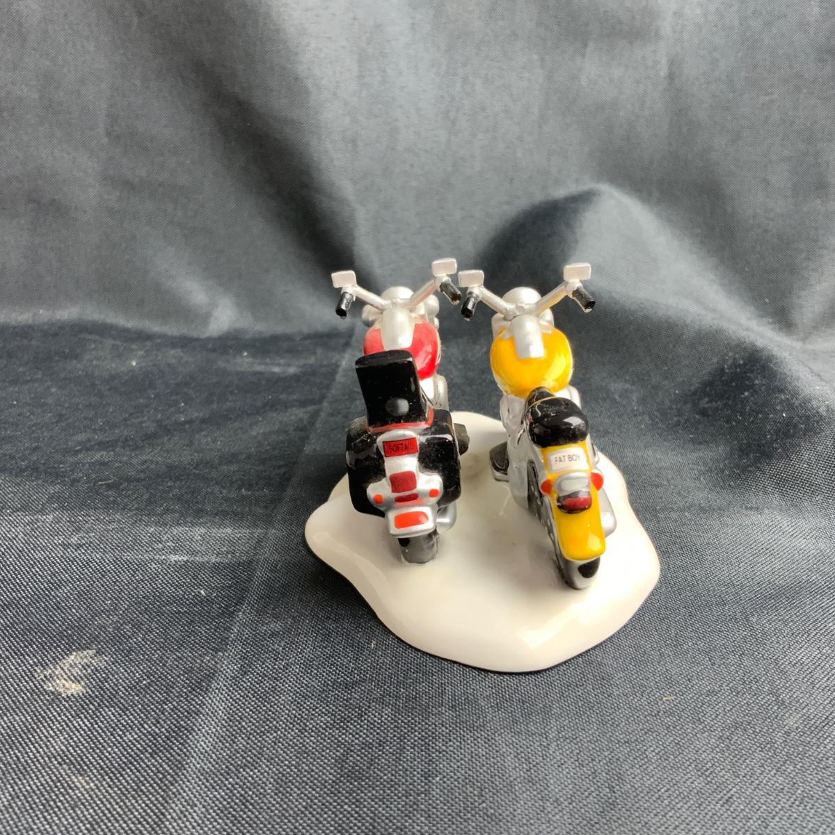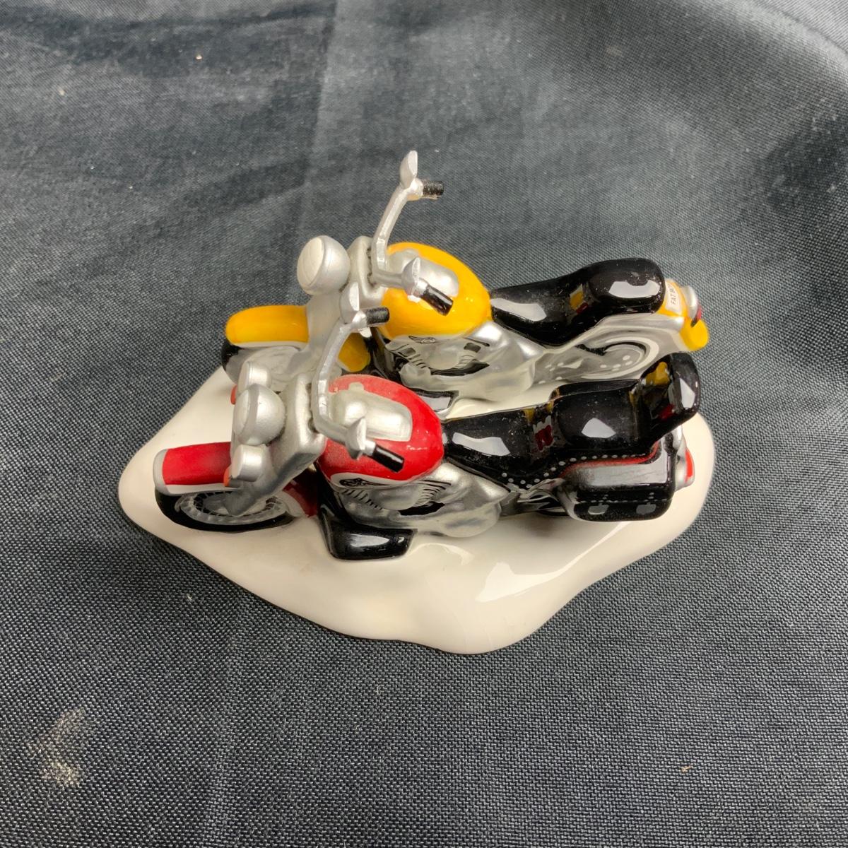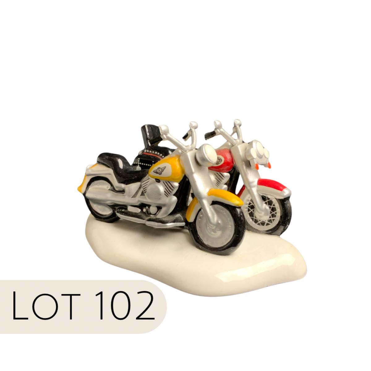 A real couple of classic Motorcycles right here. The Venn Diagram of Harley Davidson collectors and Snow Village owners is basically a circle. These two are in classic Department 56 colors, and will look great parked by the hot chocolate stand. Please see photos for details and condition. ::: Shipping is available on this lot. If you require shipping you must let us know at the close of the auction. We will coordinate with you after the item has been won. Shipping fees will include insurance up to or exceeding the value of all items being mailed. If you have any questions regarding this lot please contact the auctioneer either via this website, by direct email or by phone. PICK UP TIMES and other important information can be found in the TERMS and DESCRIPTION of the auction. Please take a look for pertinent information. Thanks! Any condition statement is given as a courtesy to a client, is an opinion, and should not be treated as a statement of fact. Reference to condition written, oral or within a condition report shall not be regarded as a full account of condition and may not include all defects, alterations, or restorations. Absence of a condition report does not imply a lot is flawless or lacking imperfections or damage. Katherine’s Auction & Appraisal Service shall have no responsibility for any error or omission. Returns shall not be accepted on the basis of condition.