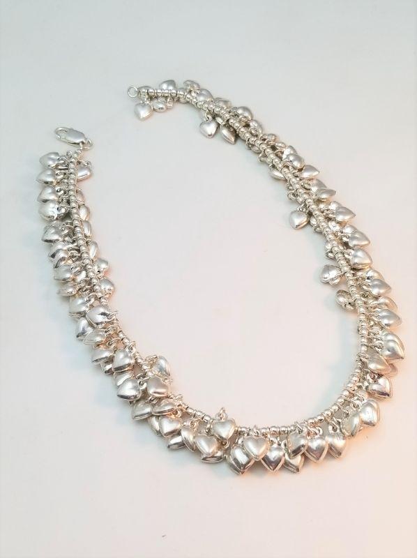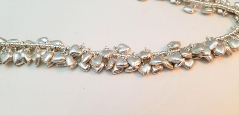 This heavy sterling silver necklace is covered in tiny silver hearts - measures 16" long, weighs 4.42 ounces.