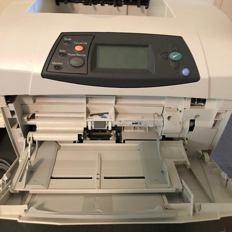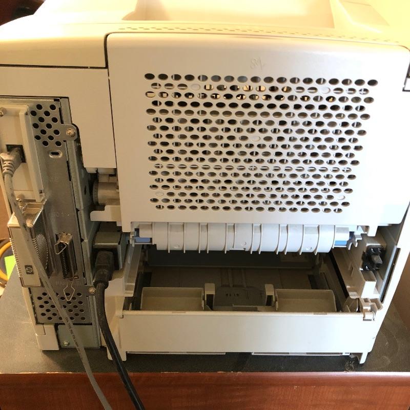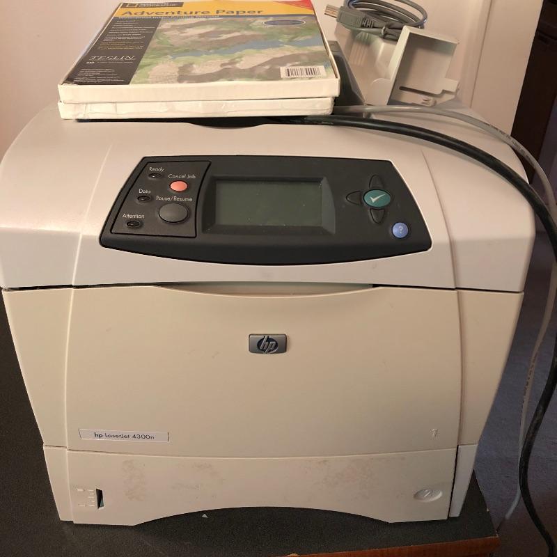 Nice HP laser jet printer and 2 packages of paper. Printer powers on when plugged in. Printer measures 15” x 18” x 15”. Local pickup only.
