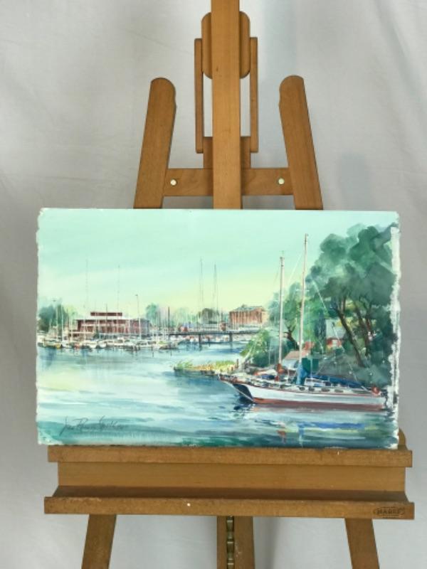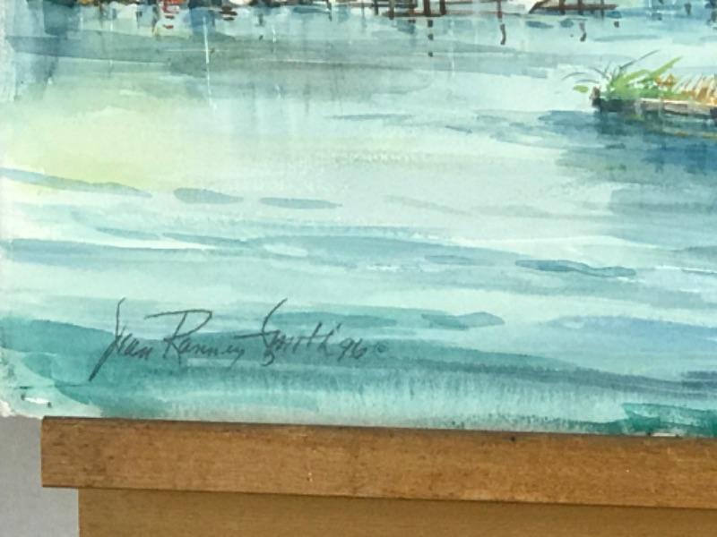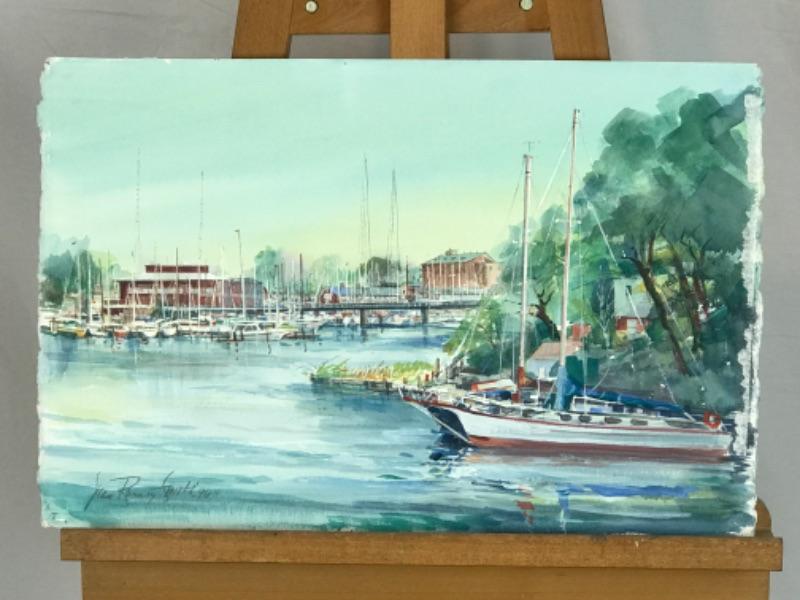 Jean Ranney Smith original watercolor “Marina” signed. Measures 22-1/2”x16”. Has some minor damage on edges (see photos)