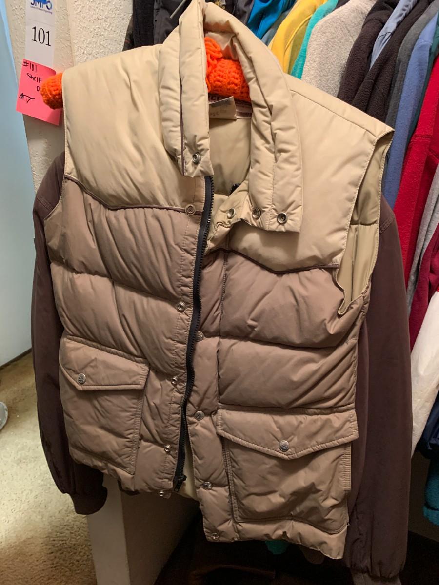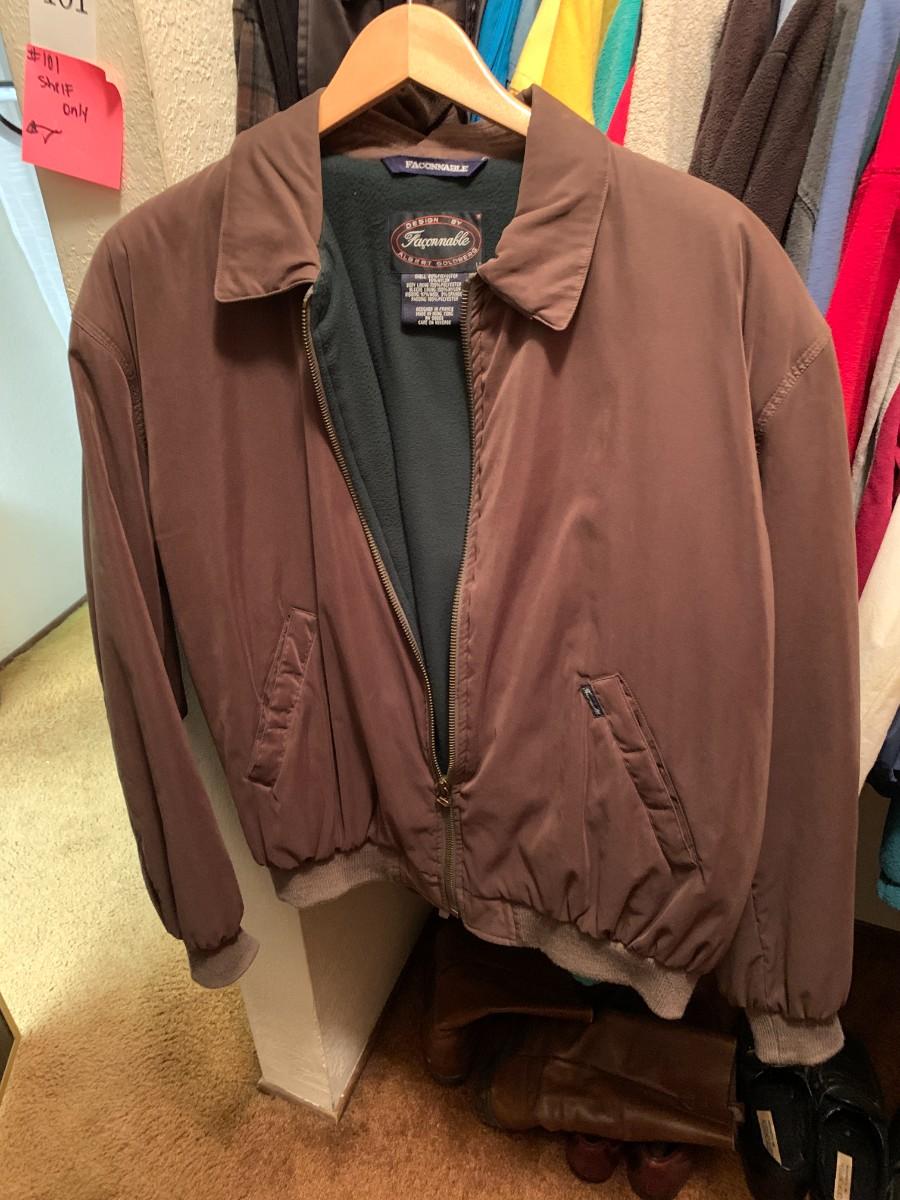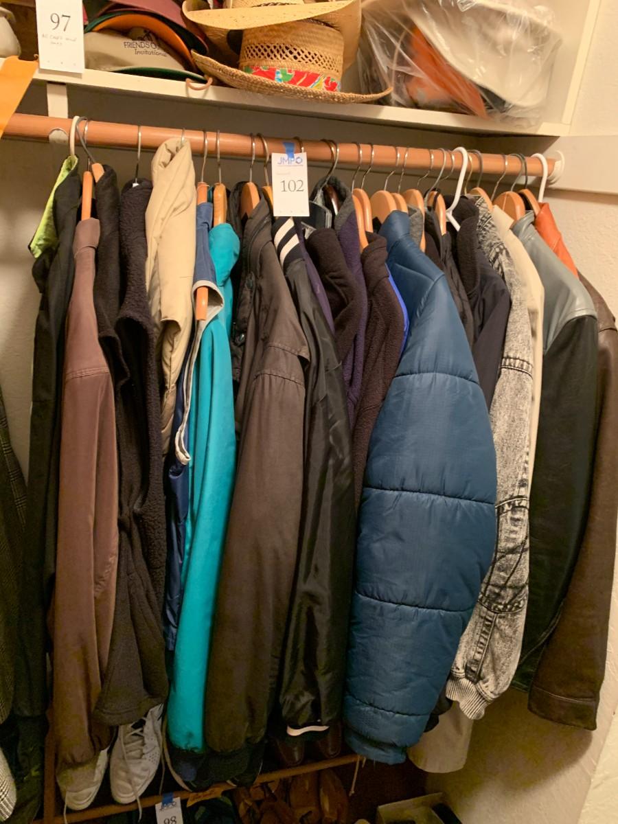 Mostly medium and large for taller man. Leather jackets. Fishing vest. Vests, light weight jackets. Good condition.