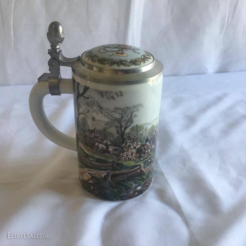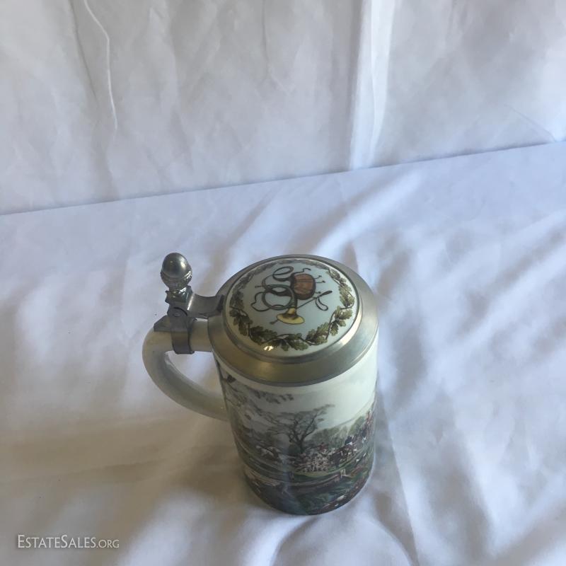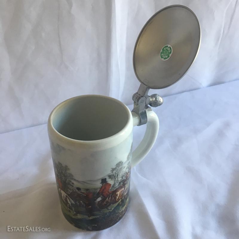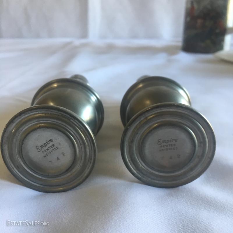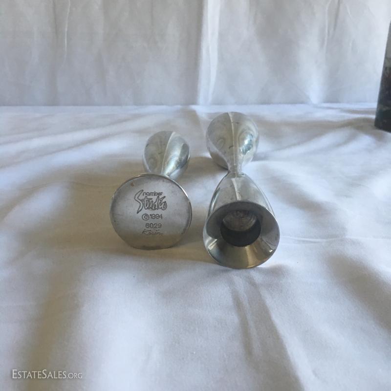 London Guilds, Kaiser, W. Germany beer stein, pewter vase by Studio Nambo # 6076 and 2 candle holders by Nambo # 6030 & # 6028
