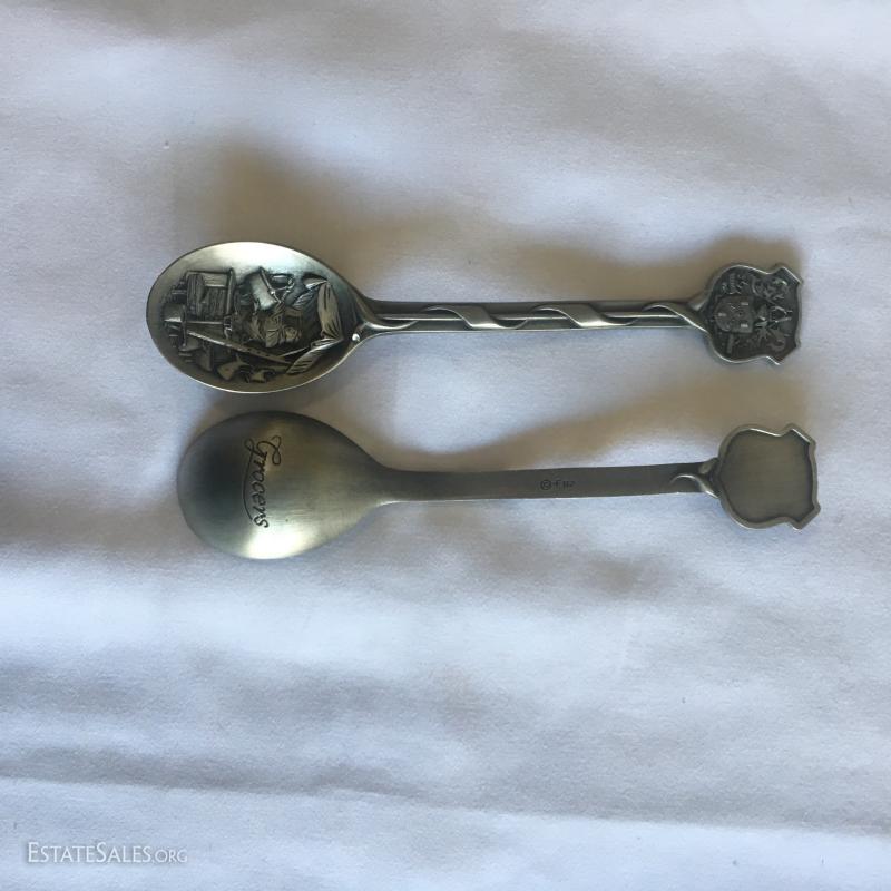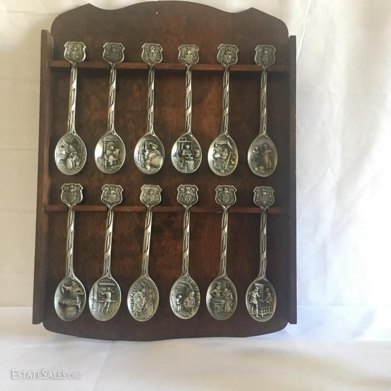 Wood spoon holder that holds set of 12 Franklin Mint spoons,