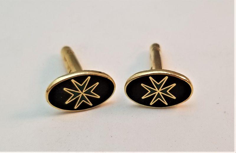 Enameled cufflinks and button set with the seal of the Order of St. Lazarus of Jerusalem. Good condition.