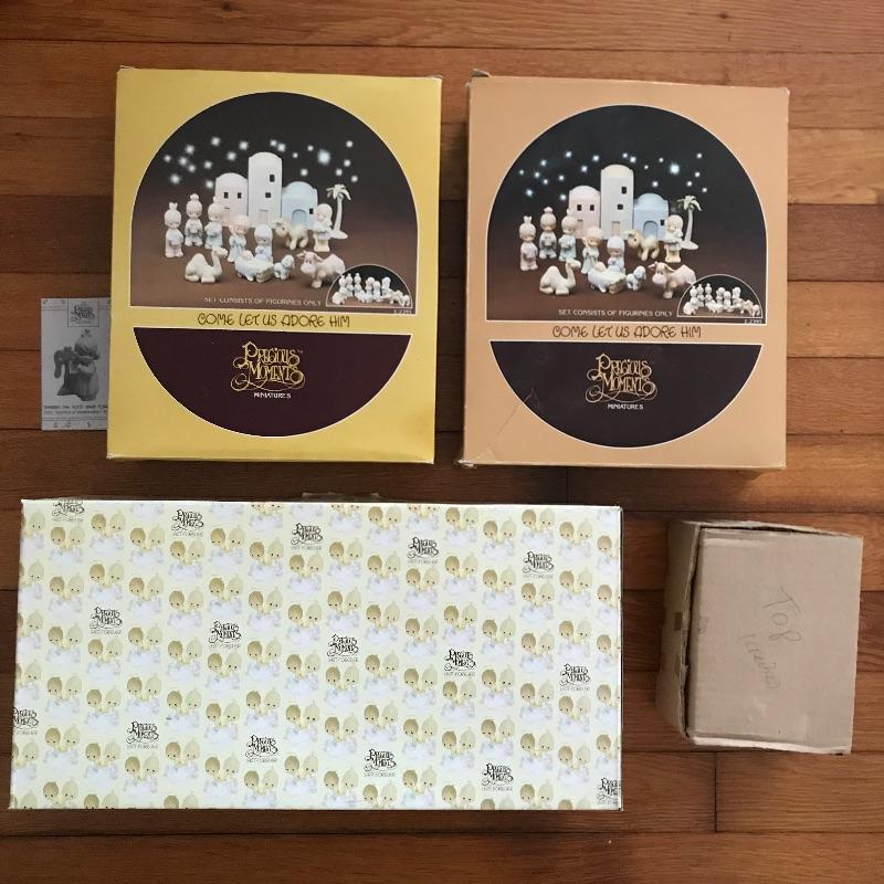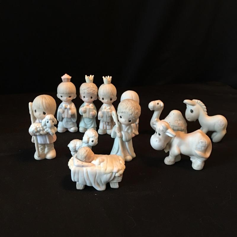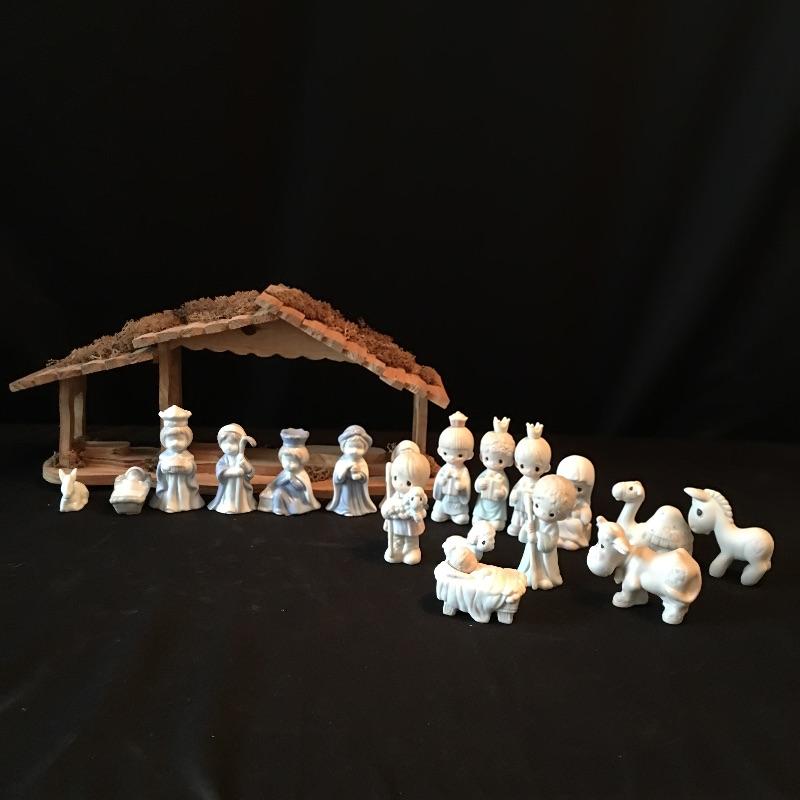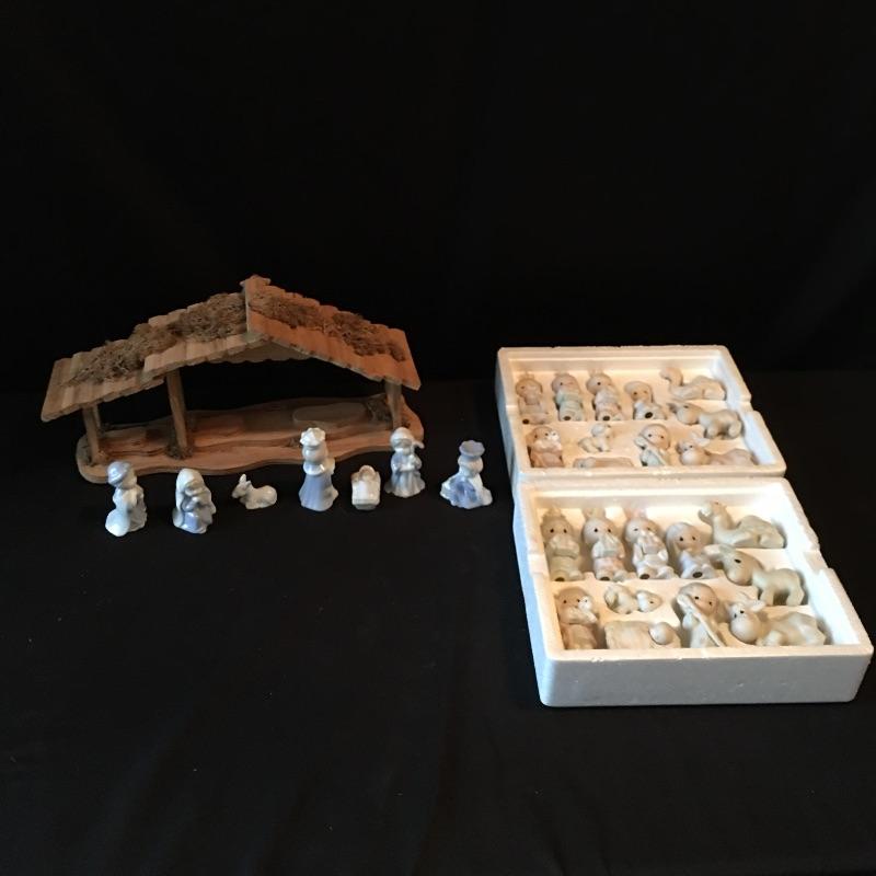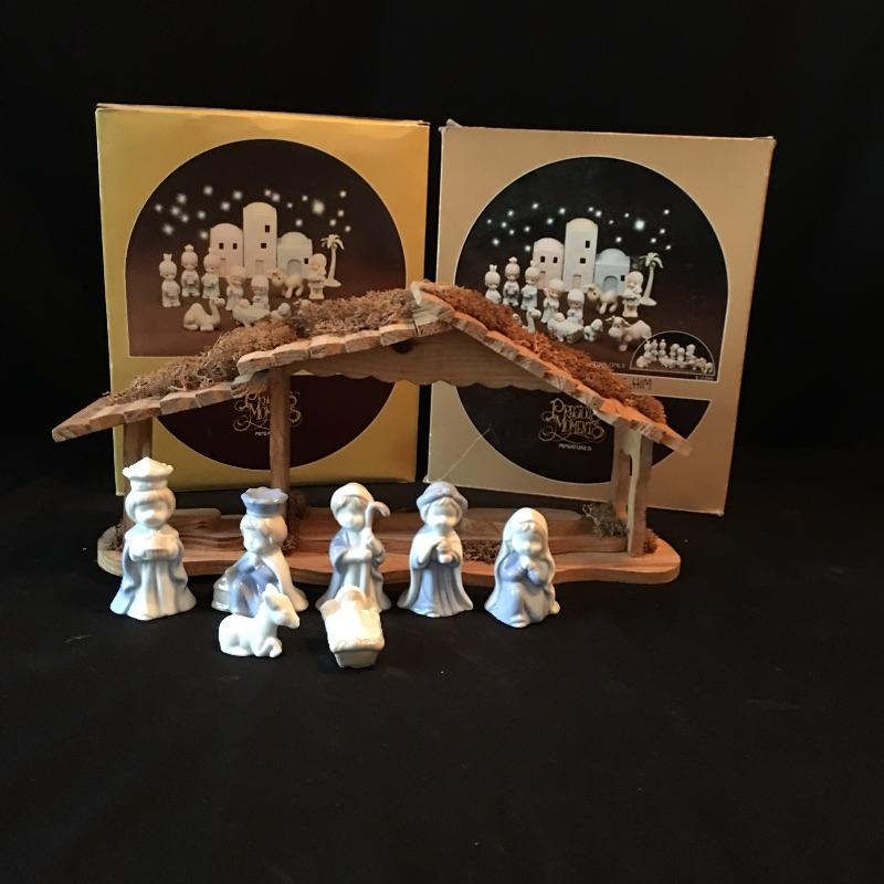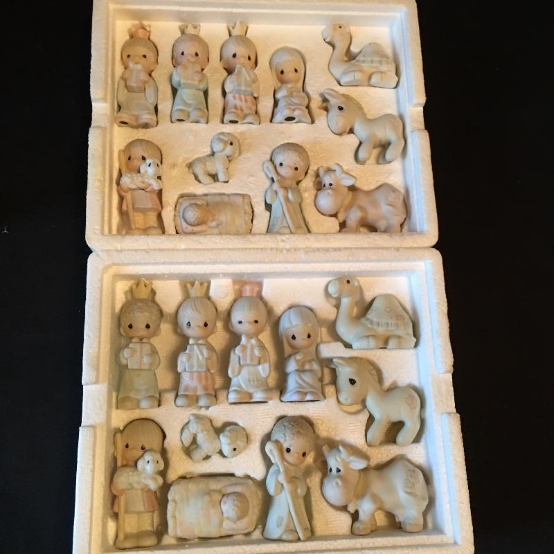 This lot has two matching boxes of a Precious Moments eleven piece hand painted nativity set as well as one Precious Moments wooden crèche. Also included is a seven piece nativity set by Biedermann. Don’t let Christmas catch you off guard, get these nativity sets and be prepared for next December. Crèche measures 4.25” x 13.5” x 6.75”.
