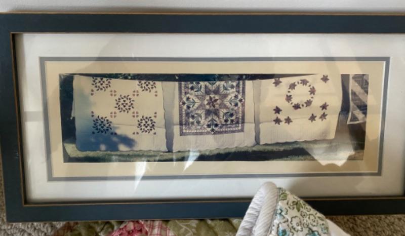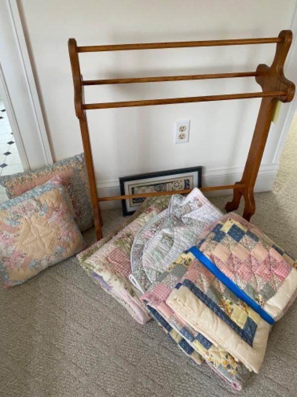 This oak quilt rack measures 27.5” long x 34” tall. 10” deep