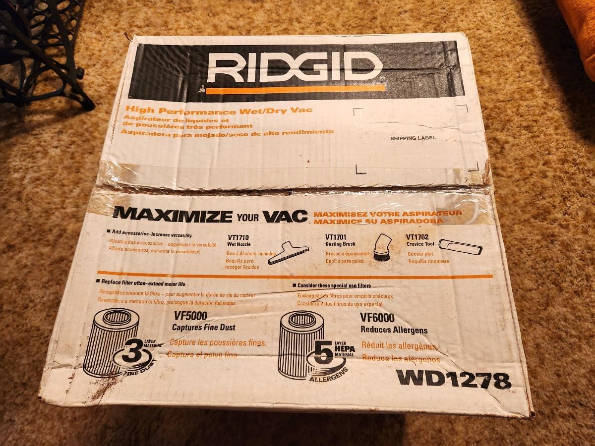 Brand new in box - Ridgid Wet/Dry Vac - model #WD1278. 15 Foot cord.
