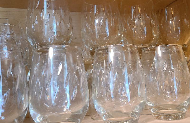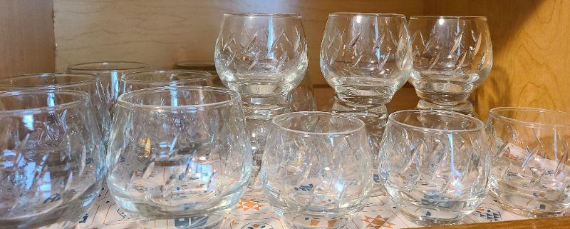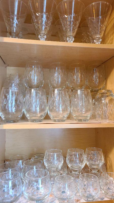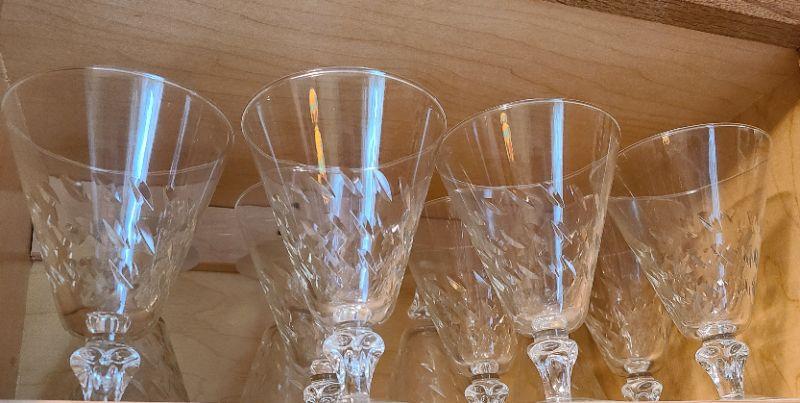 Beautiful lot of matching glasses from juice to water goblets perfect for everyday use! CLS