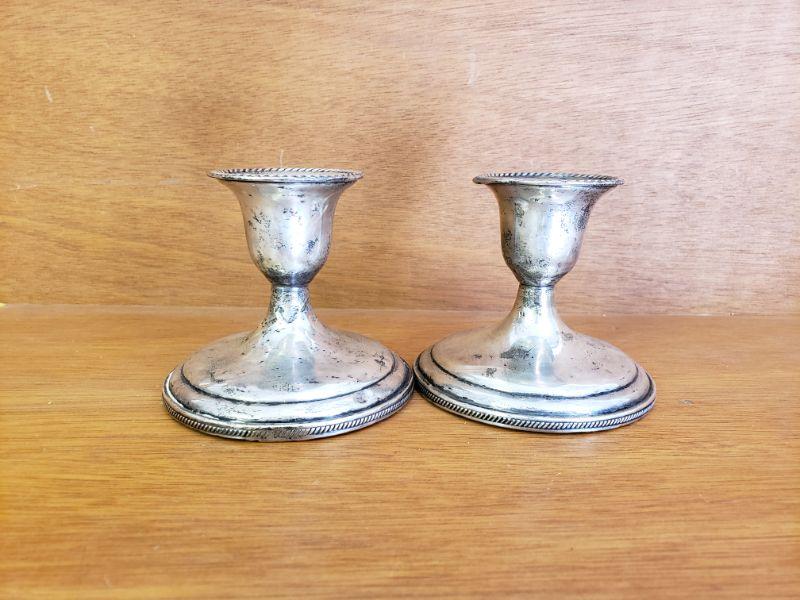 Lot 102: Sterling Weighted Candleholders with Ripe Accent