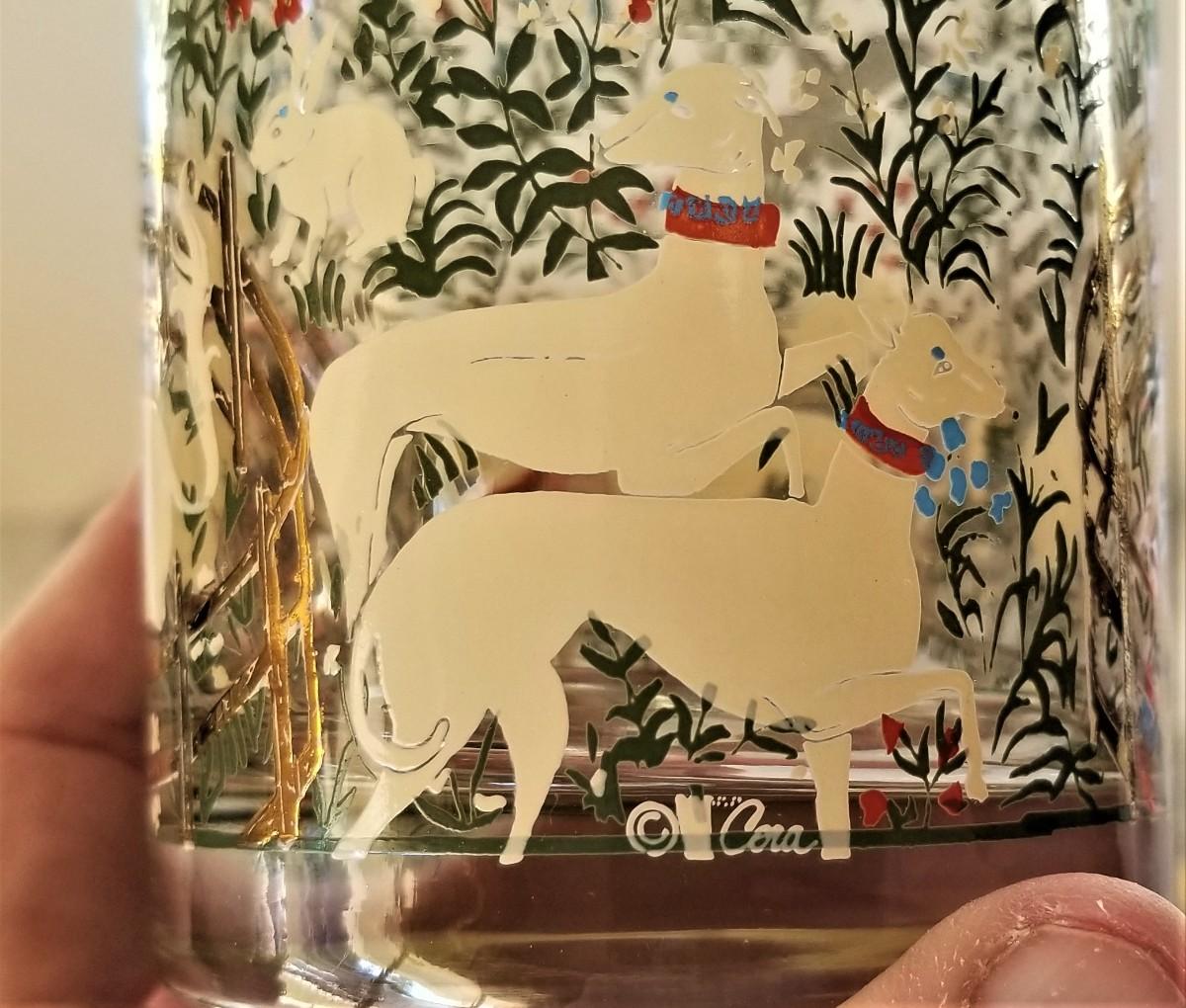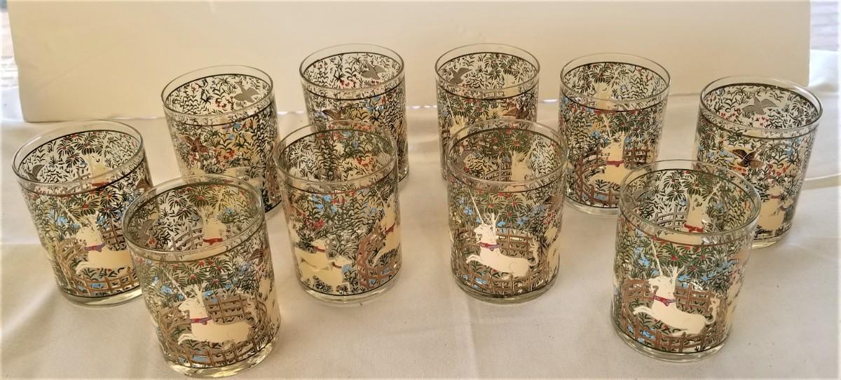 Lot #102 Super desirable set of MidCentury bar glasses - Cera "Unicorns in Captivity" - set of 8 - like new