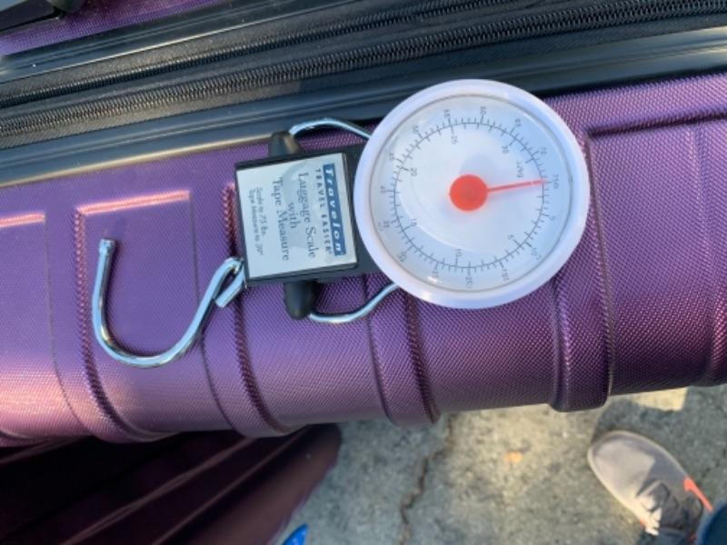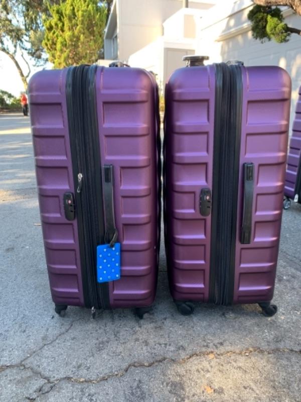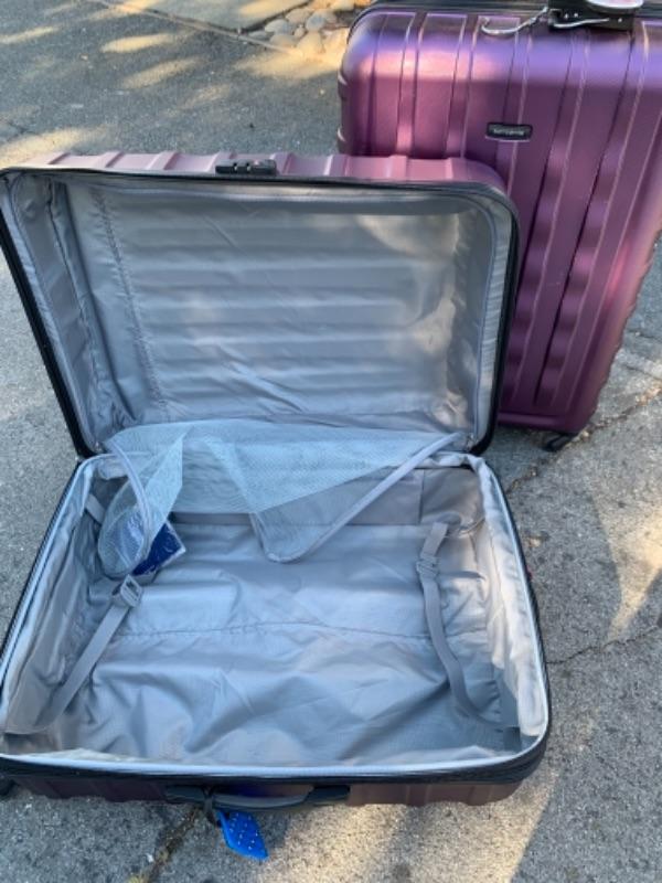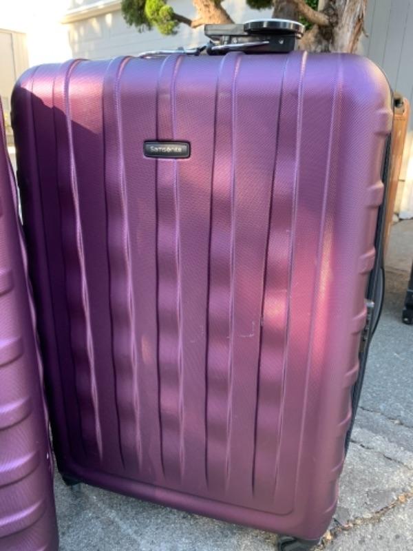 Lot 102. Two hard case Samsonite suitcases on wheels and luggage scale--$50