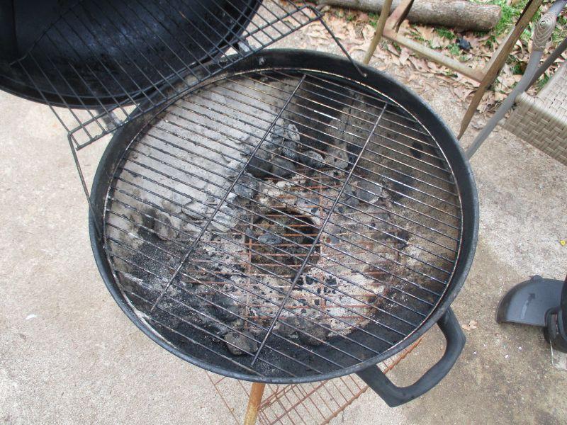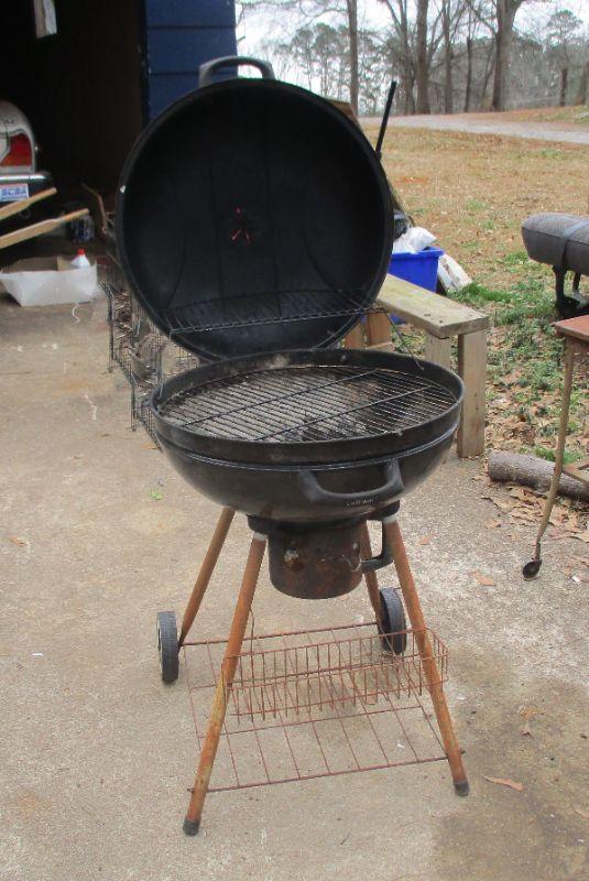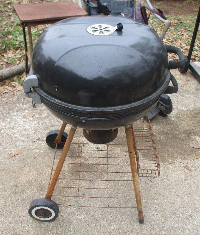 The grill is in good shape, but it does need to be cleaned. The spots that you see on the cover are water sprinkles because it was beginning to rain. It is NOT a gas grill.