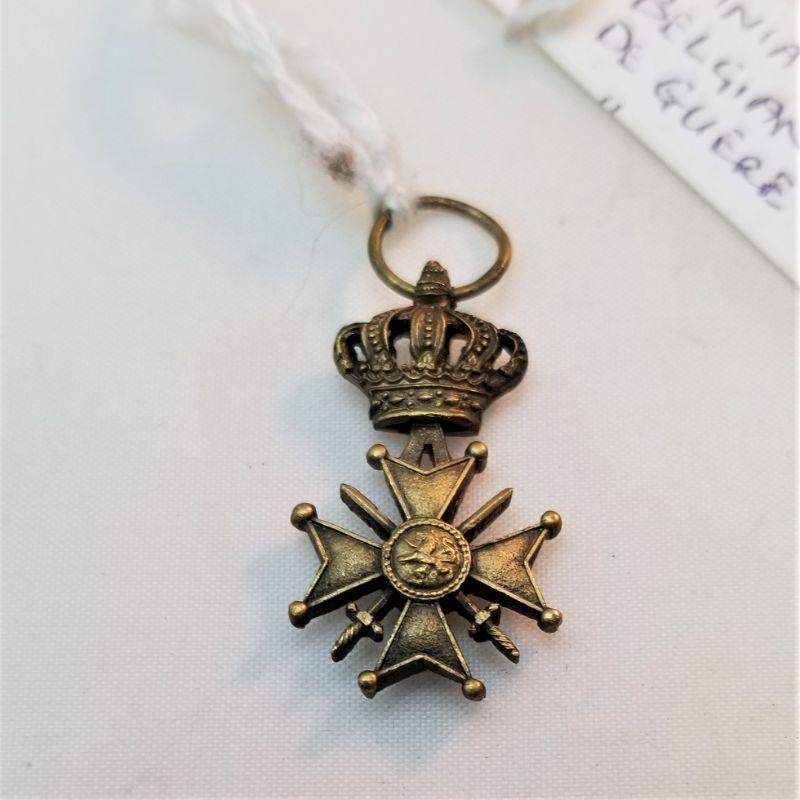 Vintage miniature Belgian Croix de Guerre - would make a great pendant or fob. 1.5" long.
