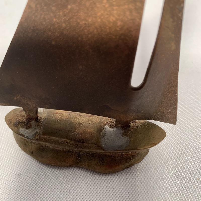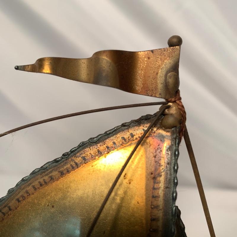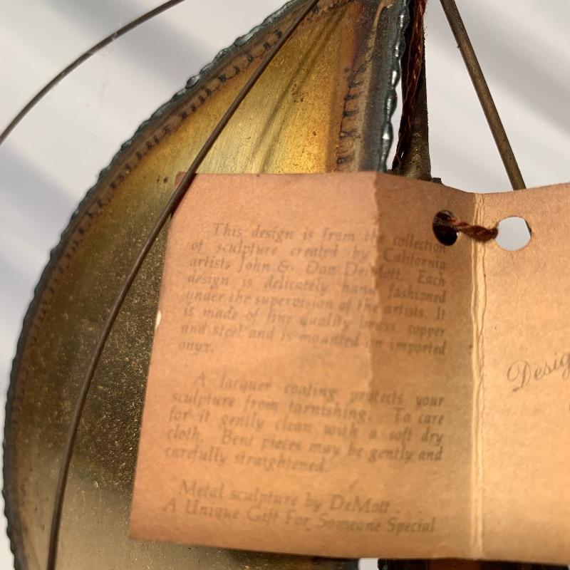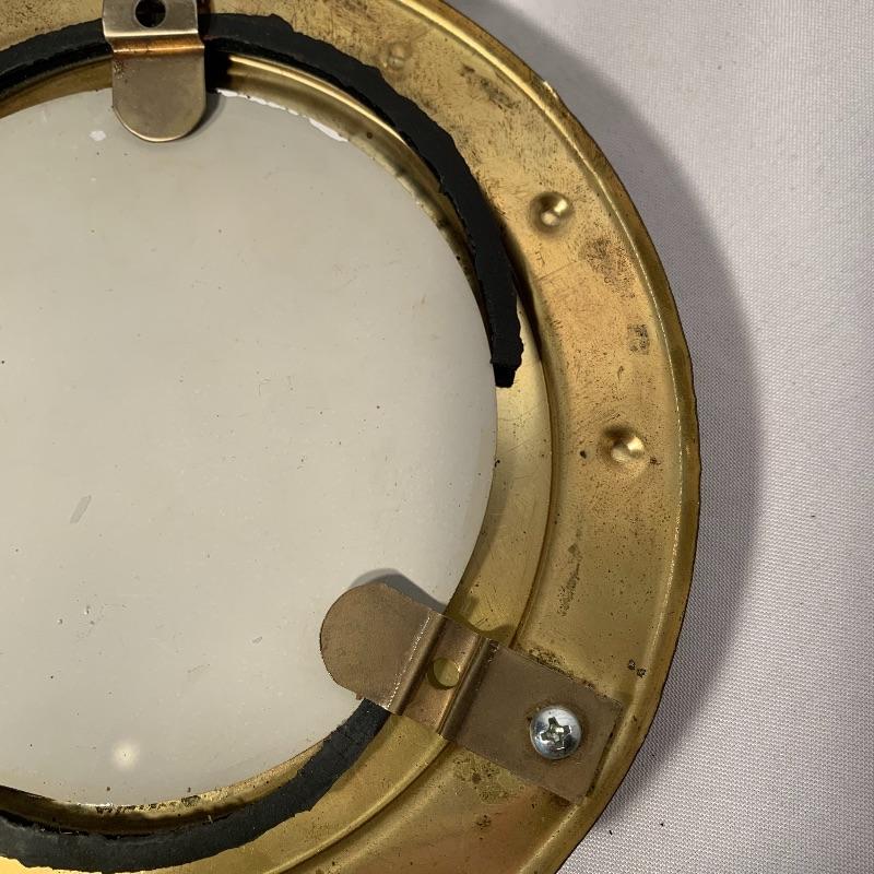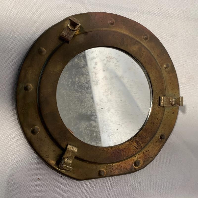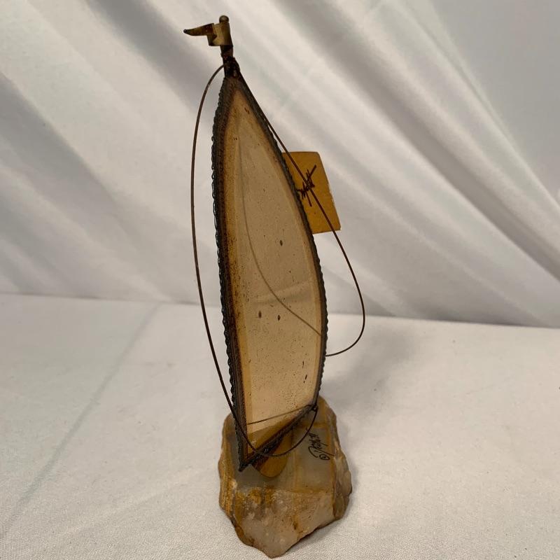 Lot 102 consists of these neat vintage brass nautical collectibles. The larger sailboat is an exquisite brass and stone piece made by Demott that depicts a ship at full sail and stands 10” tall. The smaller sail boat is an adorable brass piece that stands 4” tall. The port hole mirror is 7” across and has a dent on one side and also rubber washer that holds the mirror in place has deteriorated. However this little mirror is still a great vintage display item. Shipping available.