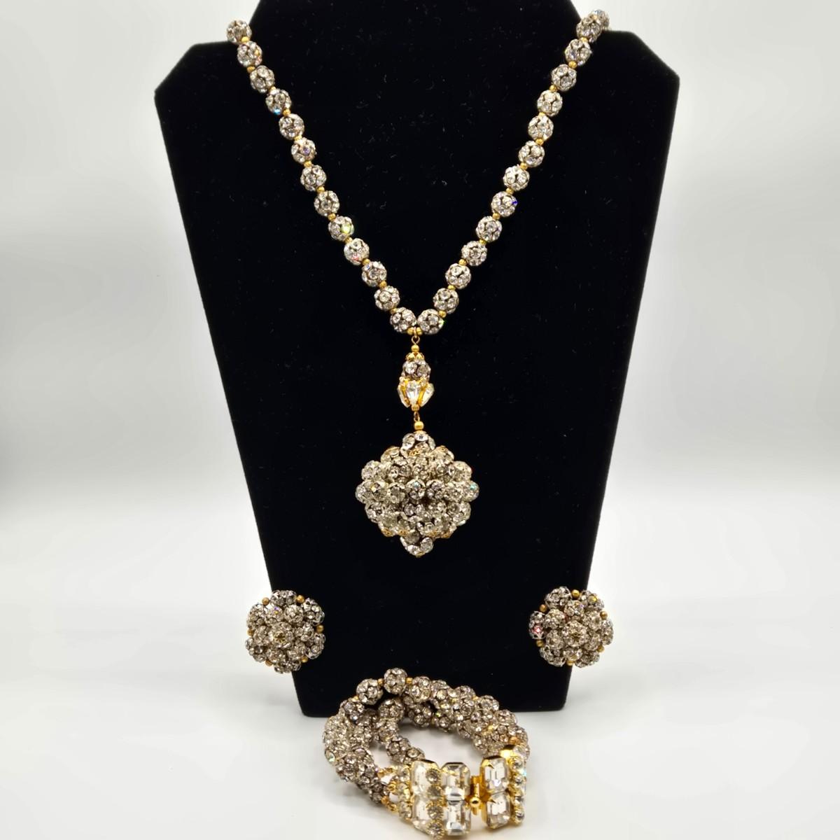 LOT 410: Vintage Fashion Necklace, Bracelet, and Clip Earring Set