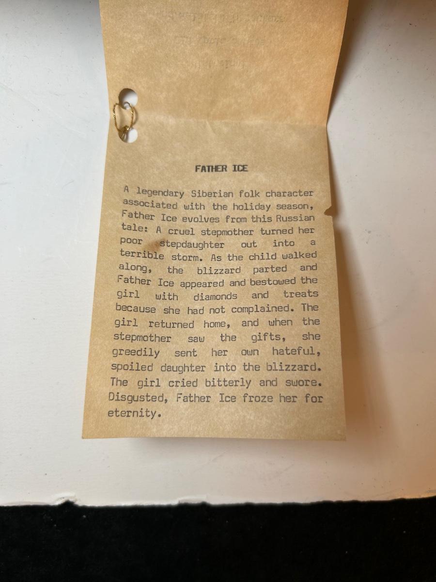 Historical Old World Santas and Related Characters by Ruth Clotfelter Camenisch from 1989, 21” *Some of the nose area is missing