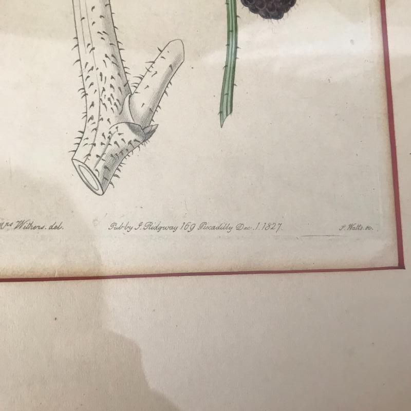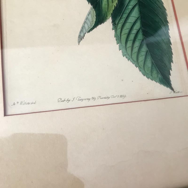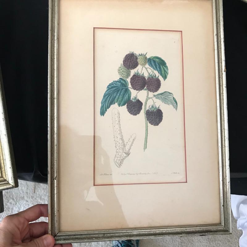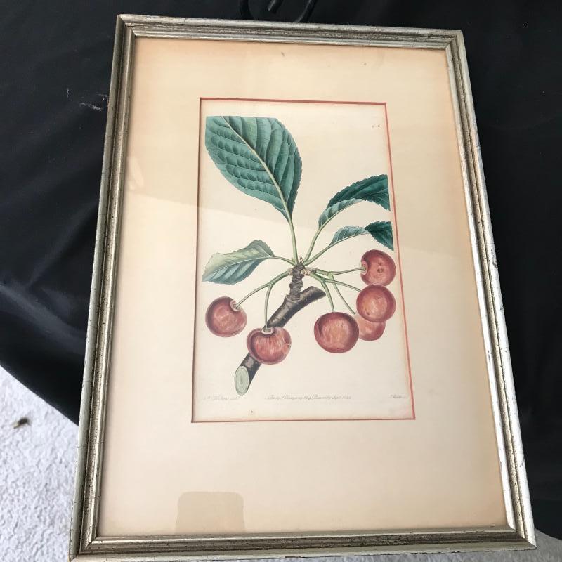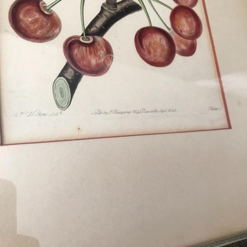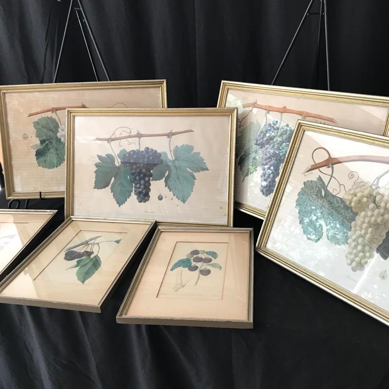 Seven fruit prints, four with grapes, two cherries, and one blackberry. Grapes are signed Eug. Grobon. Cherries and blackberry read “Pub by L. Ridgeway 169 Picadilly 1827” (and 1828 and 1829). Large prints are approx. 19” x 13”, smaller ones are approx. 14” x 10”. Shipping available or local pickup in Asheville, NC. Please note that shipping art can be expensive.
