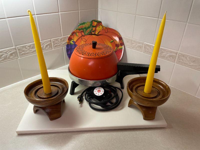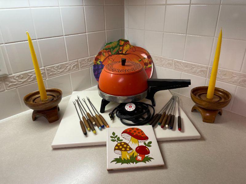 LOT 117 VINTAGE ORANGE FONDUE POT