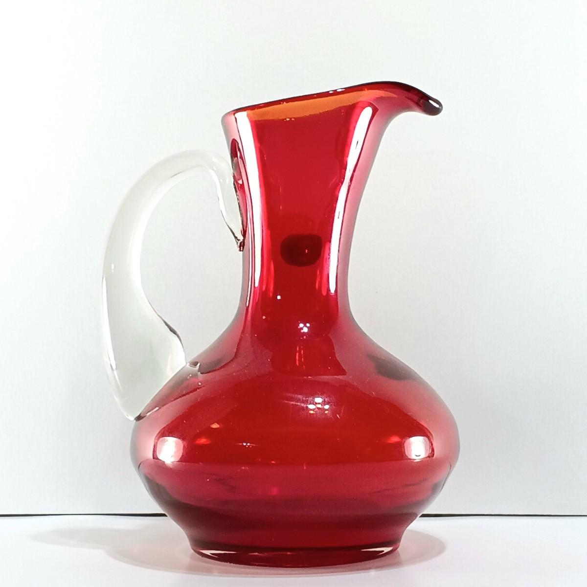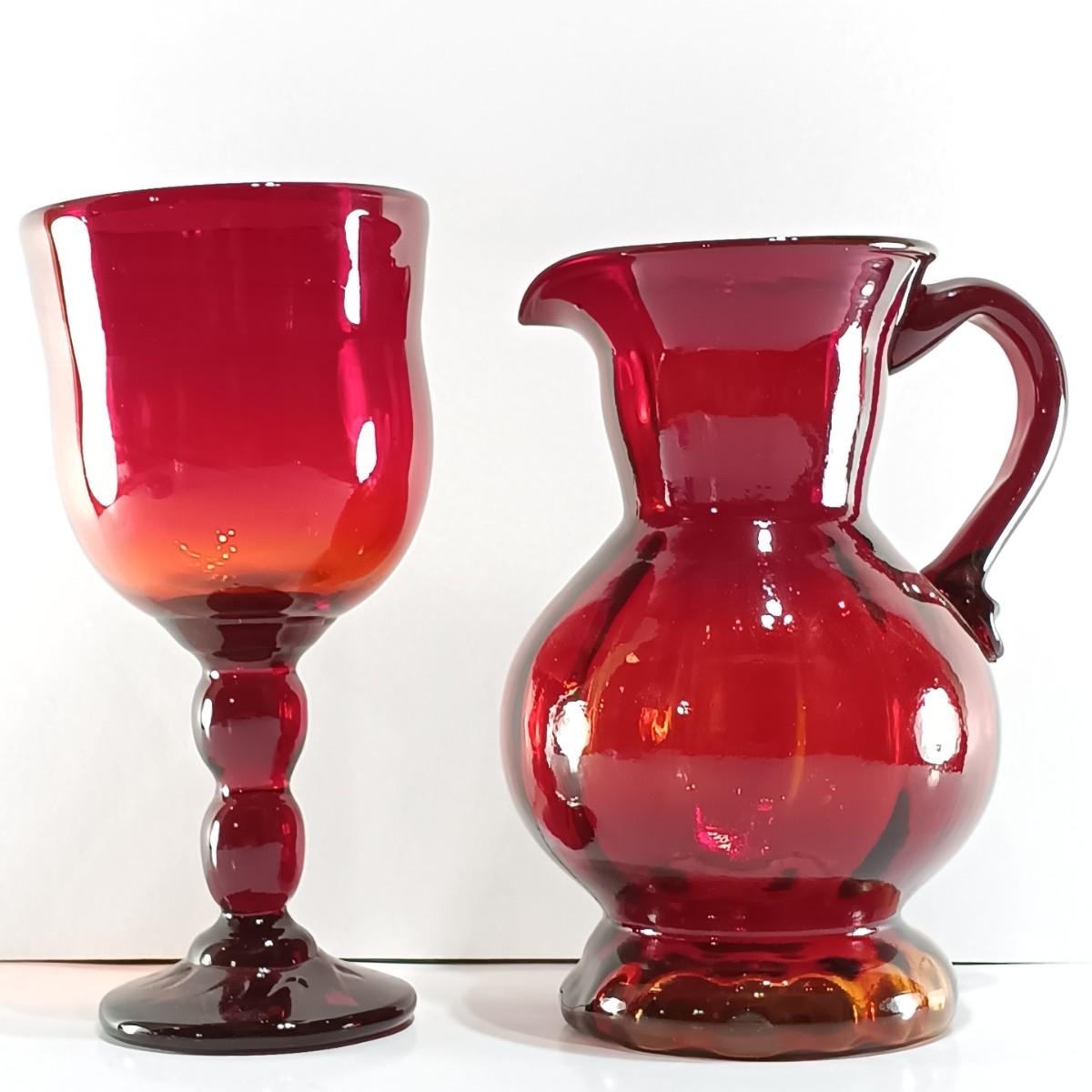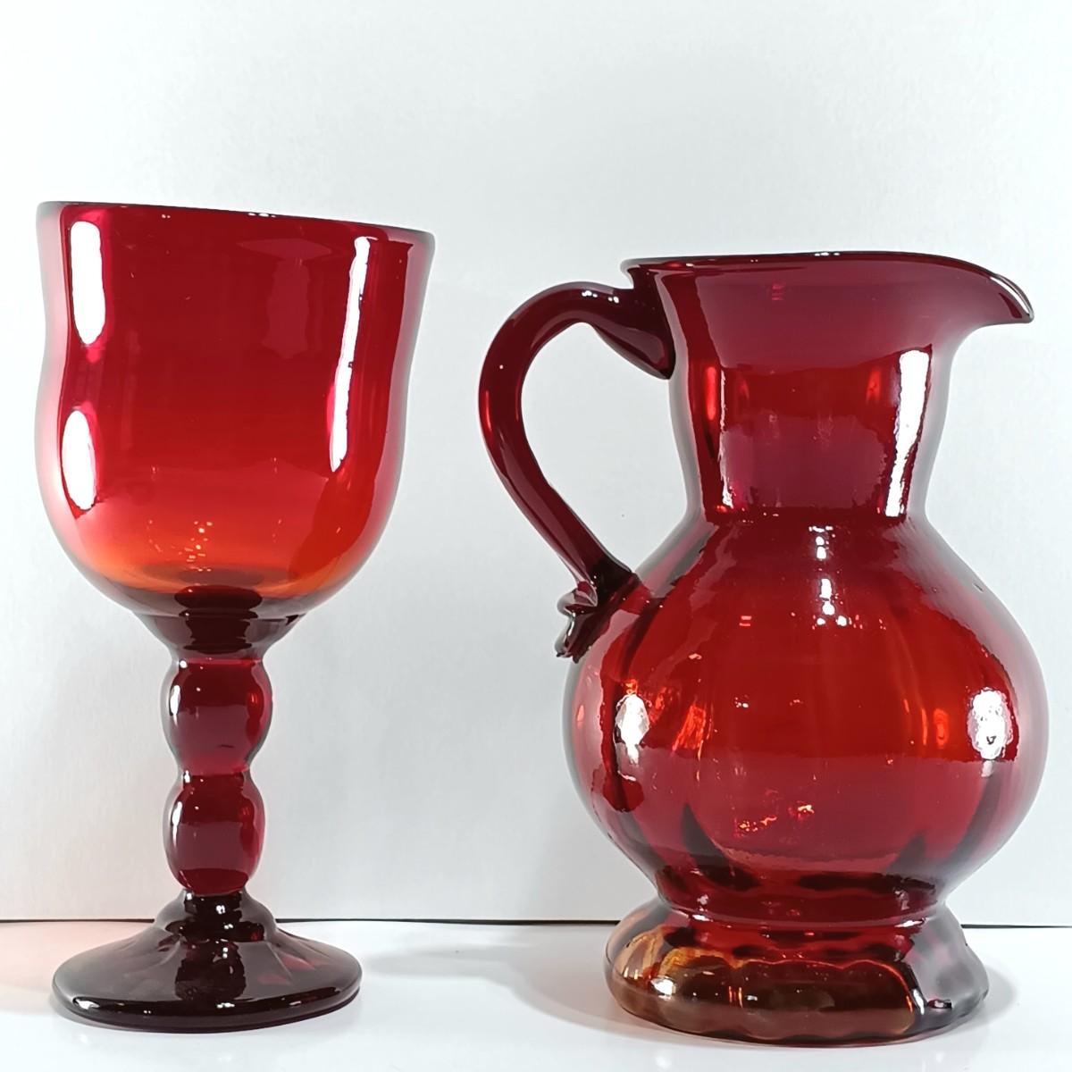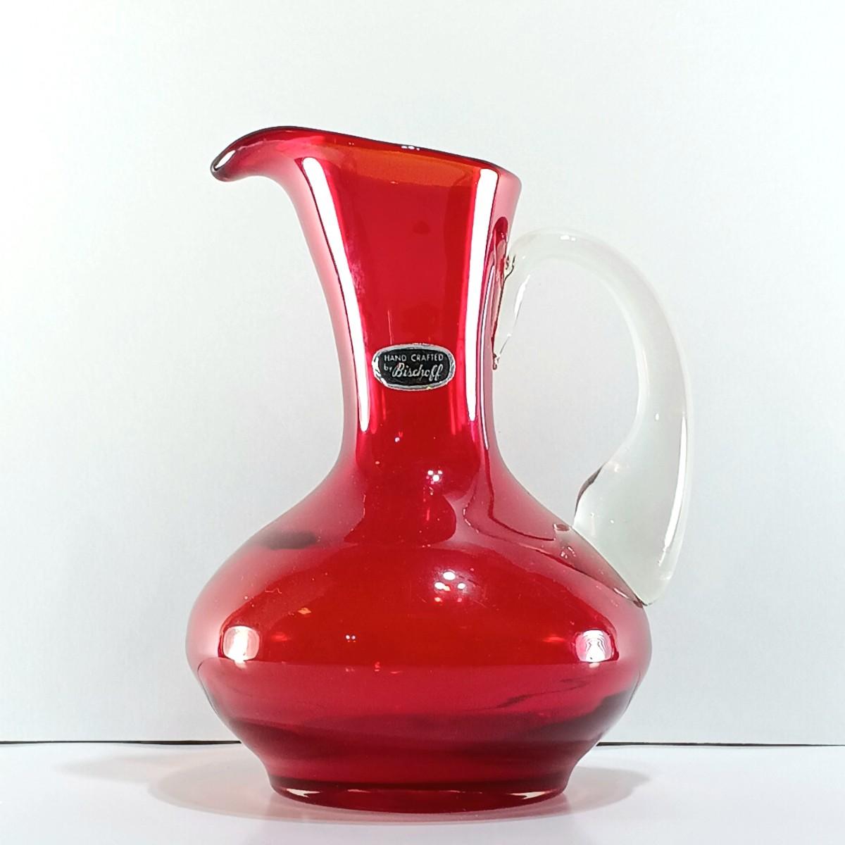 LOT 4: MCM Bischoff Ruby Red Glass Pitcher w/ Art Glass Goblet & More