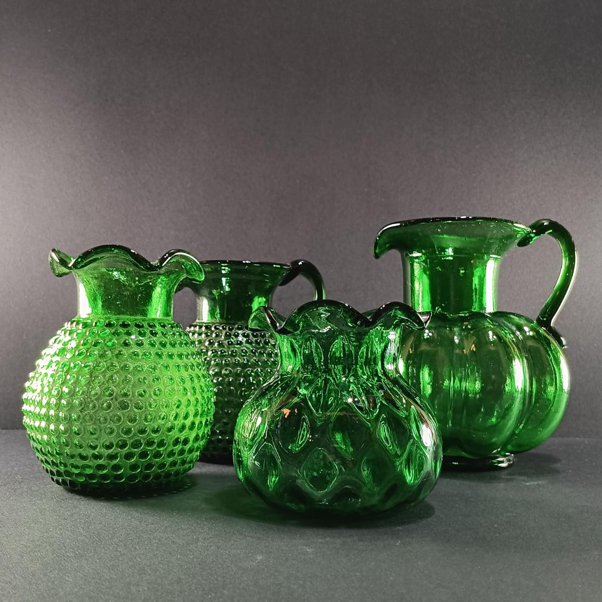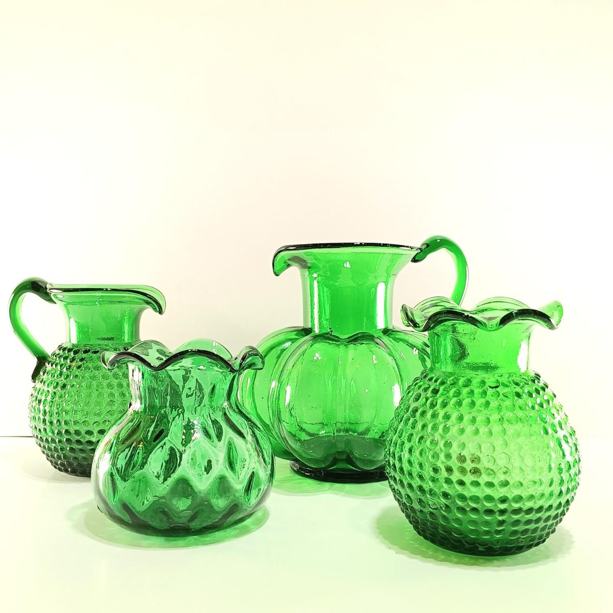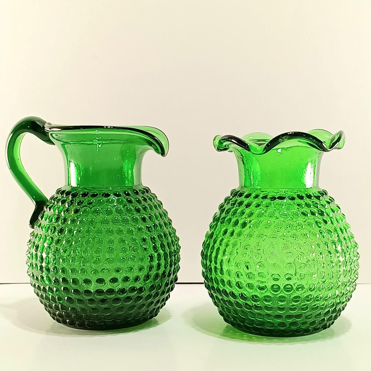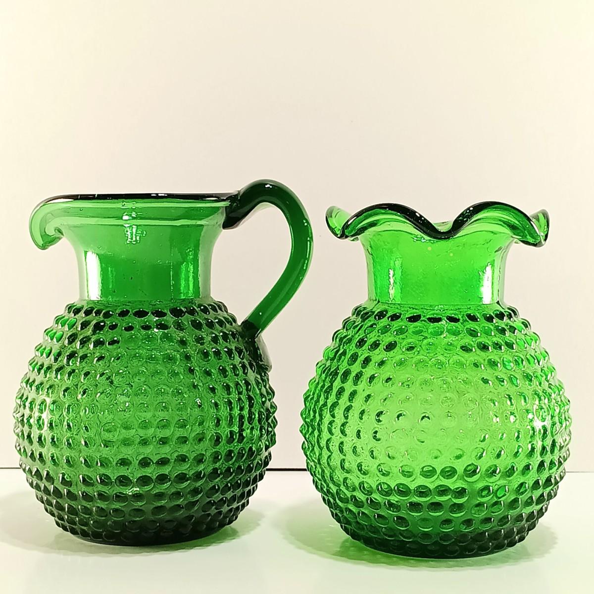 LOT 5: Hobnail Pitcher and Vase w/ Thumbprint Vase & Gourd-Shaped Pitcher