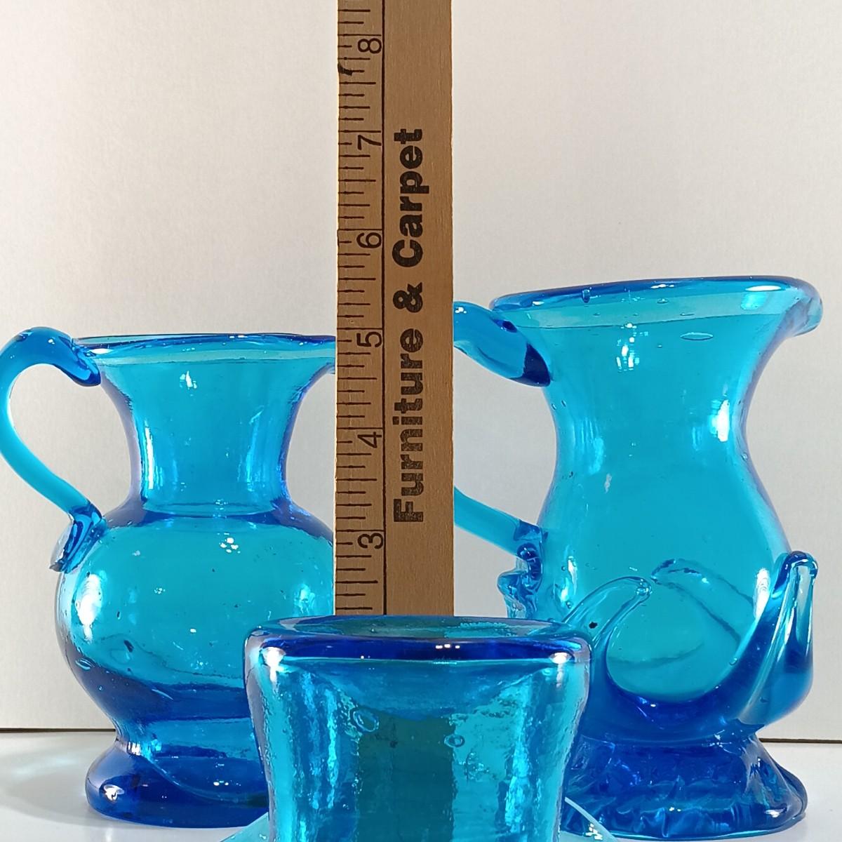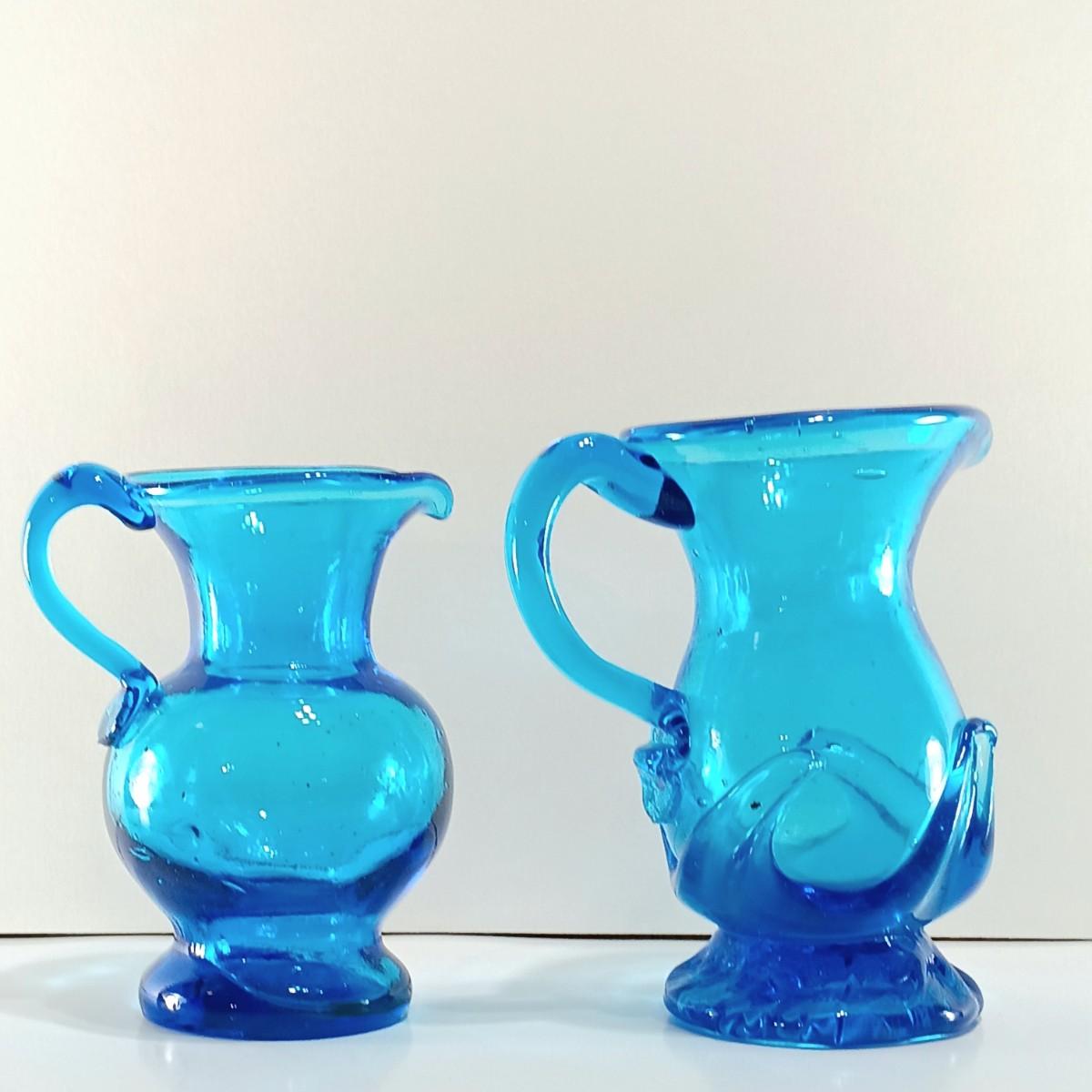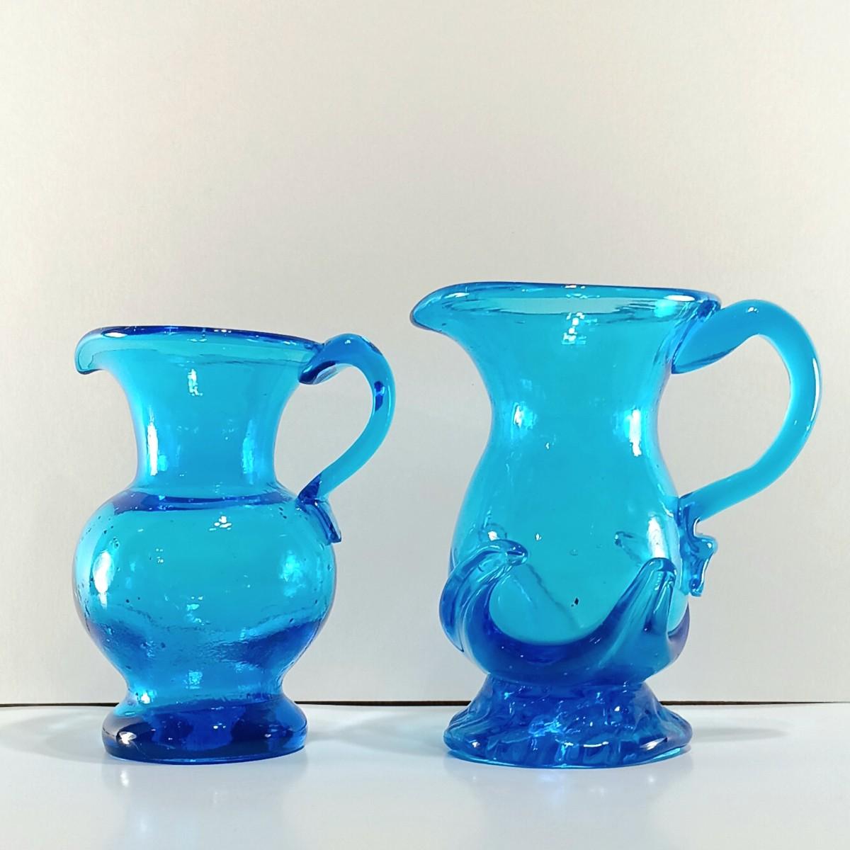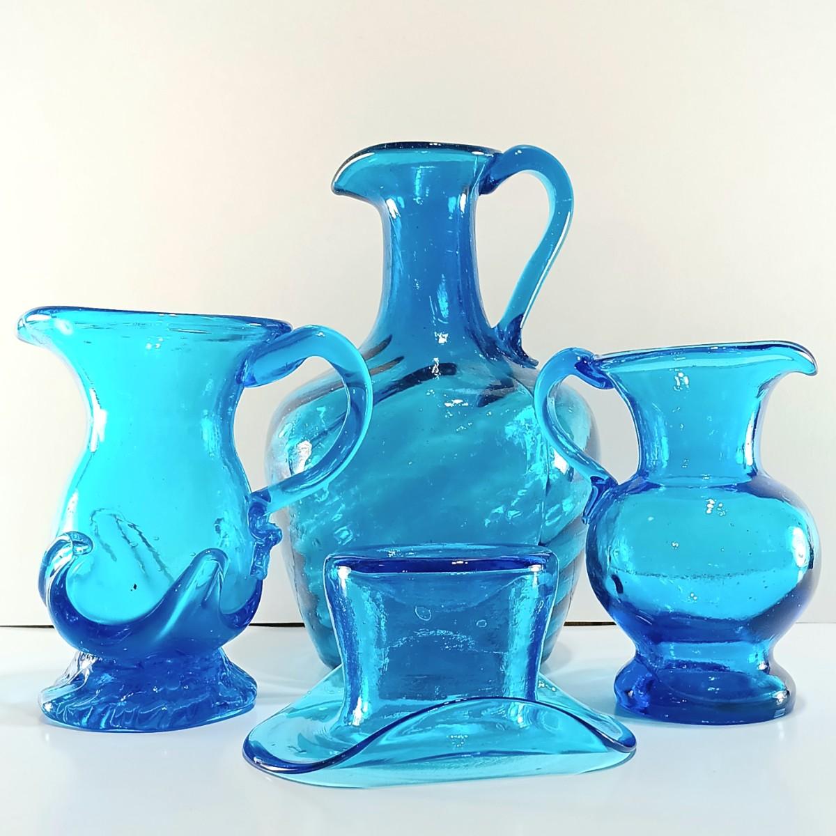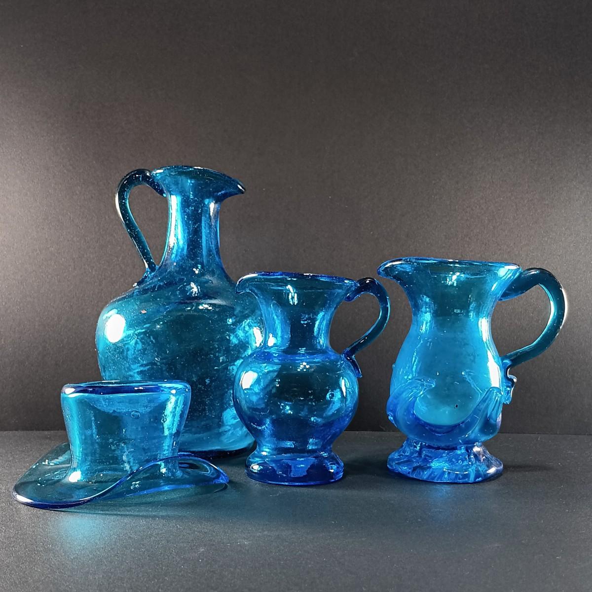 LOT 8: Blue Glass Pitchers with Hat