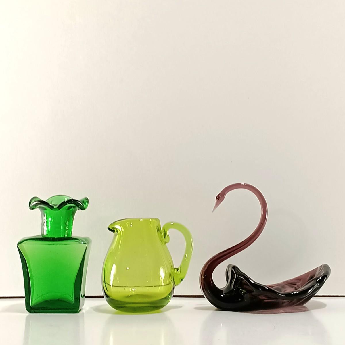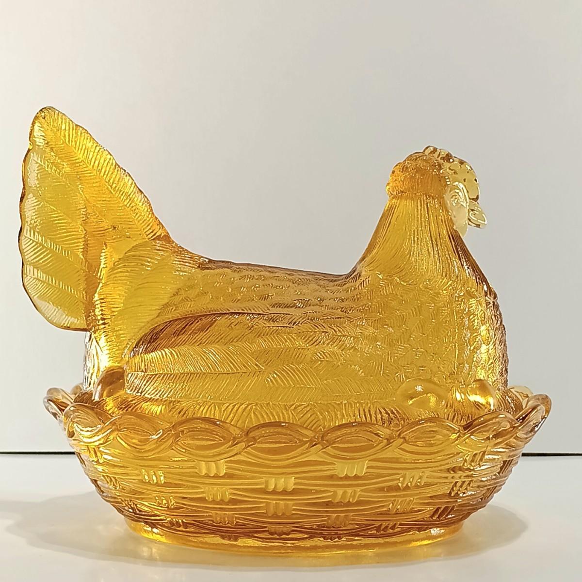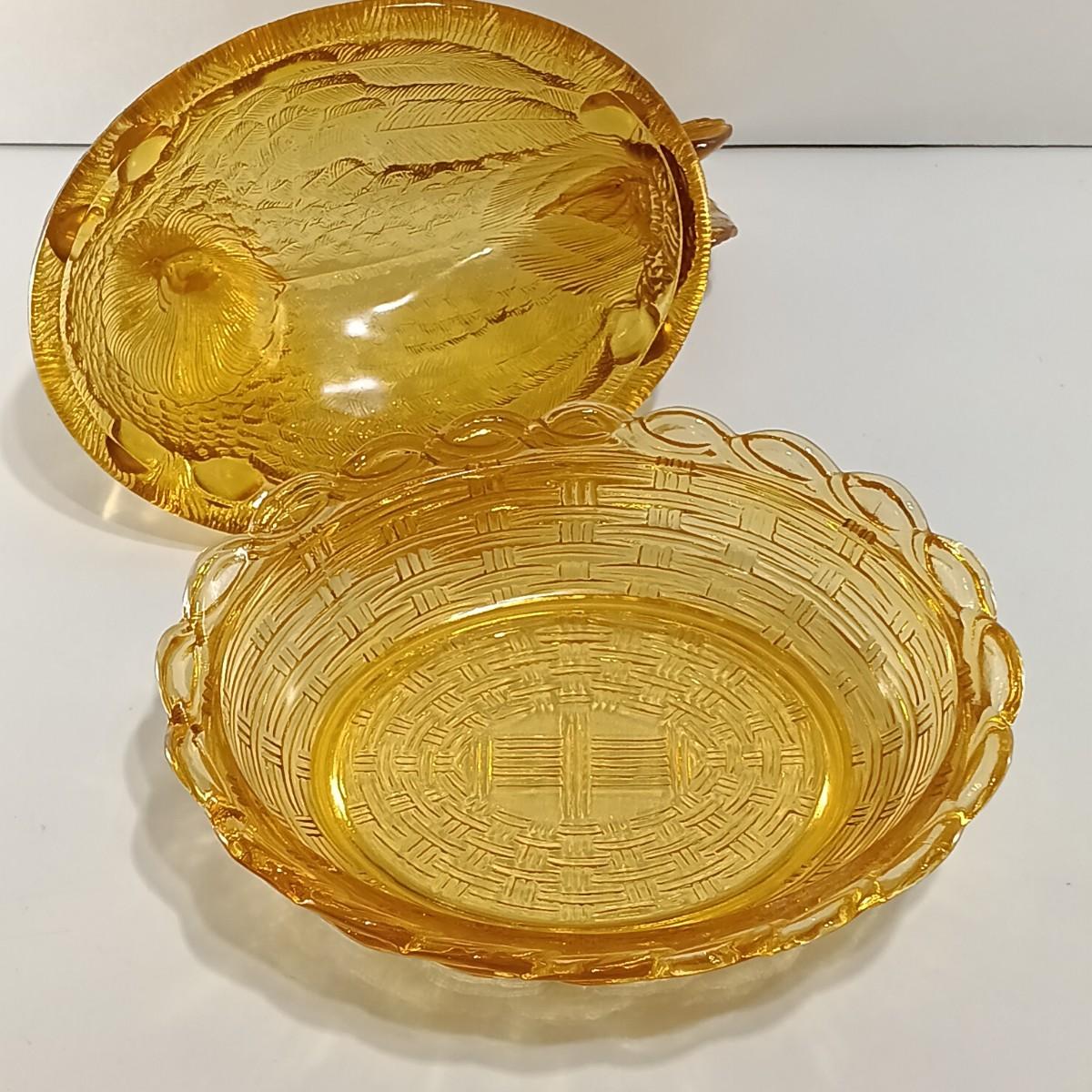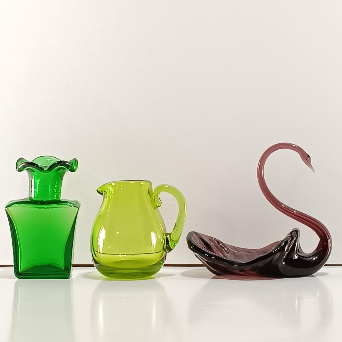 LOT 9: Uranium Glass Bird With Berry with Amber Hen on Nest, Amethyst Swan and More