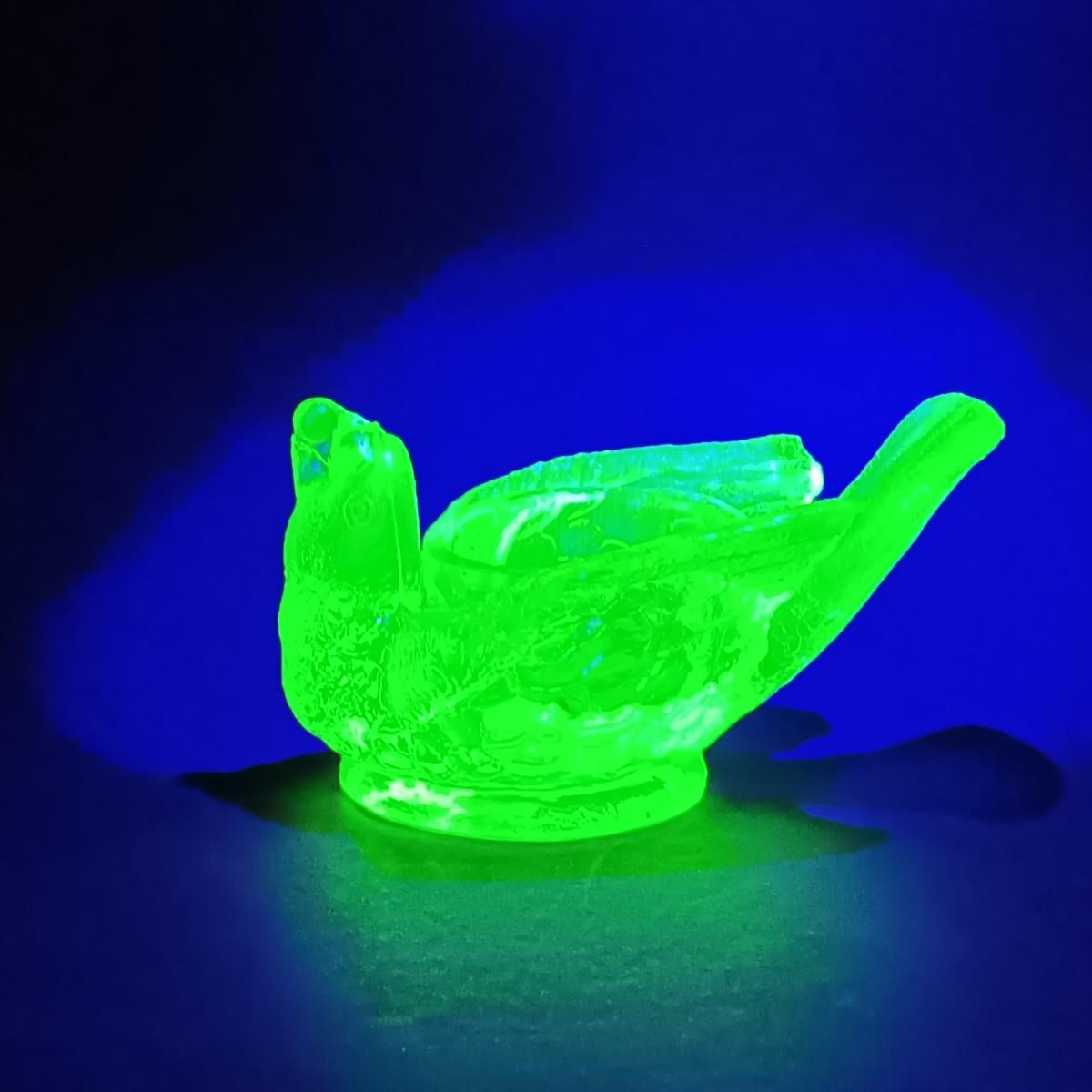 Please Note: The Uranium Glass Bird With Seed has a chip in one of its wings.