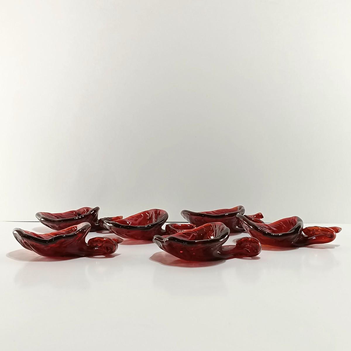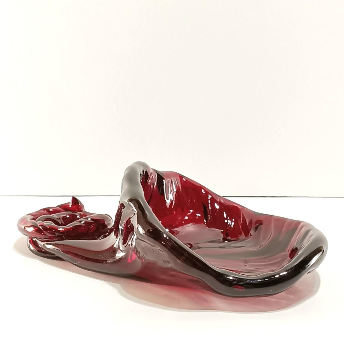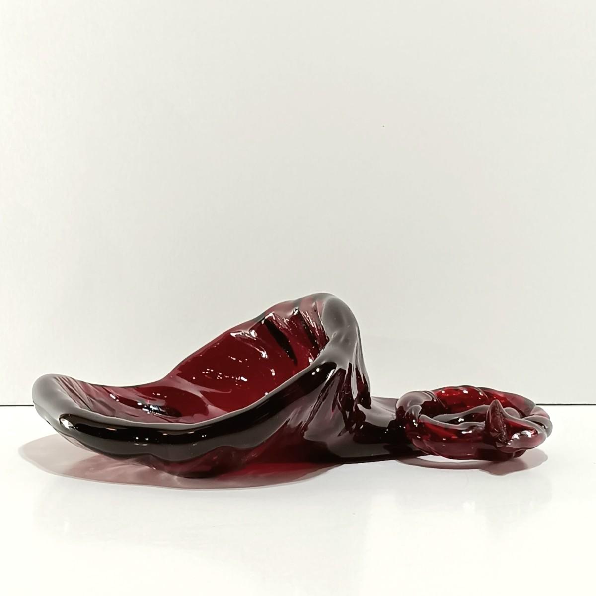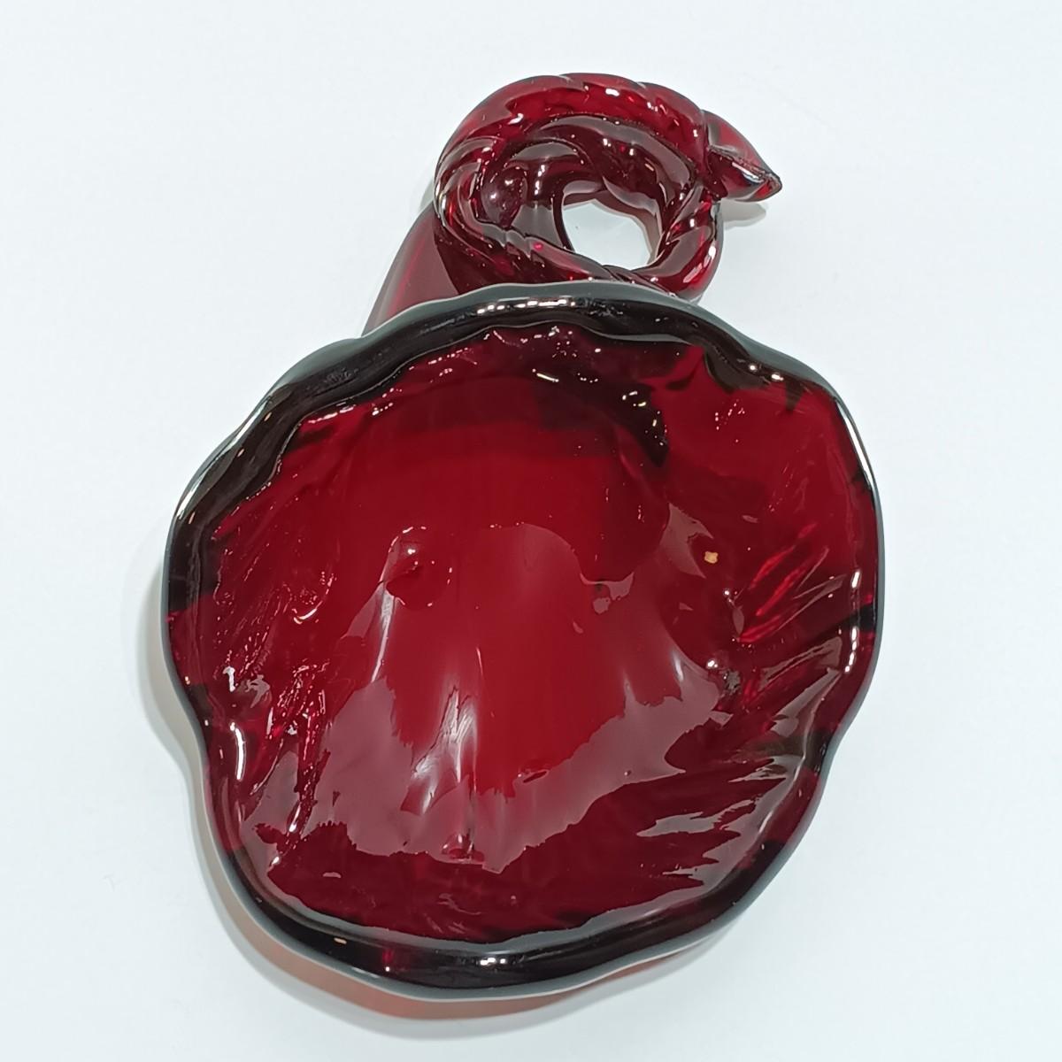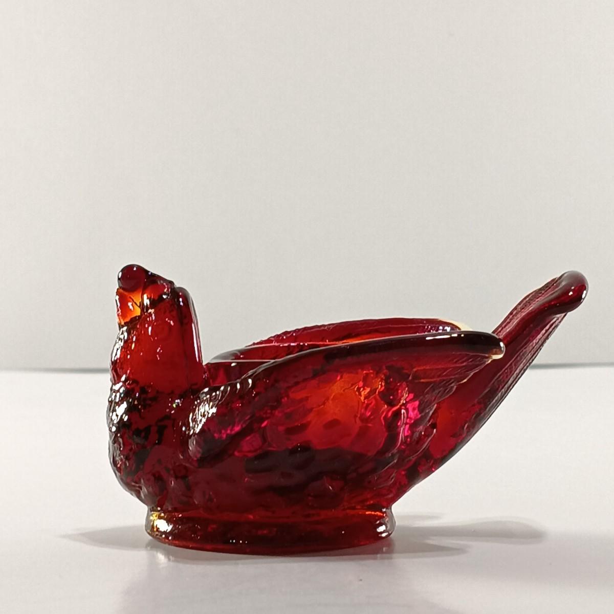 LOT 10: Amberina Pitcher w/ Bird With Berry and Ruby Glass Cornucopias