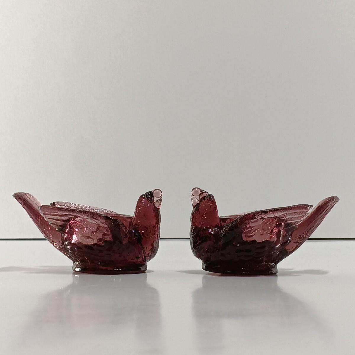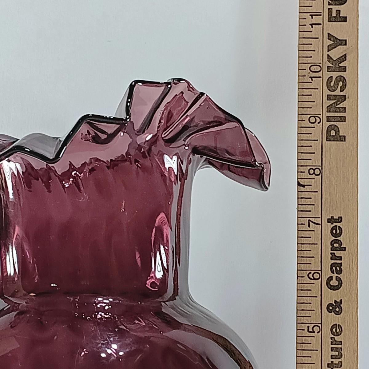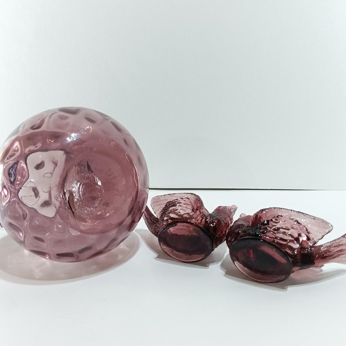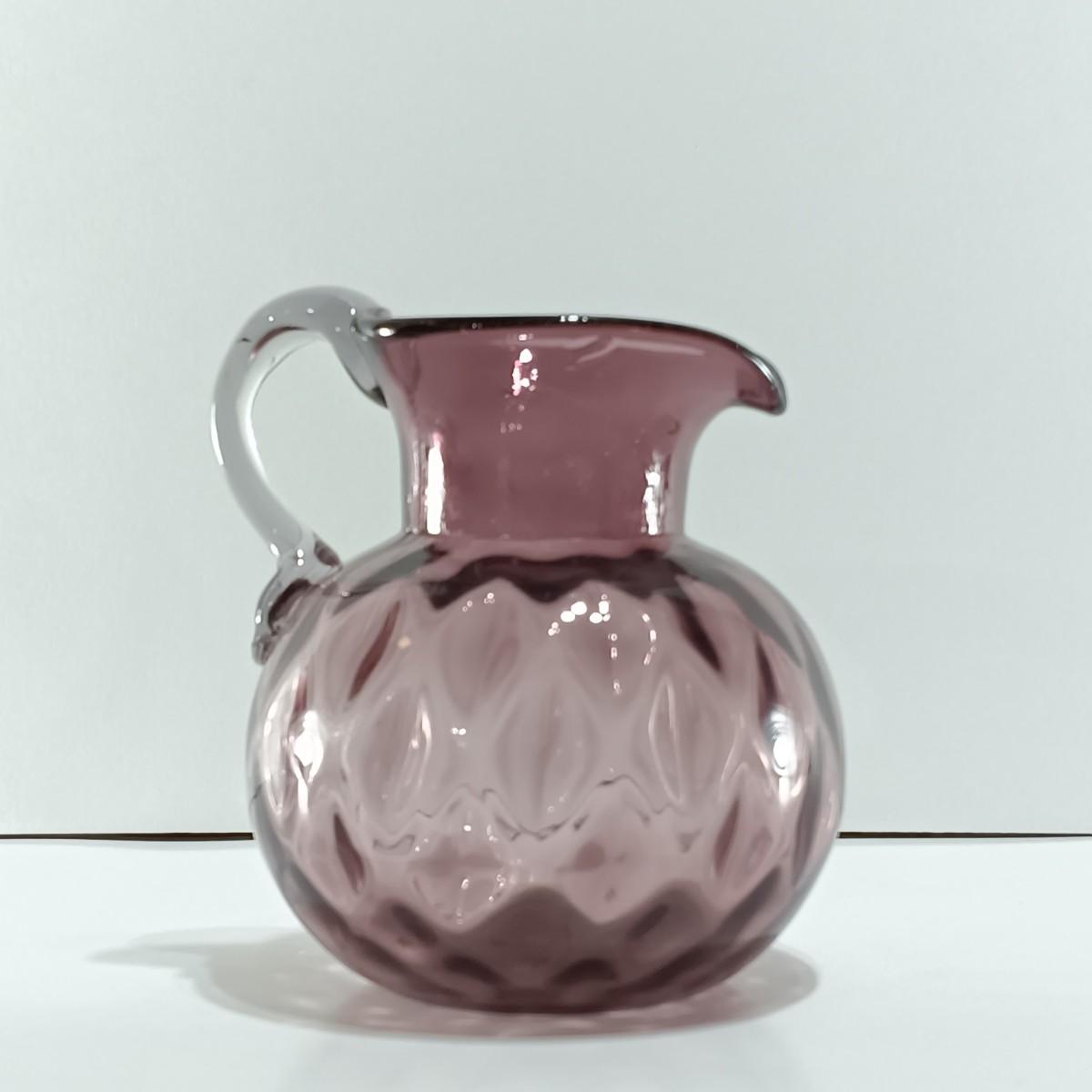 LOT 14: Amethyst Ruffle Top Coin Spot Pitcher with a Pair of Bird With Seeds and 3 Smaller Pitchers