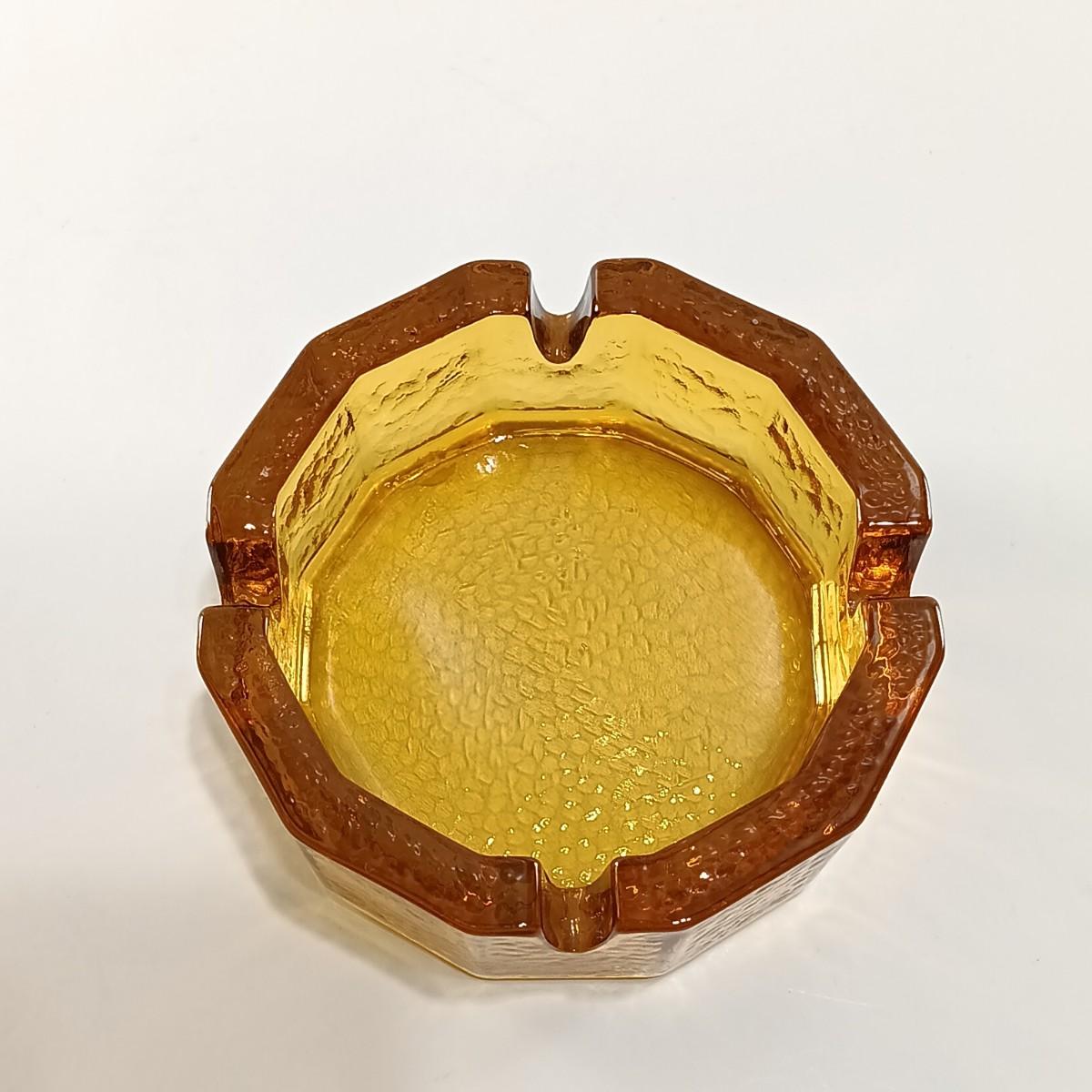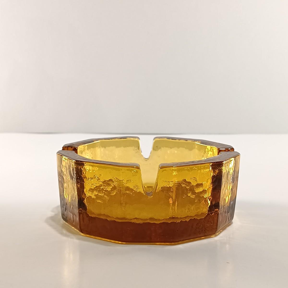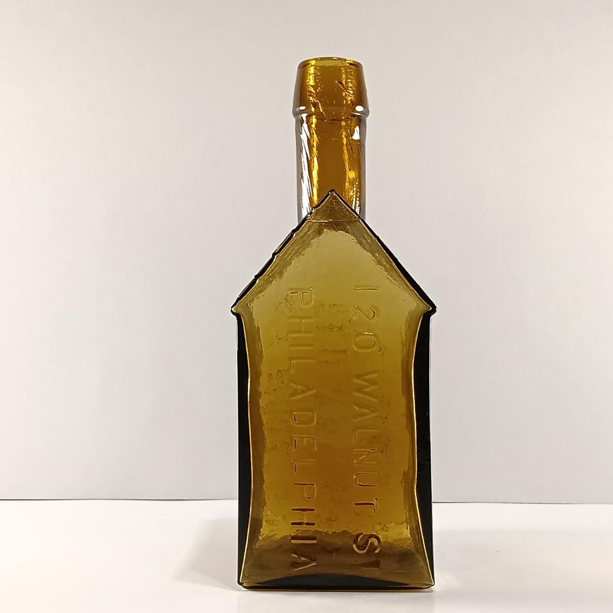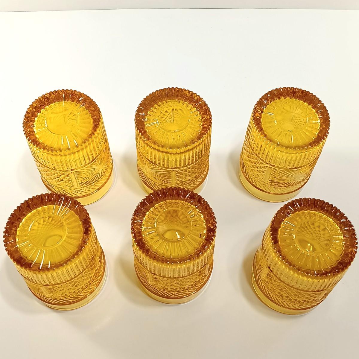LOT 17: Set of 6 Smith Amber Glass Tumblers with an E.G. Booz's Old Cabin Whiskey Bottle and Ashtray