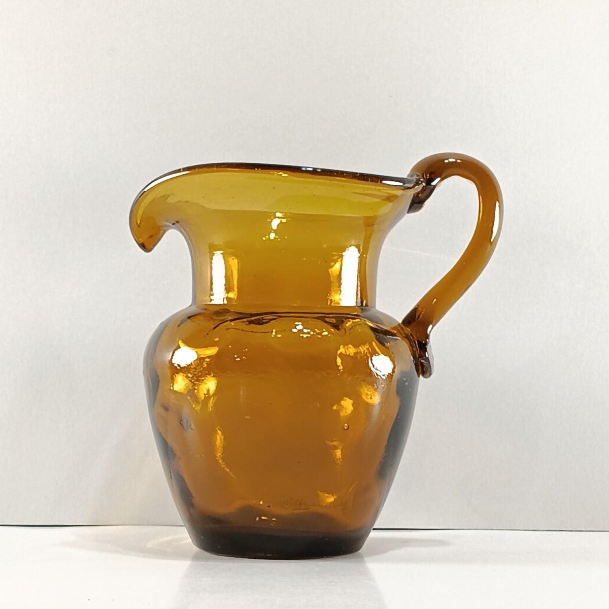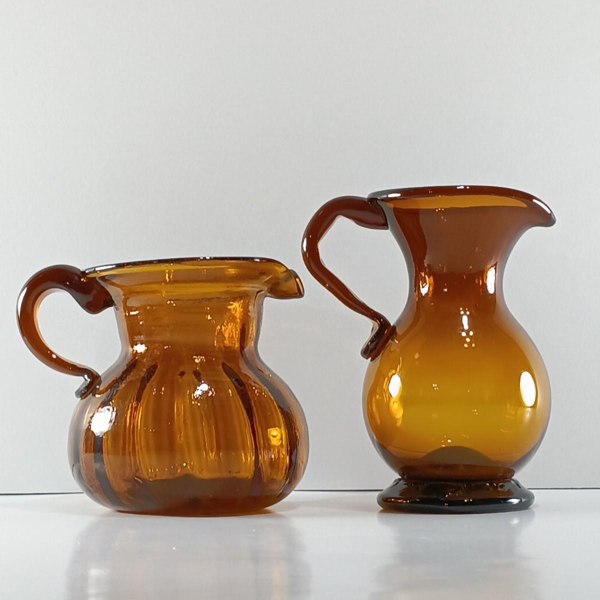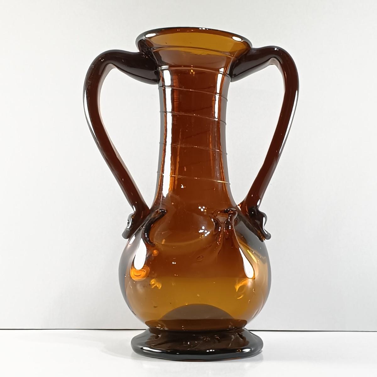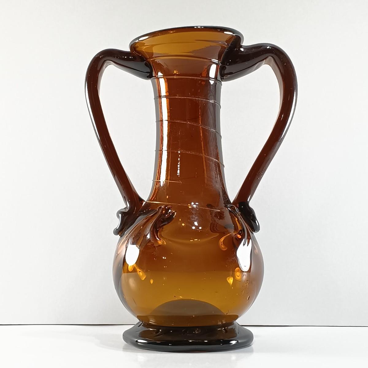 LOT 18: Amber Glass Double Handled Vase with 3 Pitchers