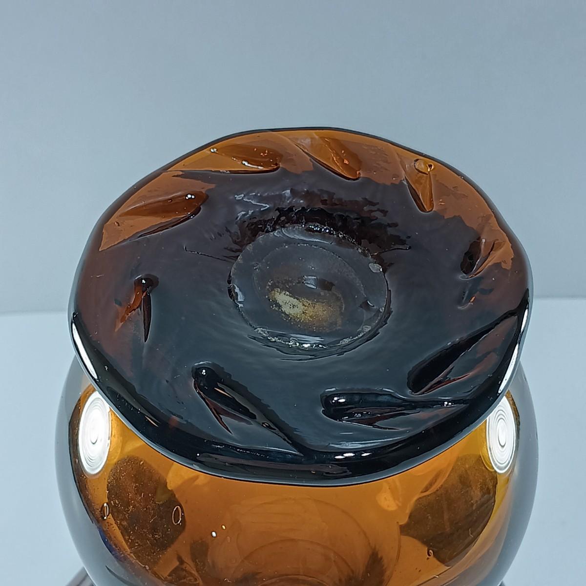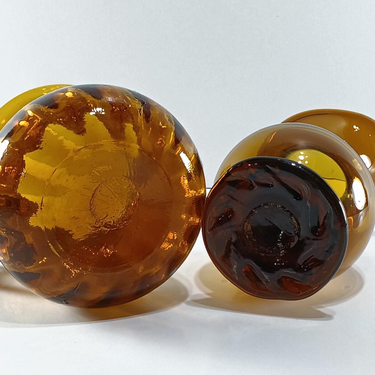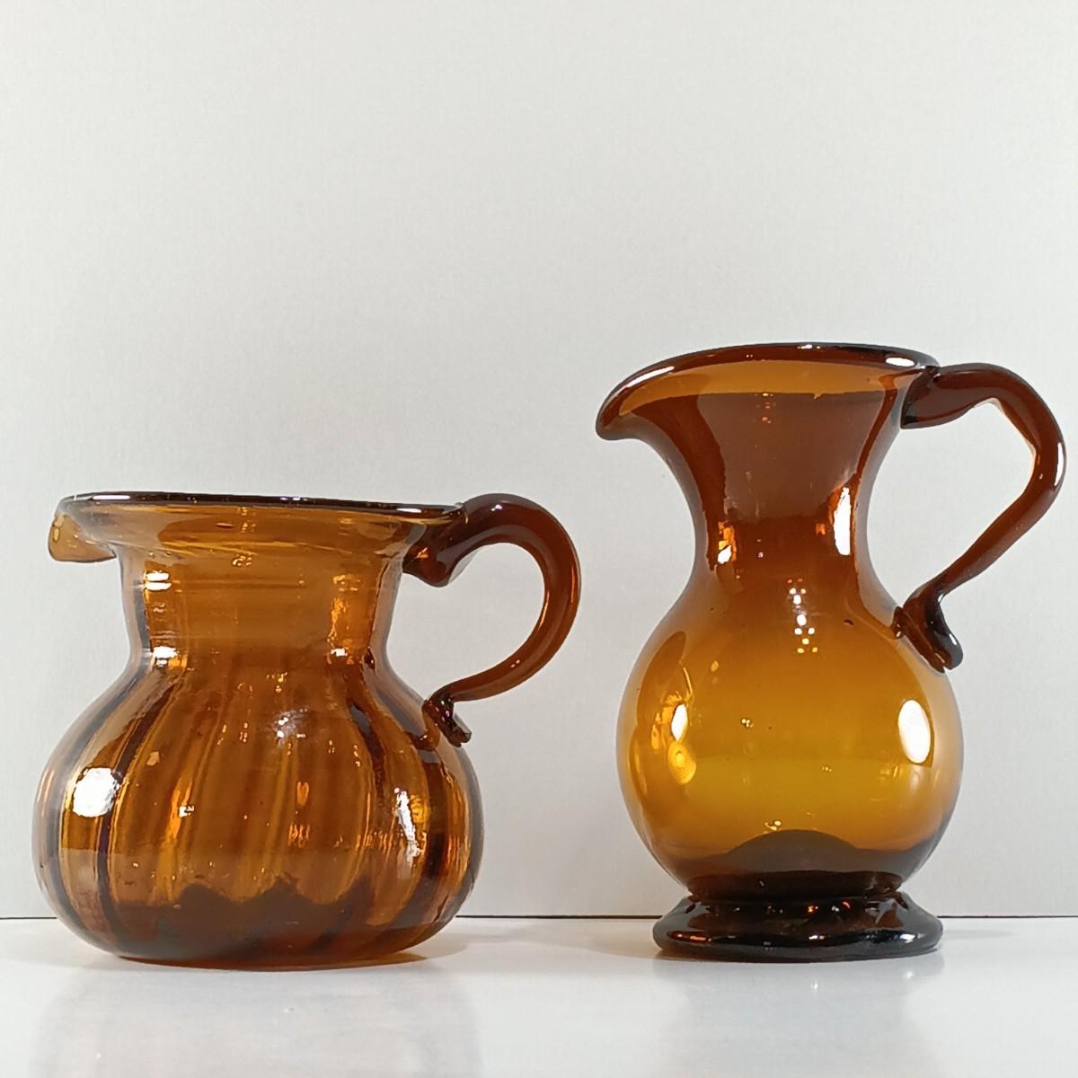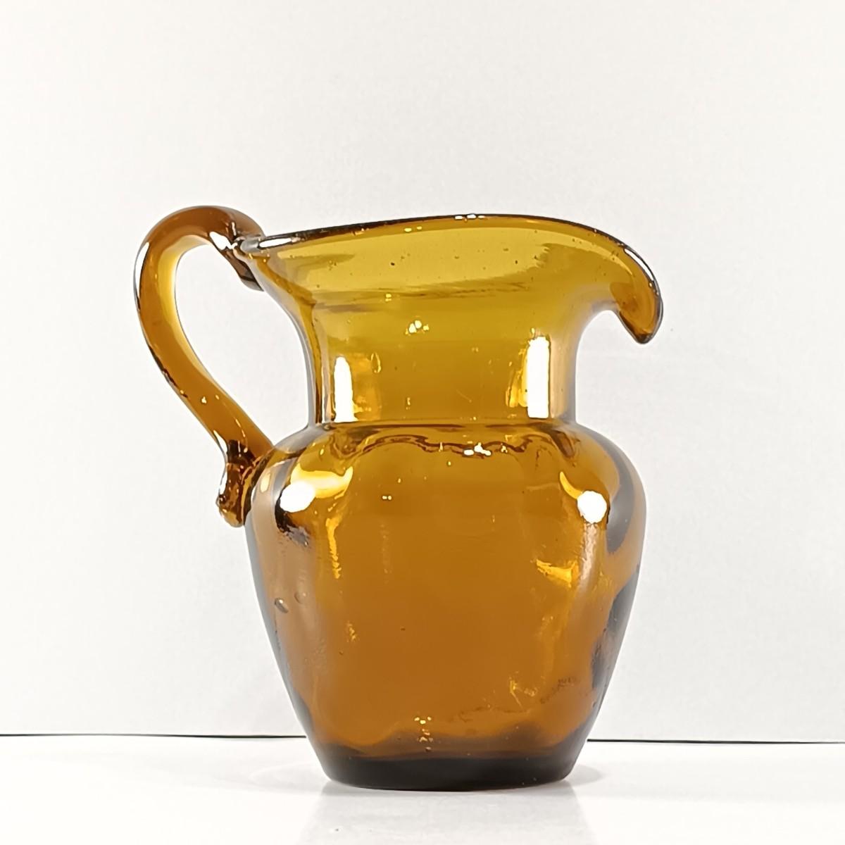 LOT 18: Amber Glass Double Handled Vase with 3 Pitchers