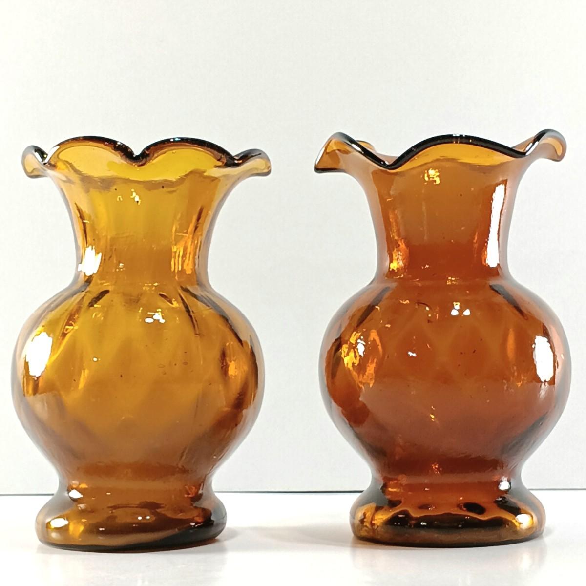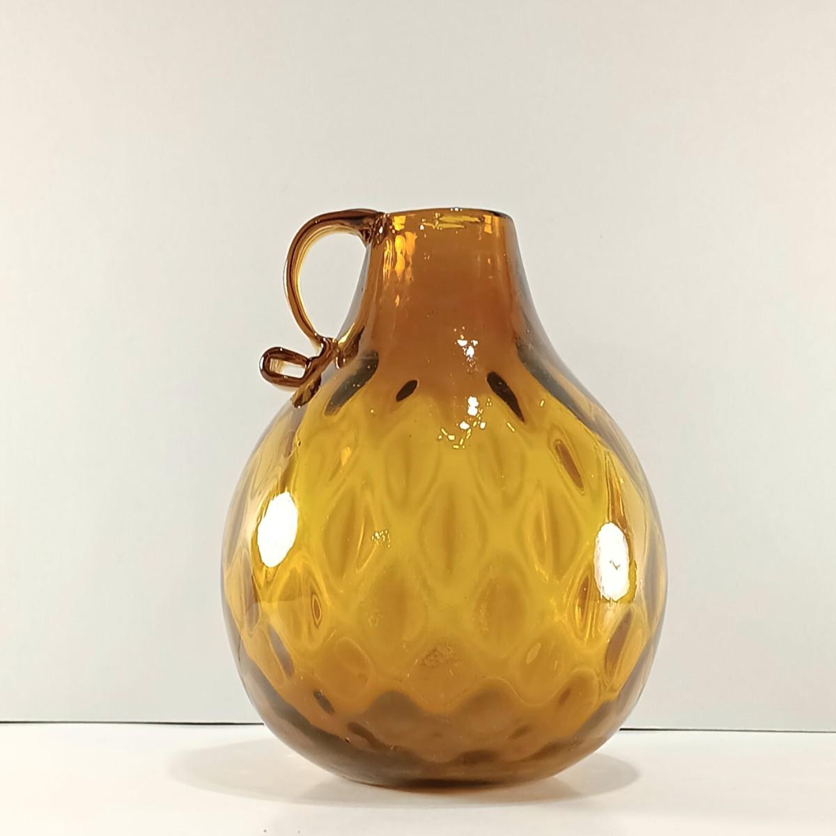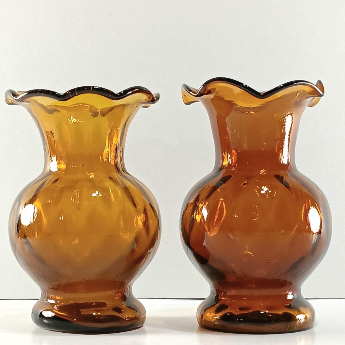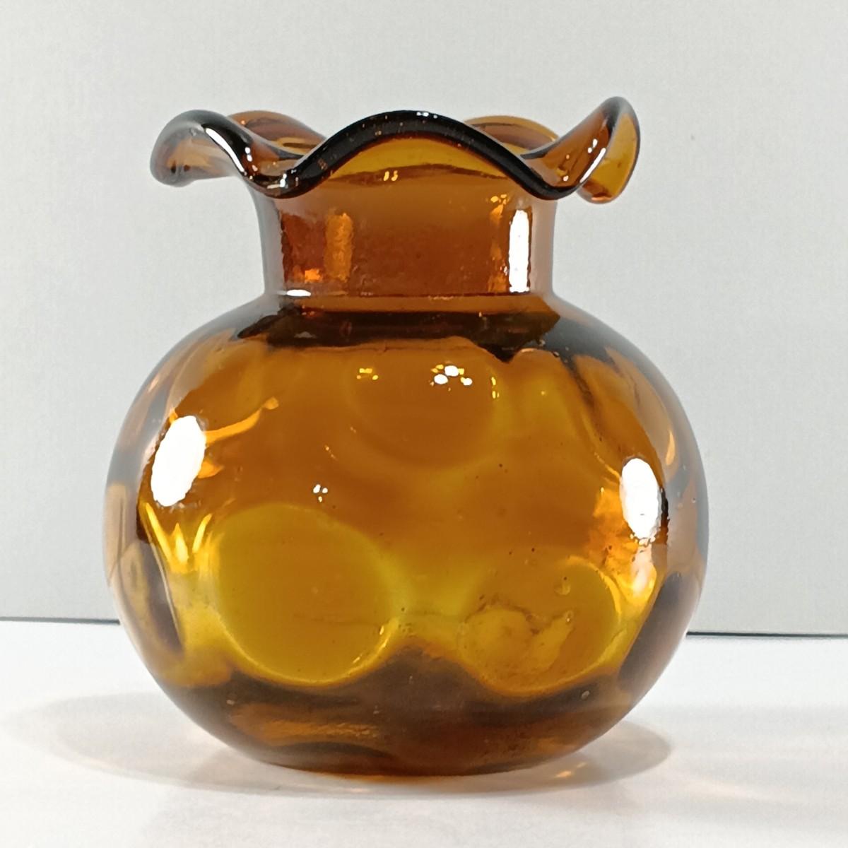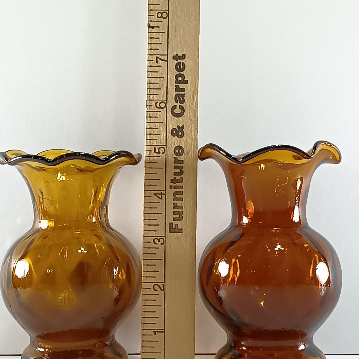 LOT 19: Amber Glass Thumbprint Jug with 3 Ruffle Edged Vases