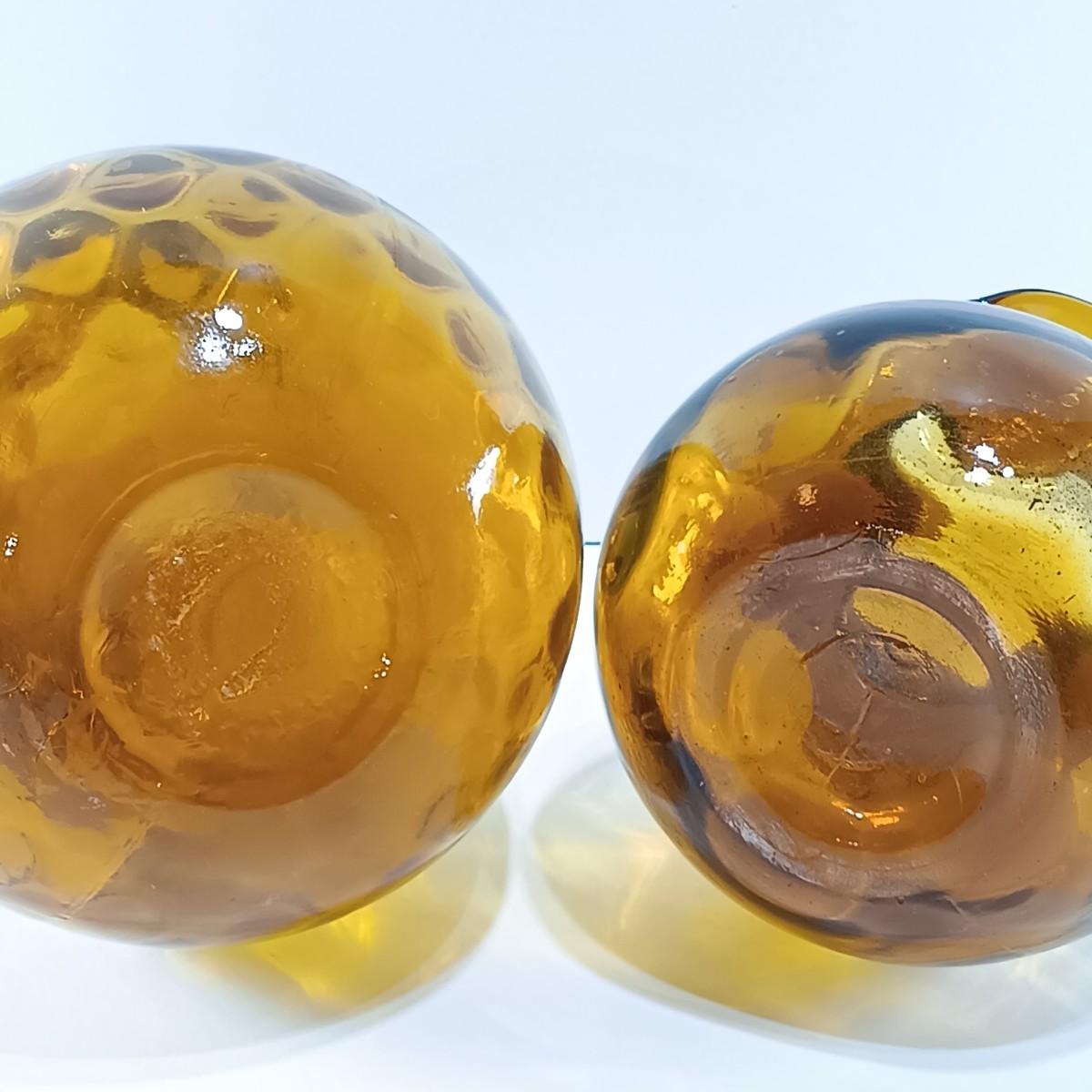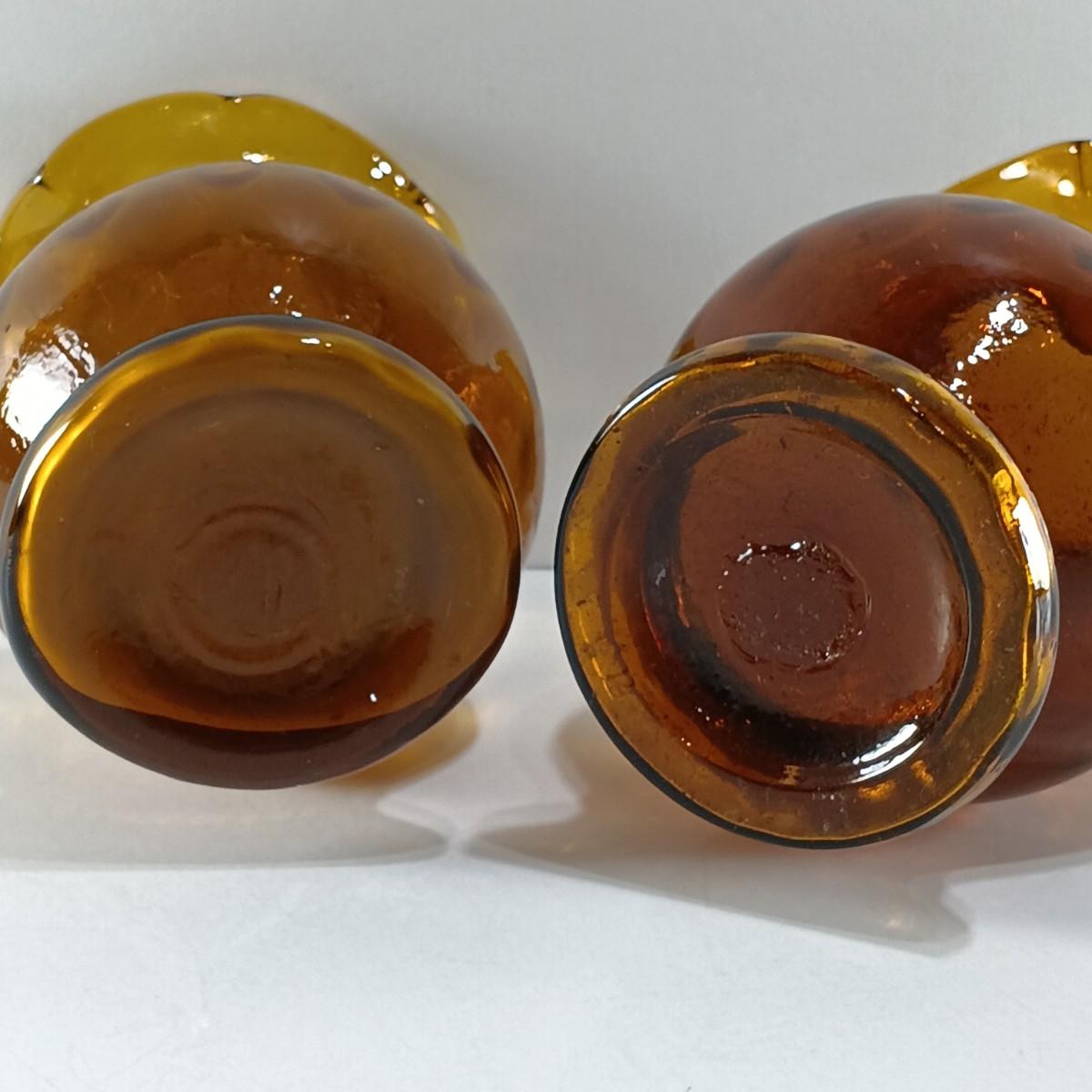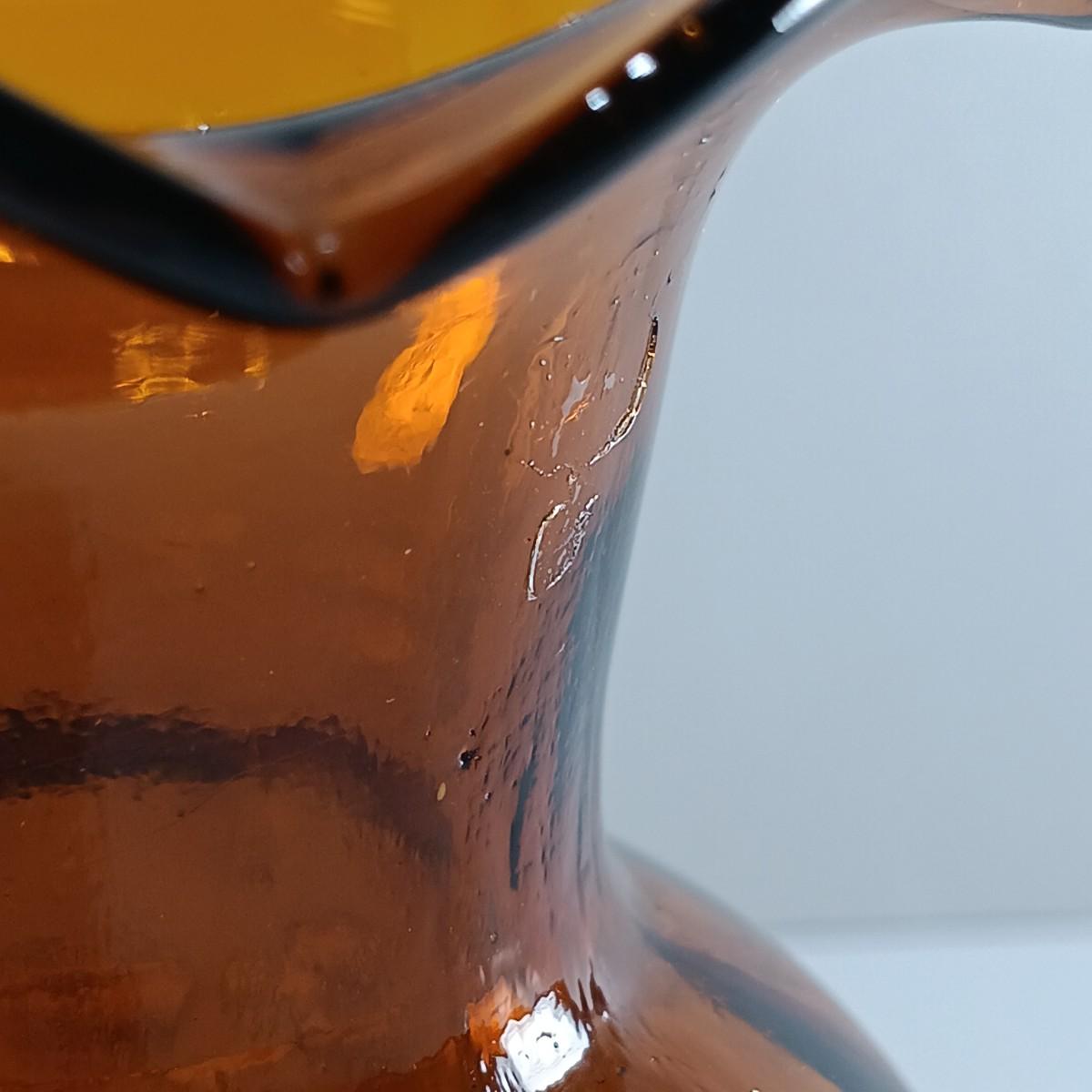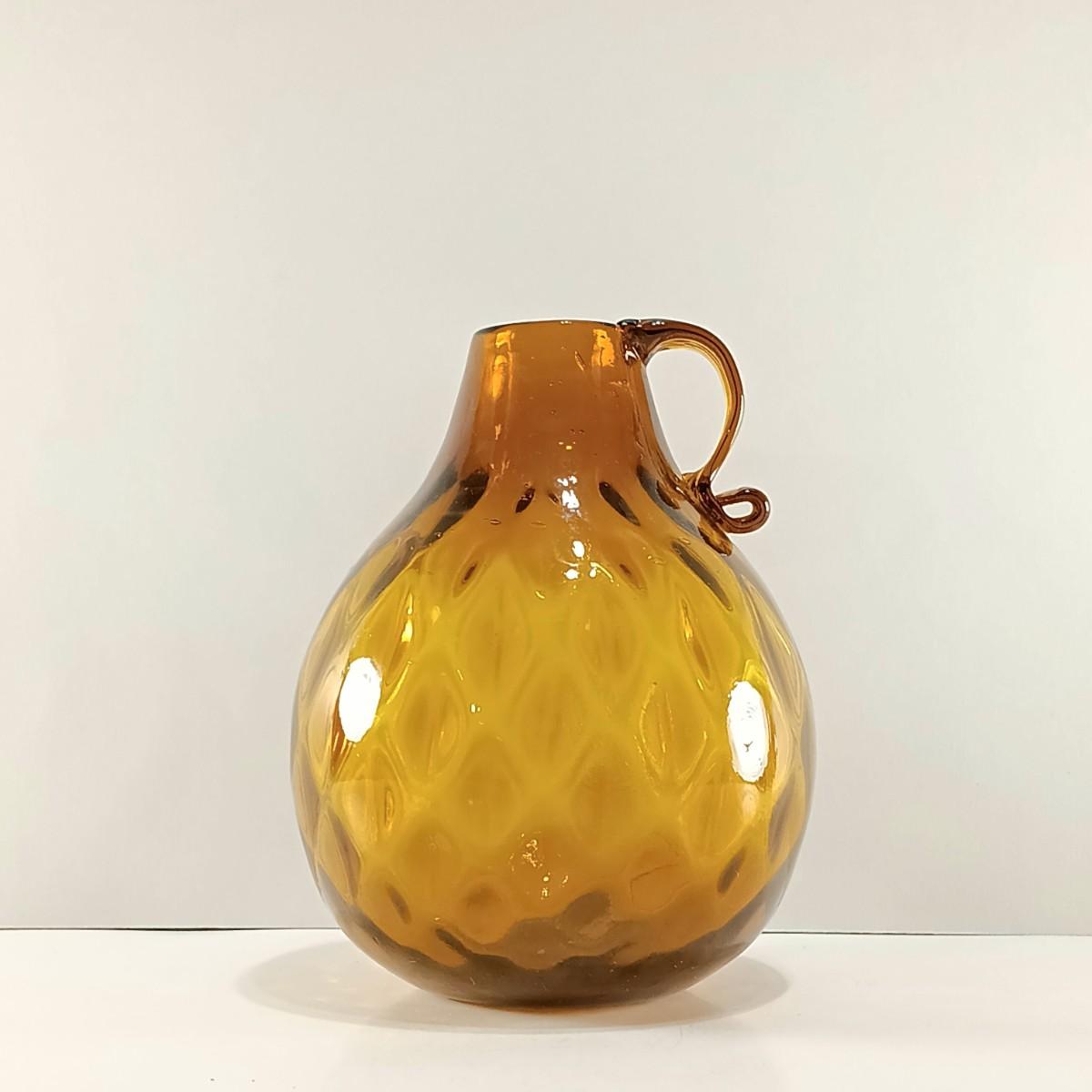 LOT 19: Amber Glass Thumbprint Jug with 3 Ruffle Edged Vases