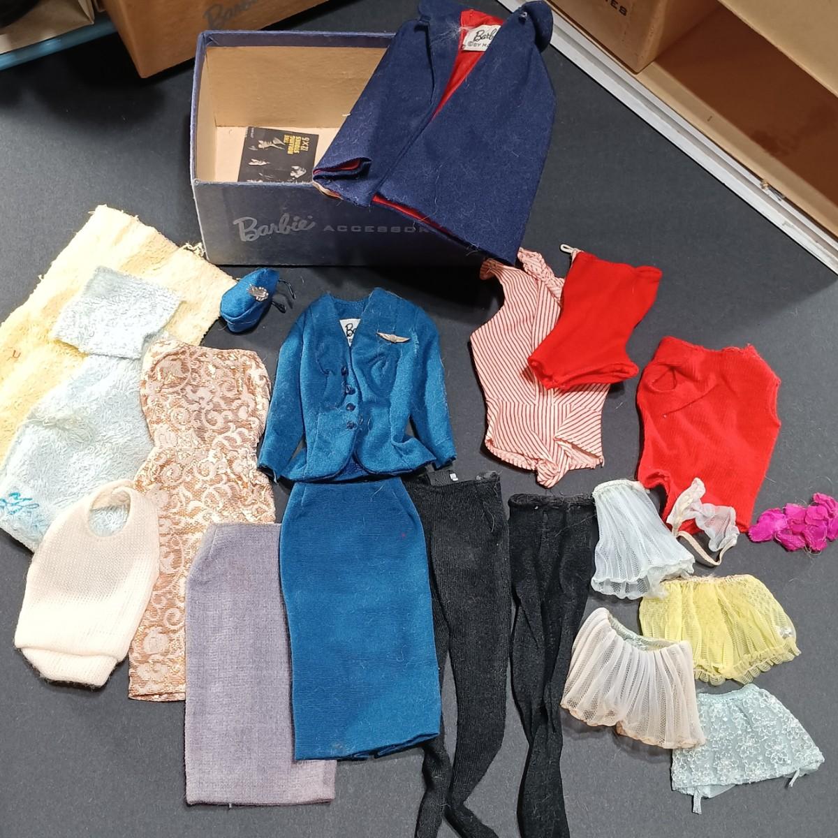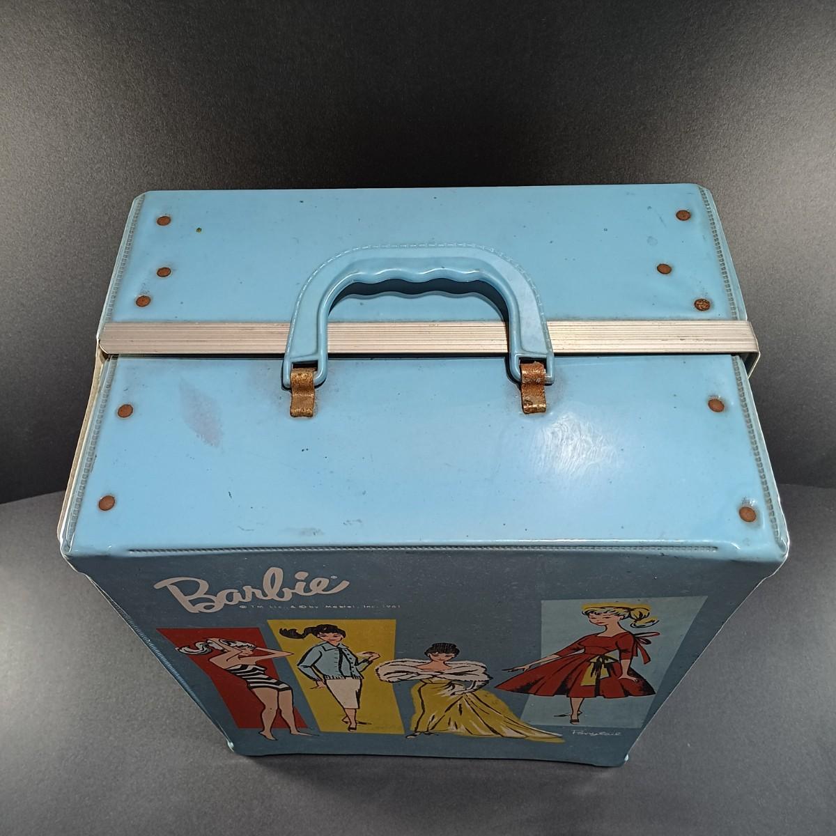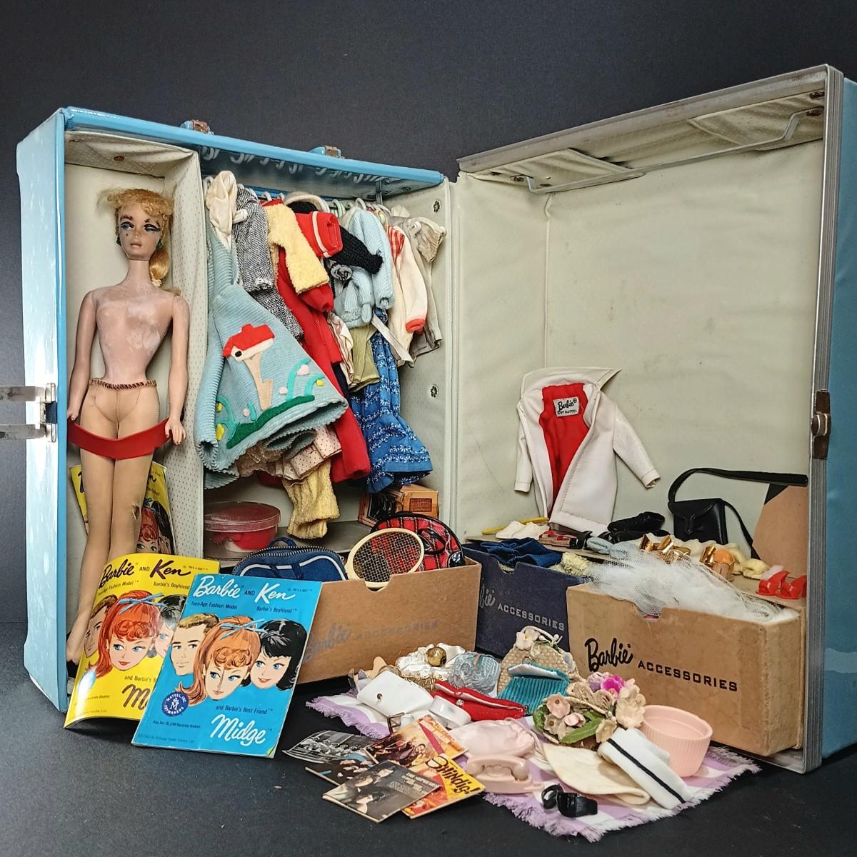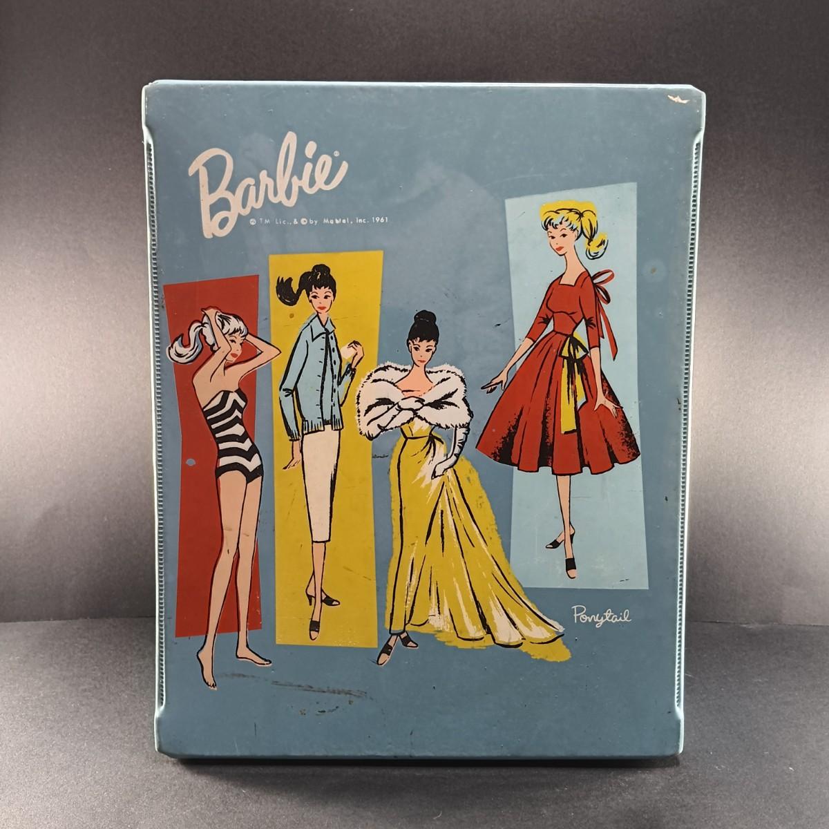 LOT 26: 1961 Barbie Doll Blue Ponytail Design Carrying Case with Vintage Clothes, Accessories and Doll