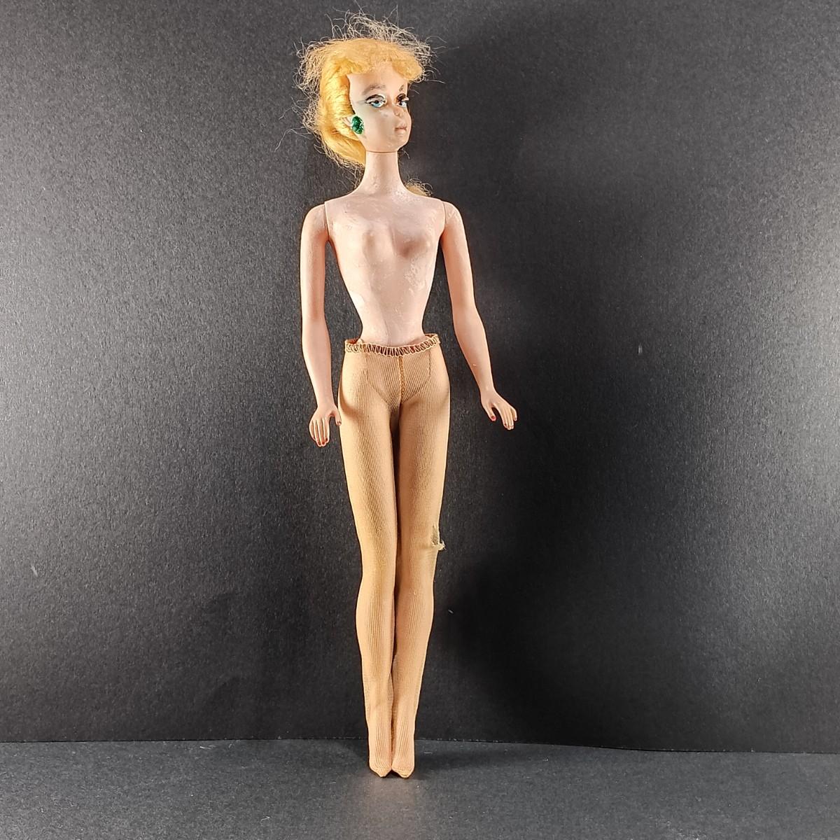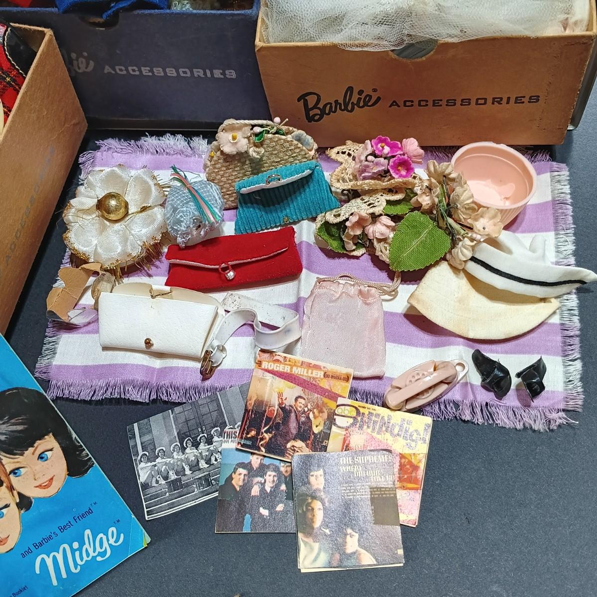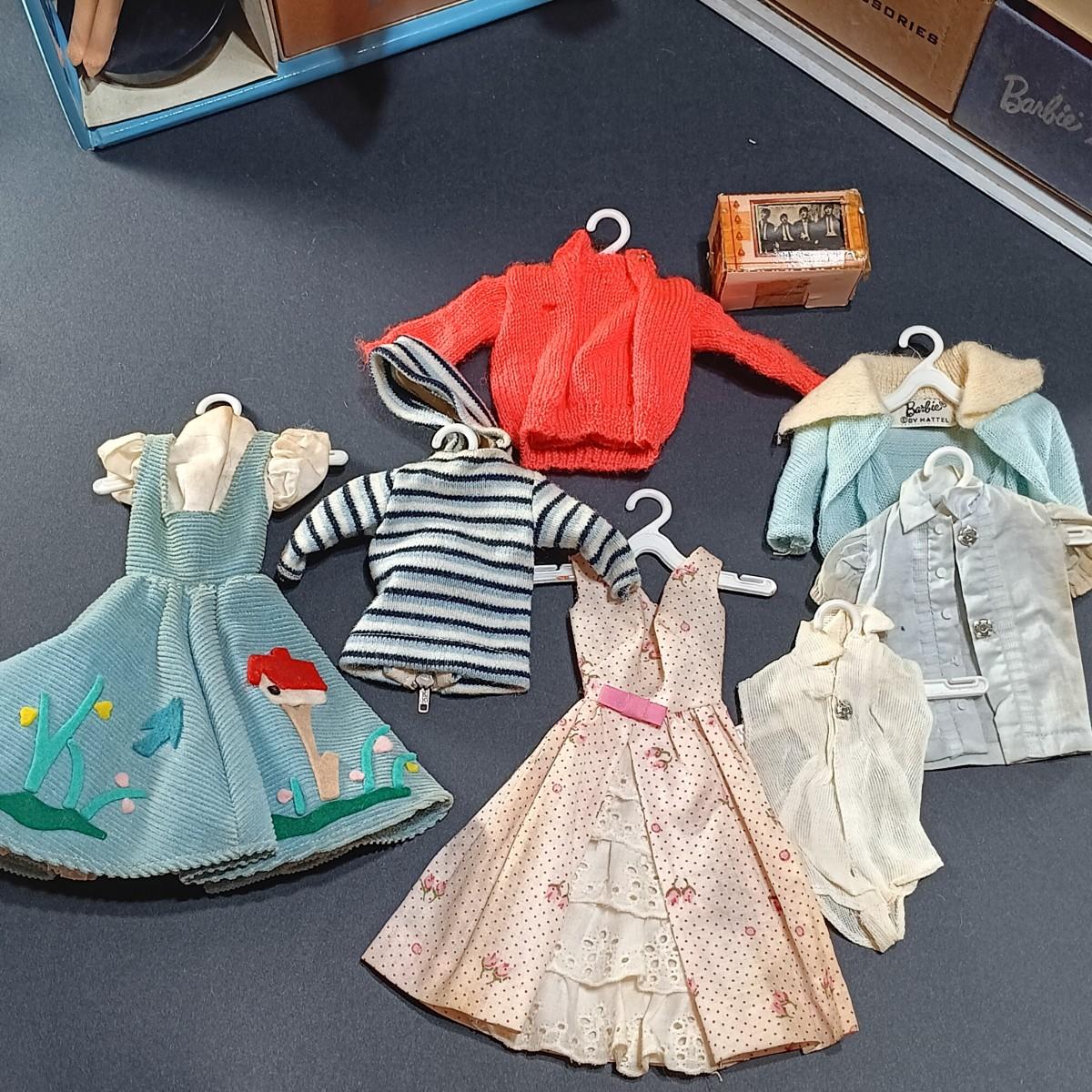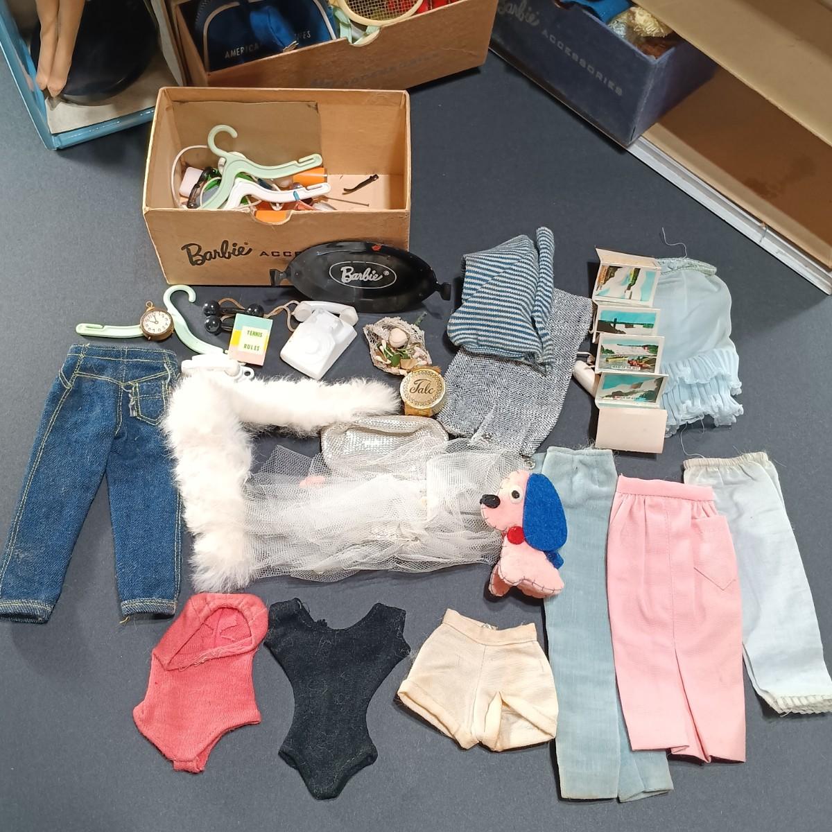 LOT 26: 1961 Barbie Doll Blue Ponytail Design Carrying Case with Vintage Clothes, Accessories and Doll