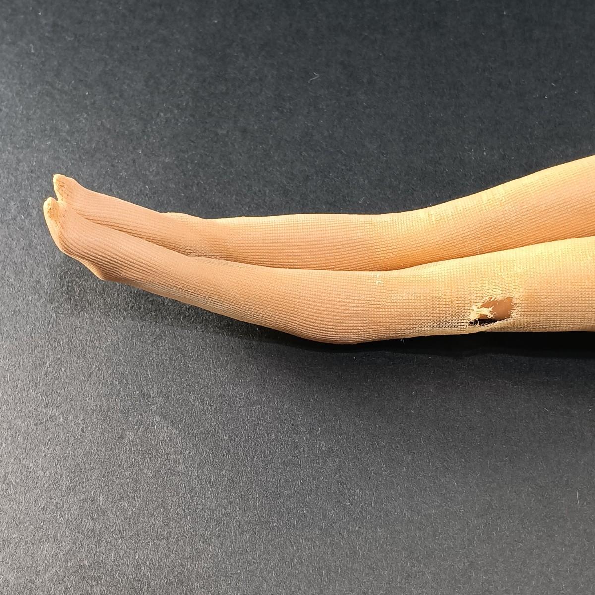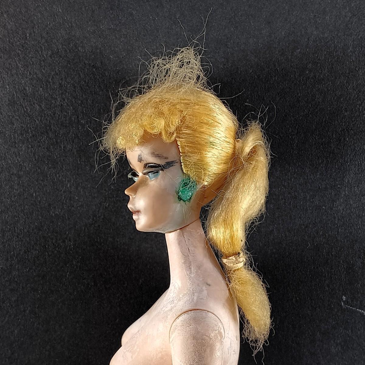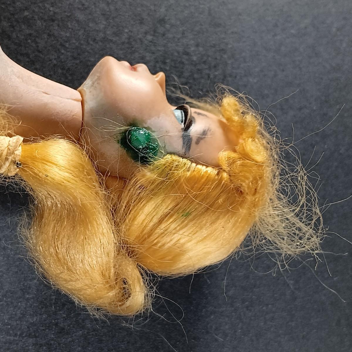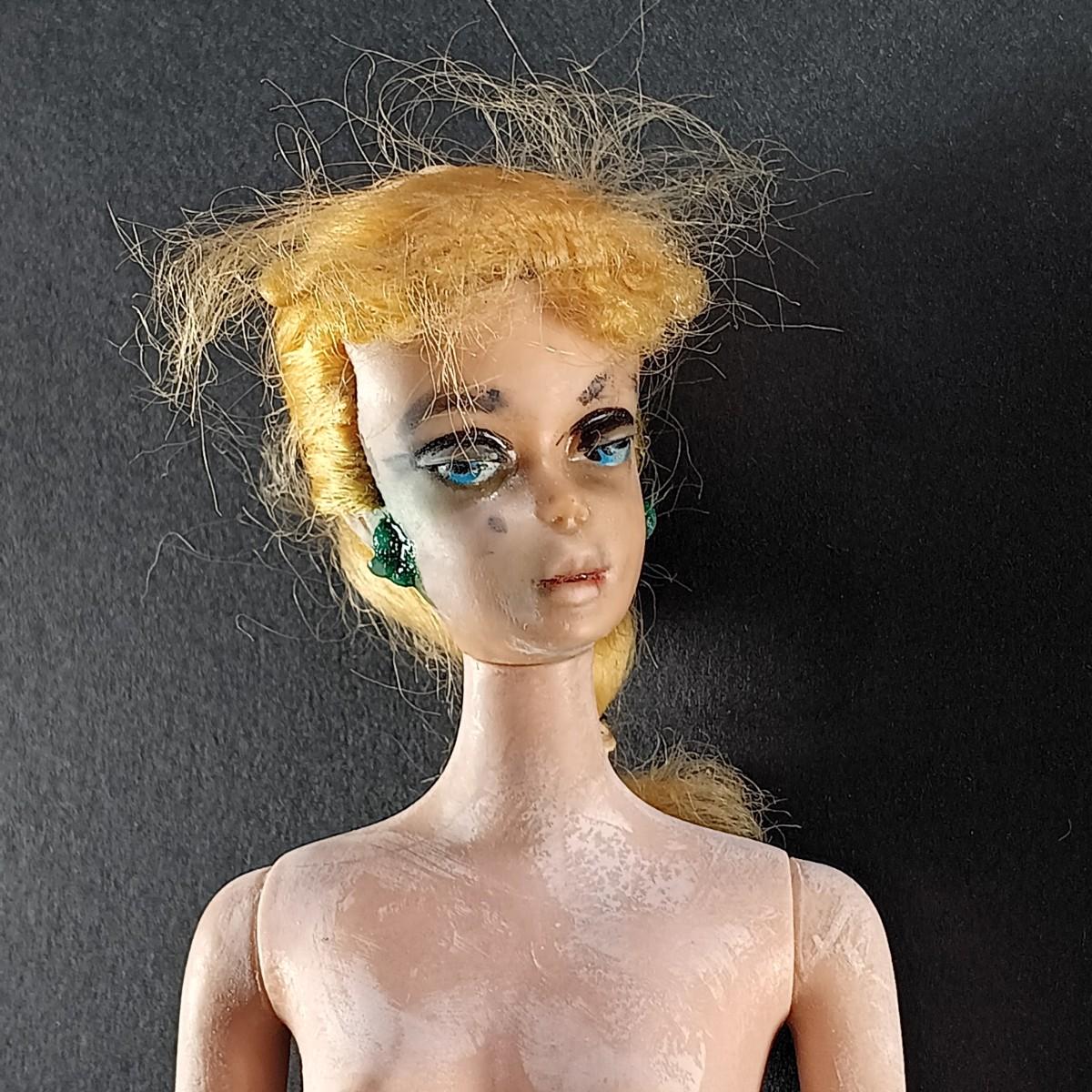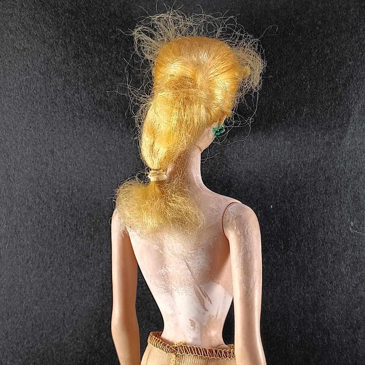 The barbie doll has an oily face. The white leather coat is stiff.