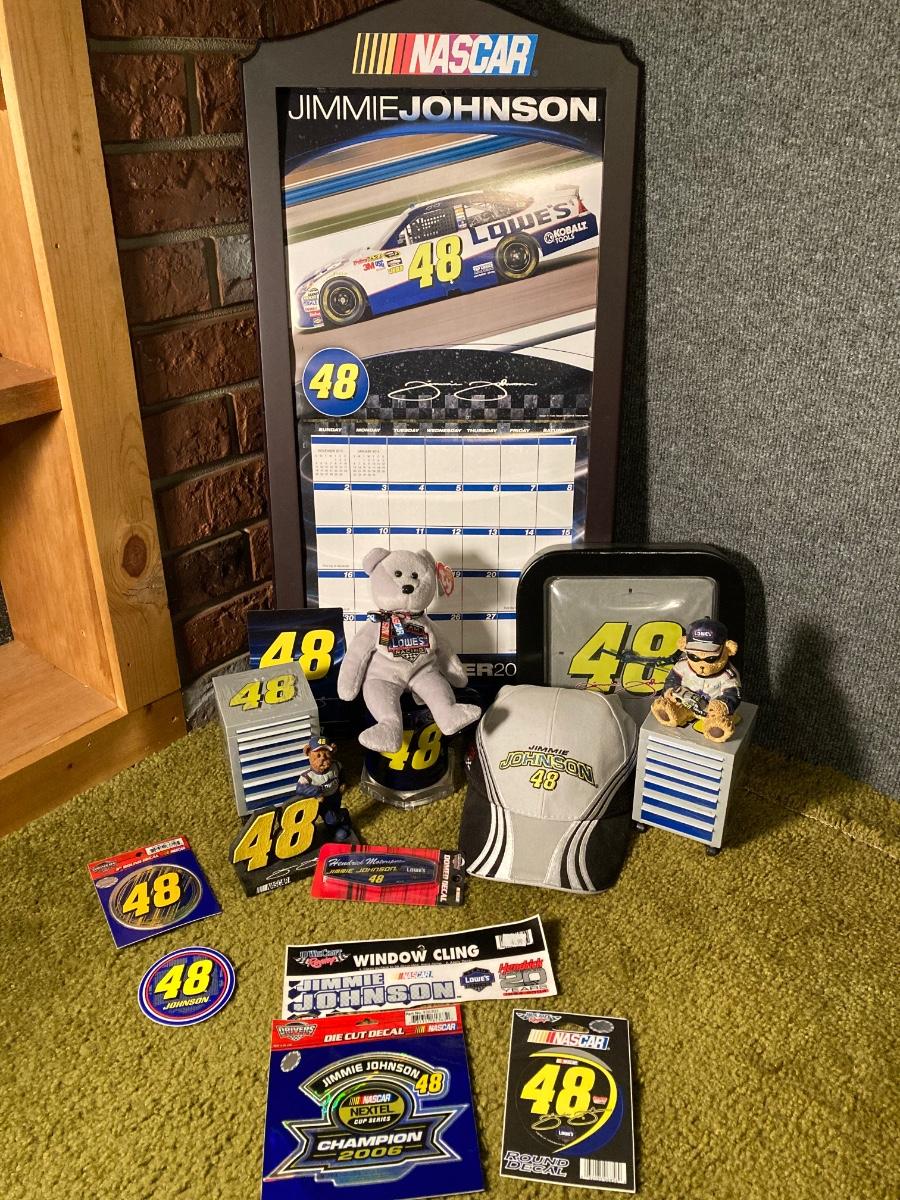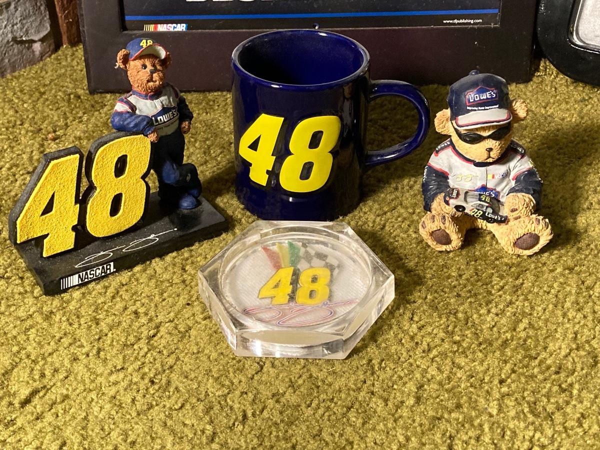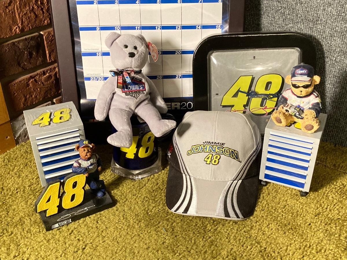 LOT 62: Jimmy Johnson #48 NASCAR Collection - Figurines, Beanie Baby, Decals, Mini War Wagons and More