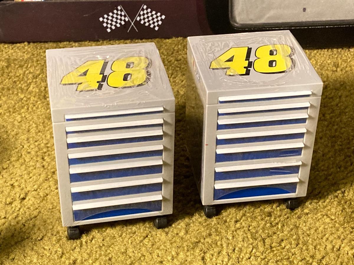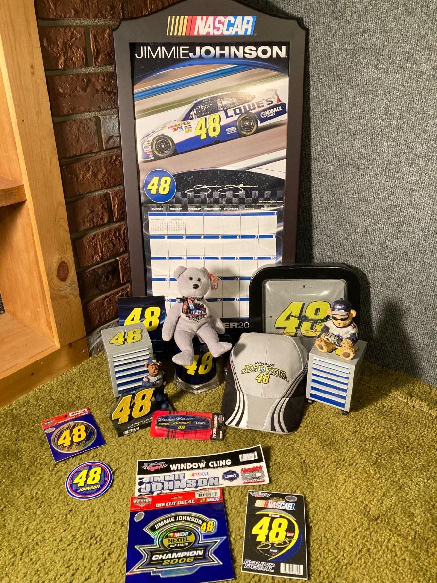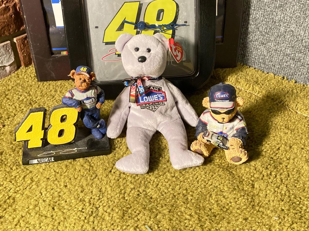 LOT 62: Jimmy Johnson #48 NASCAR Collection - Figurines, Beanie Baby, Decals, Mini War Wagons and More