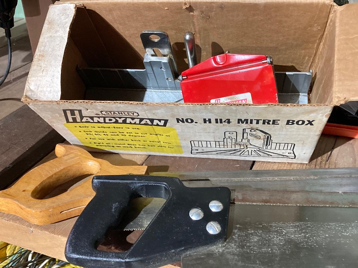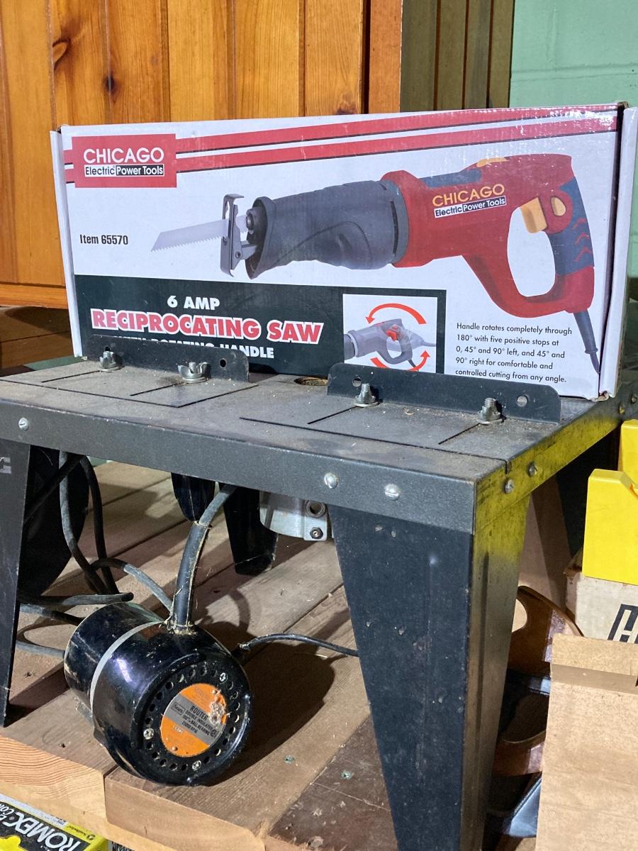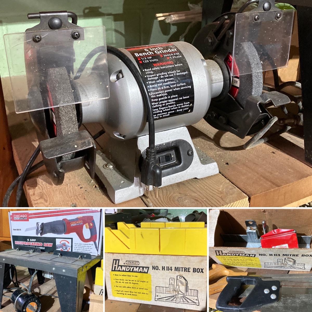 LOT 66: Bench Grinder, Saws (Reciprocating / Hand), Miter Boxes, Router