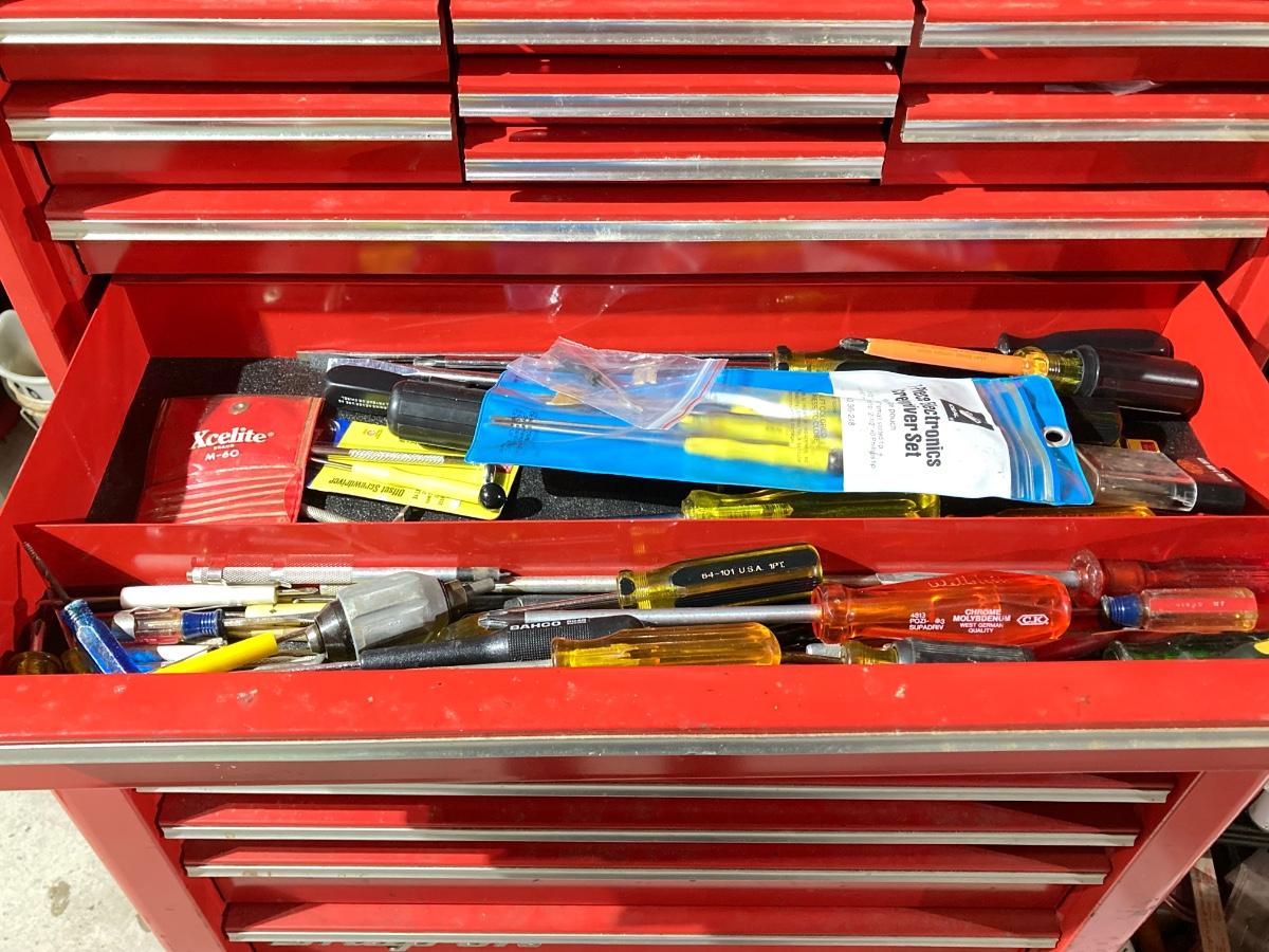 Tool boxes and tools are heavy and located in basement. Bring help to remove.